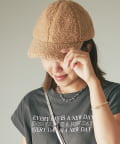 モコモコ感が可愛いキャップです。柔らかい色味が女性らしく、コーデのワンポイントになります◎