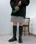 短すぎないミニ丈なので、ロングブーツと合わせて着用するのがおすすめです。