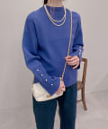 【ベーシックに着回せる】袖スリットパール釦ニット