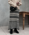 ・ミックスボーダーのジャカード柄が新鮮なニットスカート