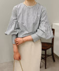 ストライプ袖ボリュームブラウス