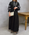 袖にデザインがあるアイテムと合わせると、トレンド感あるスタイリングになります。