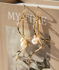 ・ウェーブモチーフにさりげないパールがアクセントになるピアス