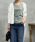 シアートップスやカーディガンのインナーとして重宝するアイテムです。