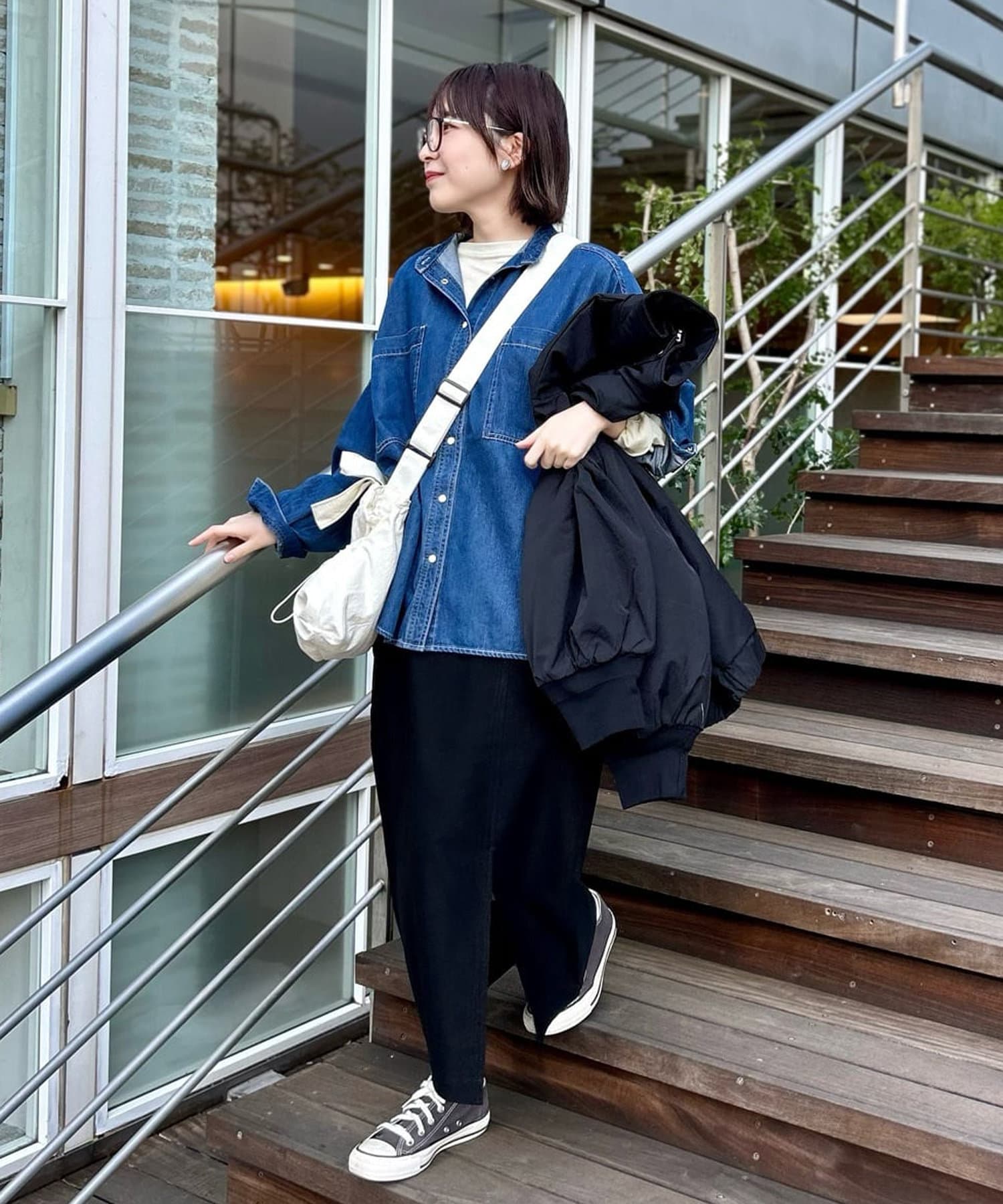 お腹周りは少し気になるので長めのトップスを合わせるのがおすすめです!