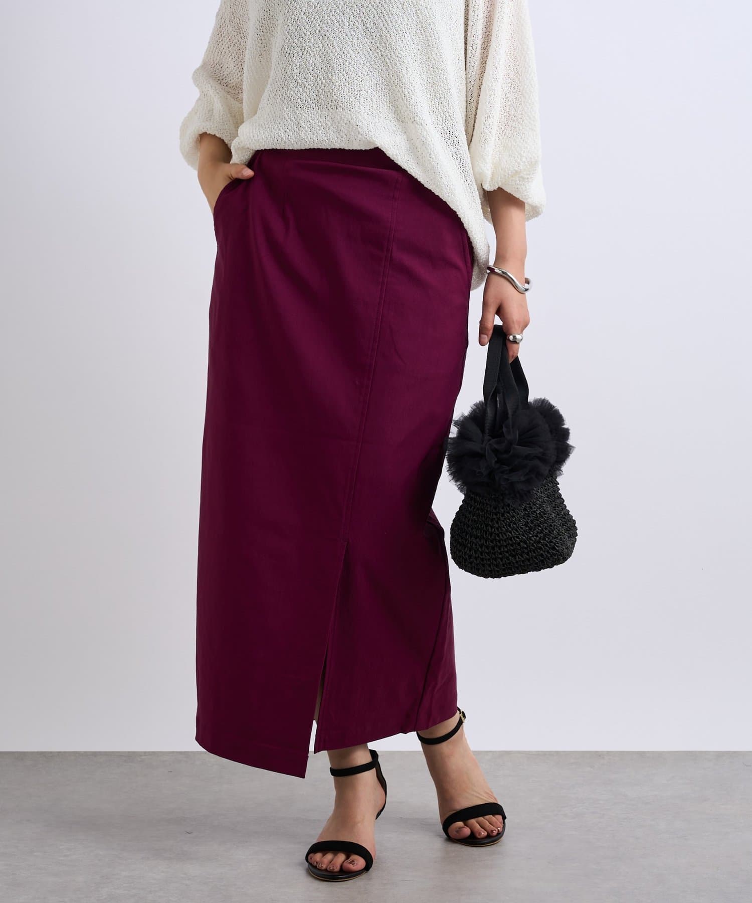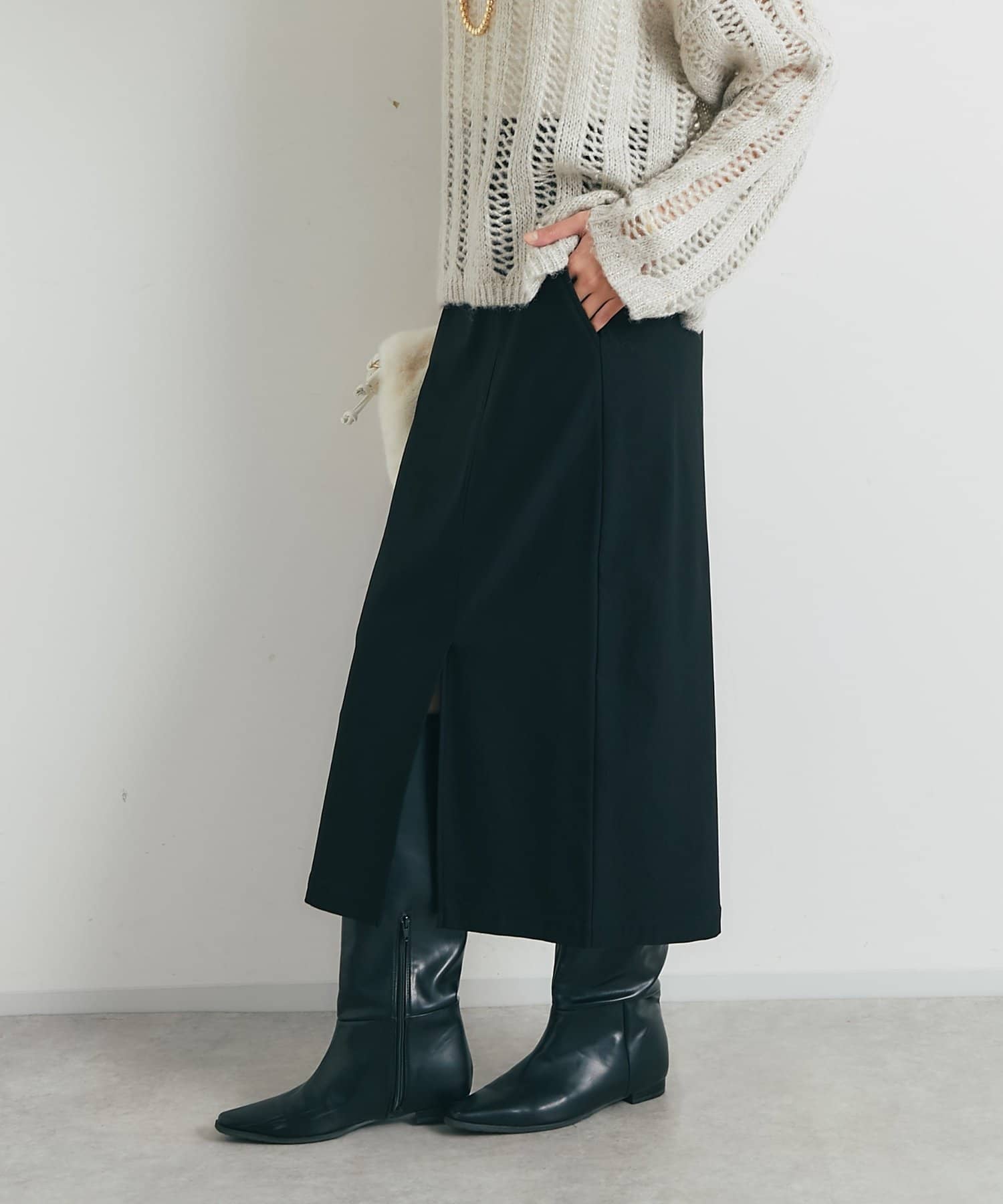 ・程よい伸縮性とスリット入りで、身体にフィットしながらも窮屈感なく履ける&着痩せ効果アリ
