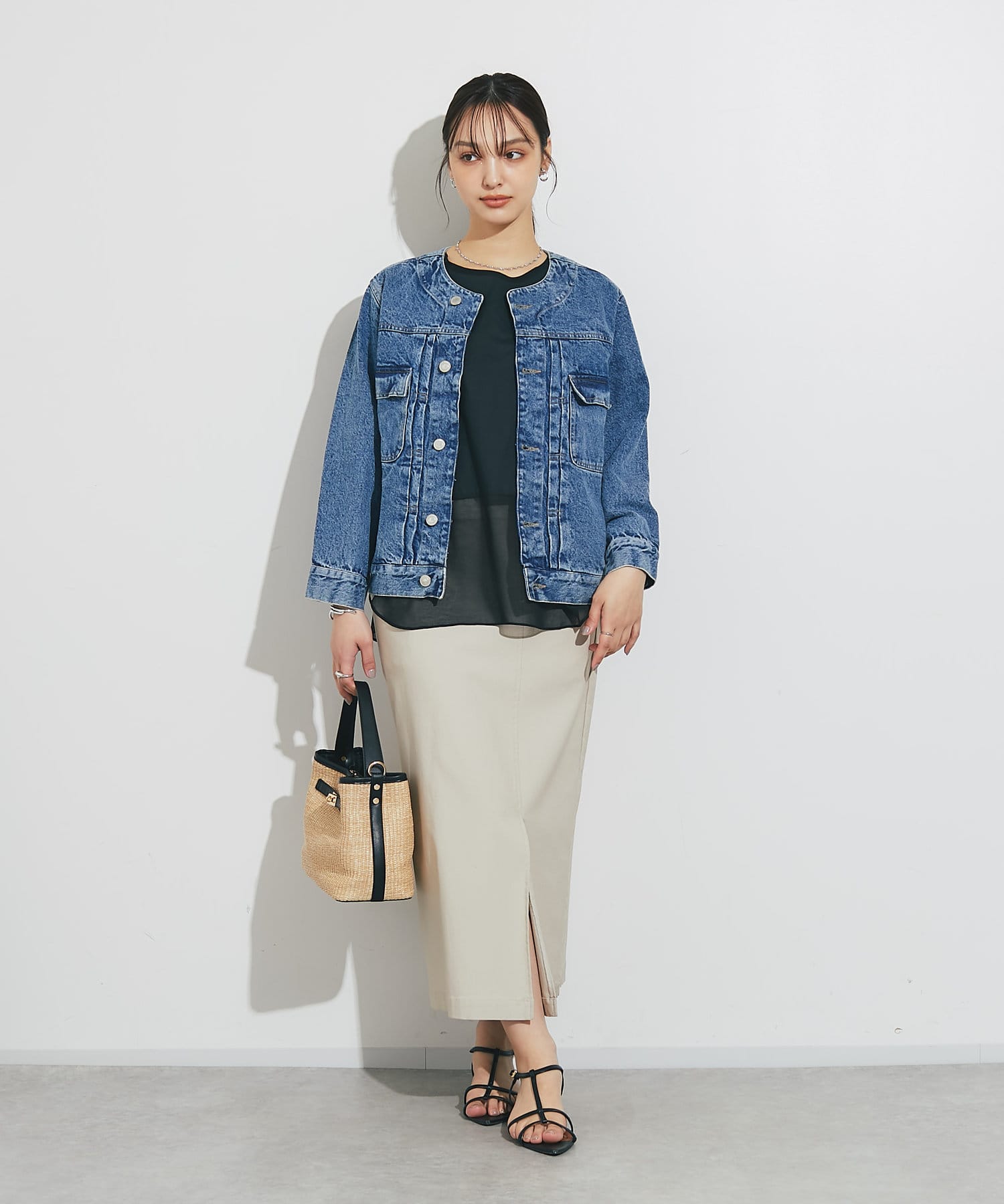 《一枚でこなれ感・着回し抜群》デニムノーカラージャケット