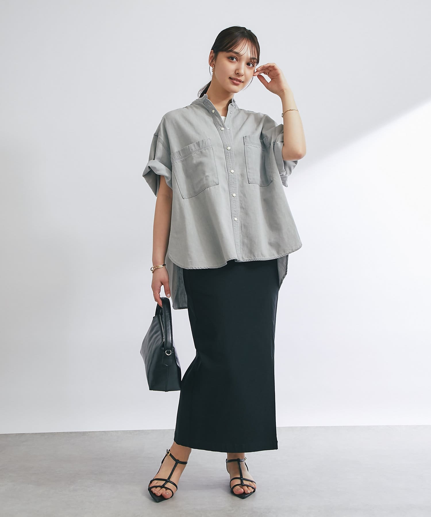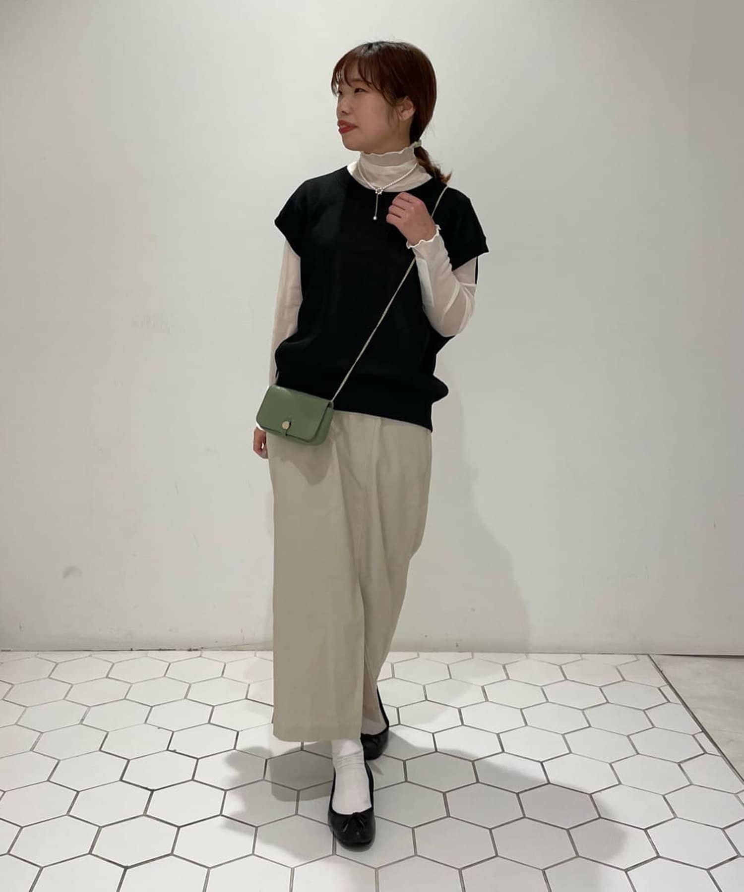 トレンドのショート丈トップスにもバランス良く合わせられます。