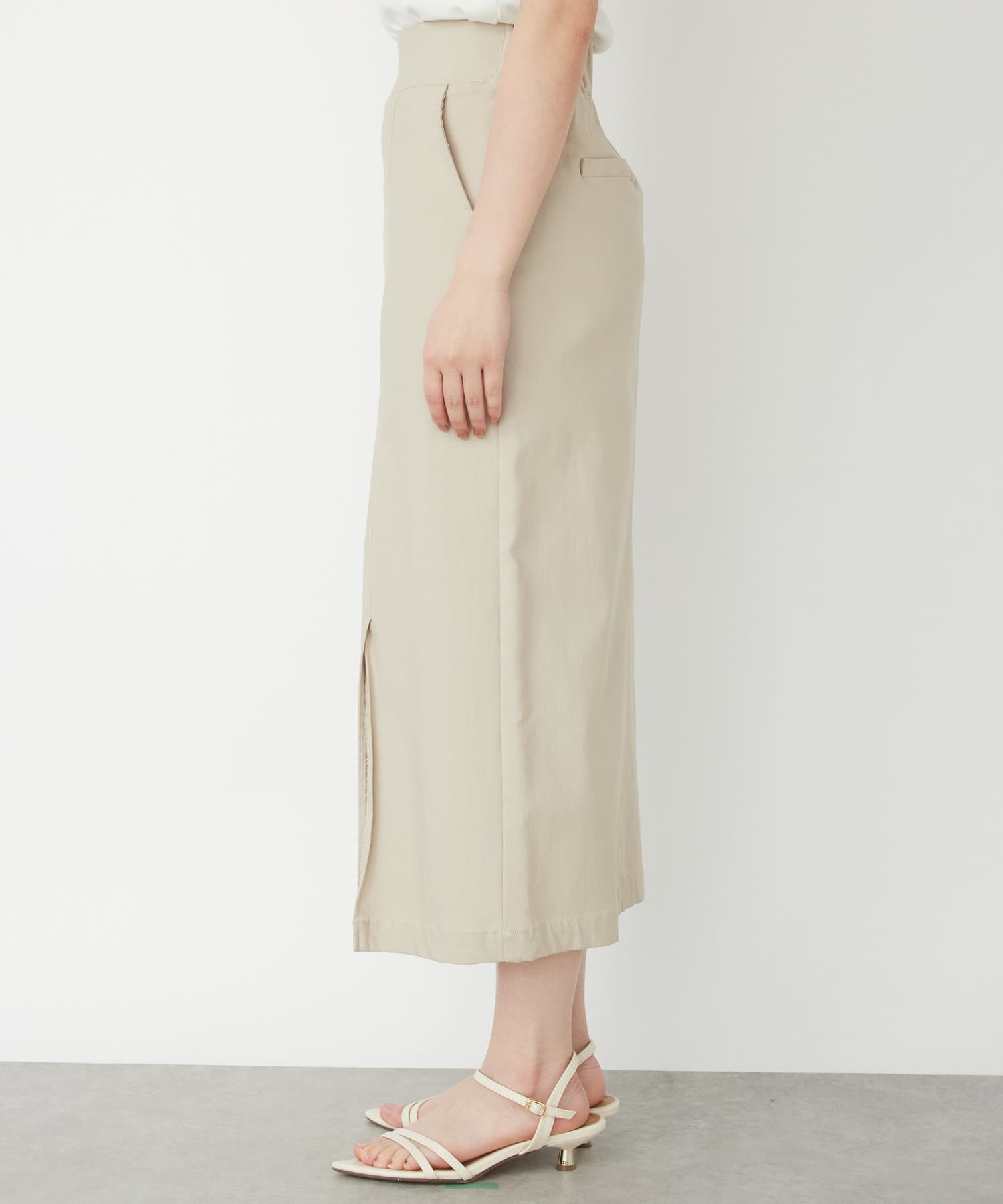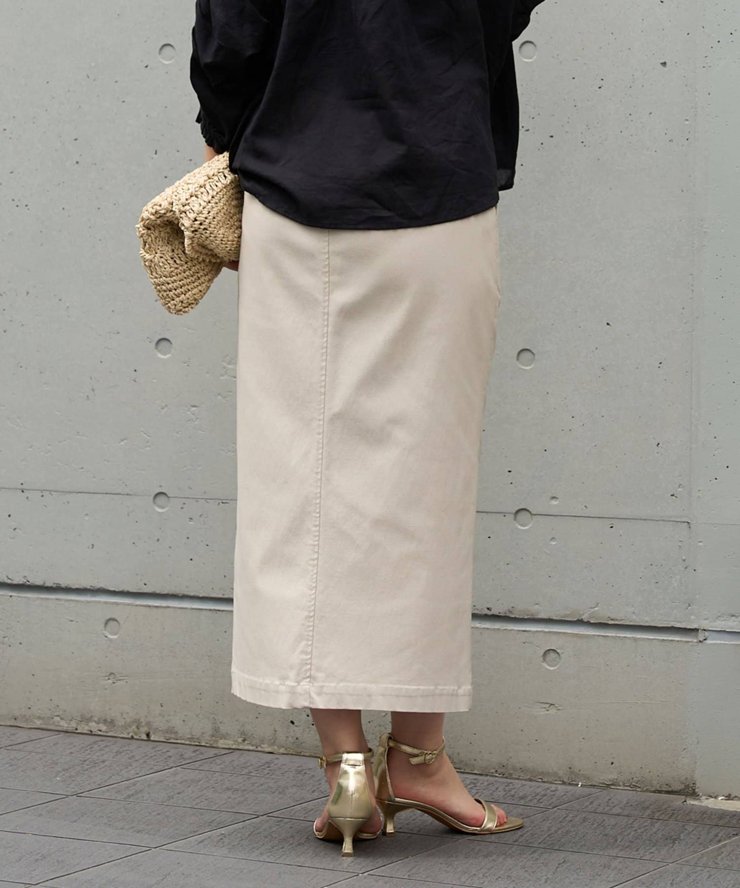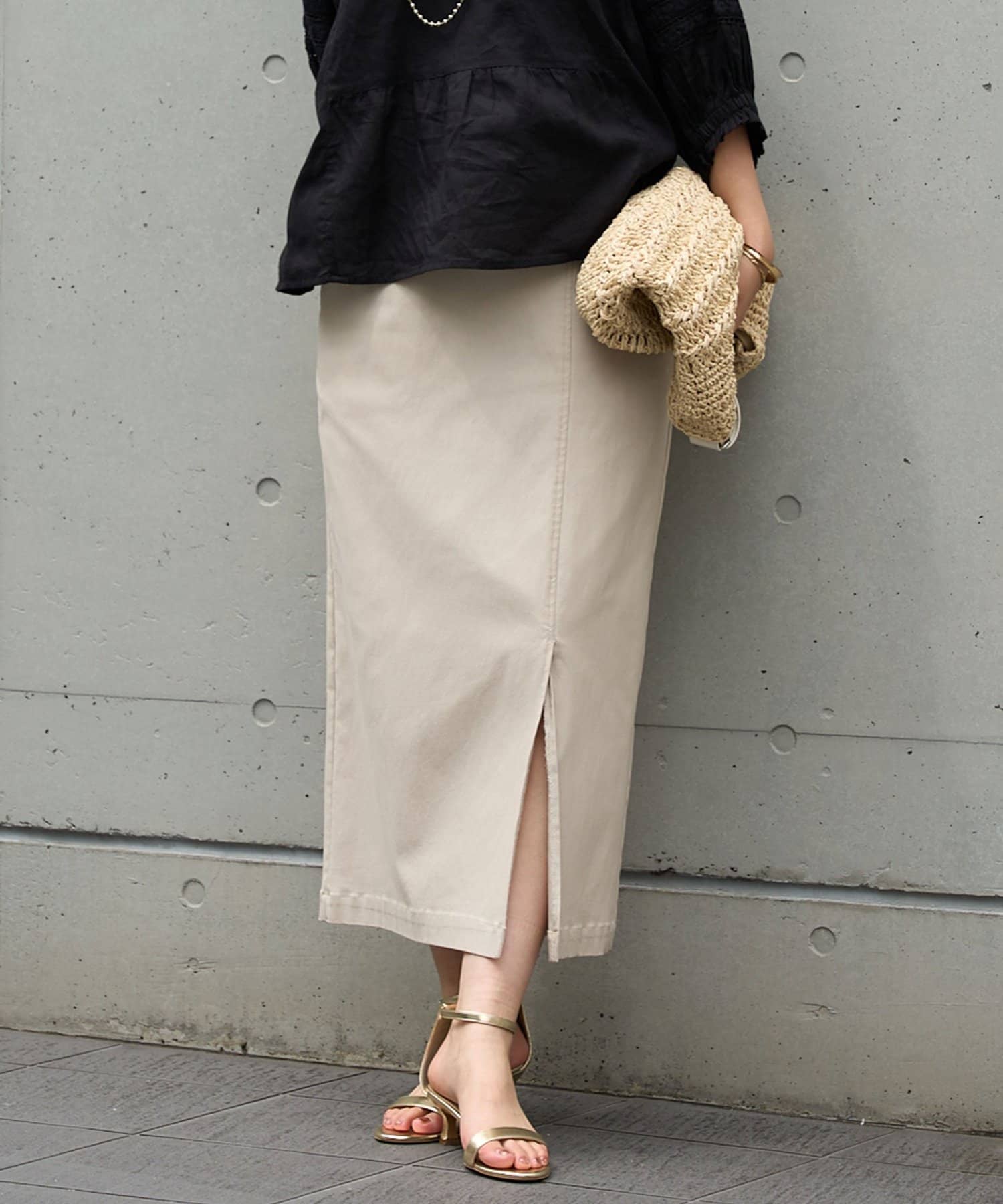 ・程よい伸縮性とスリット入りで、身体にフィットしながらも窮屈感なく履ける&着痩せ効果アリ