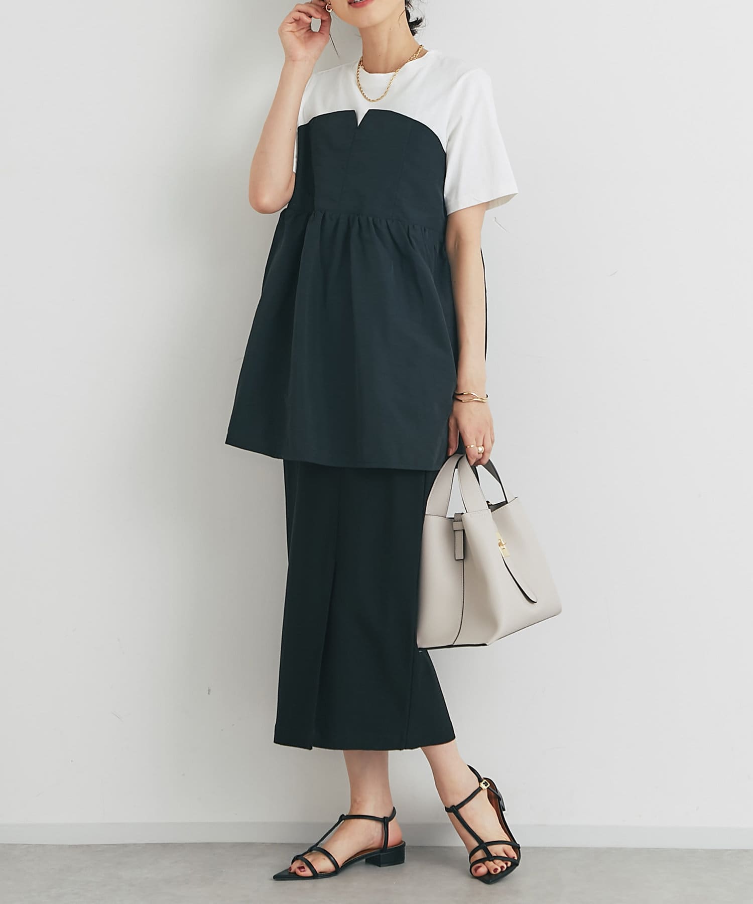 ・ハイウエスト仕様でウエストにインするとメリハリのある着こなしが完成する