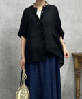 薄手で着やすいブラウスです。二の腕、お腹、お尻もカバーできるブラウスなのでぽっちゃりさんの味方です。