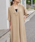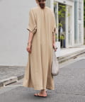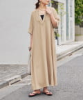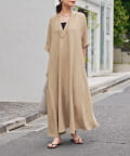 《二の腕カバー◎・2サイズ》接触冷感スキッパーロングワンピース