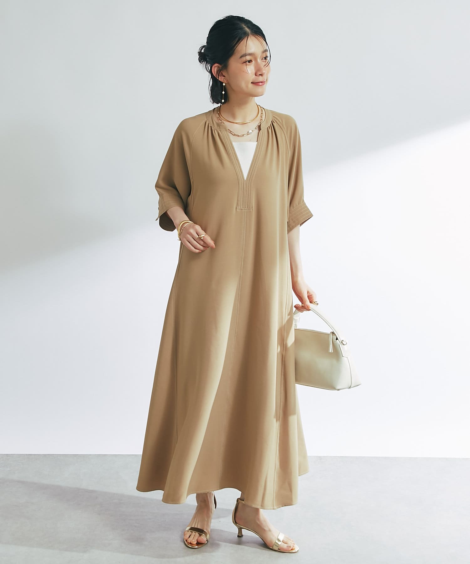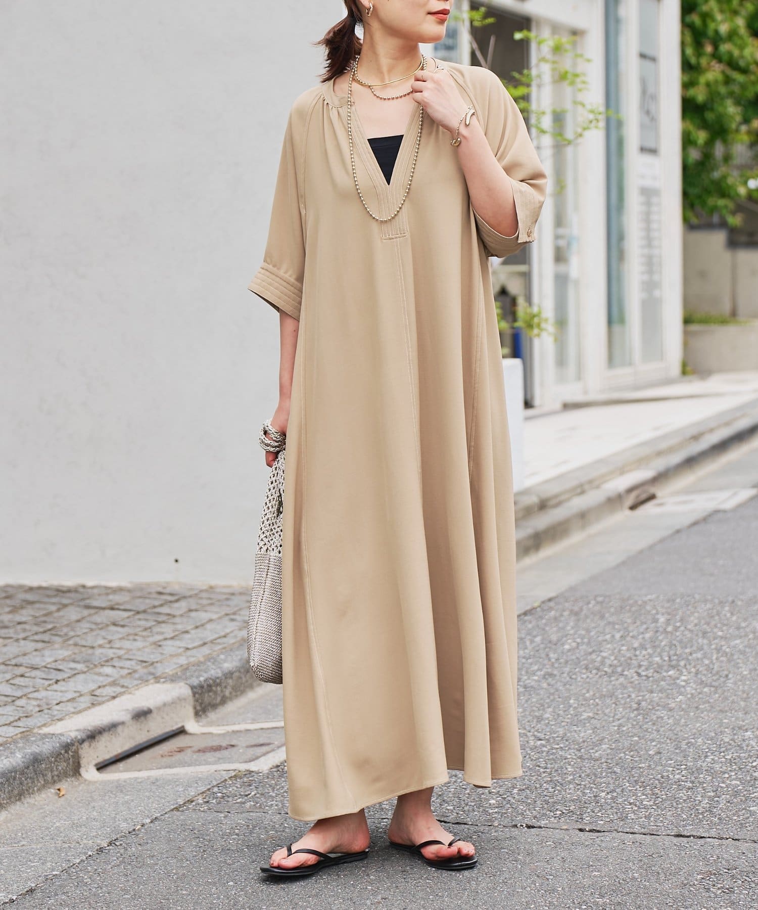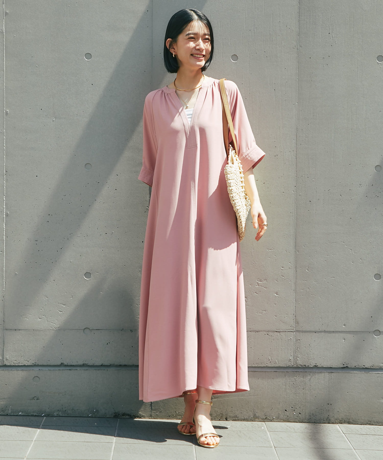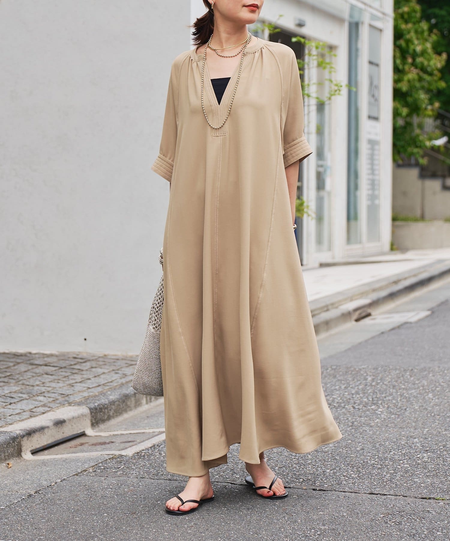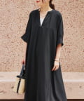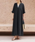 ・接触冷感機能付きでサラリとした生地感ロング丈のワンピース