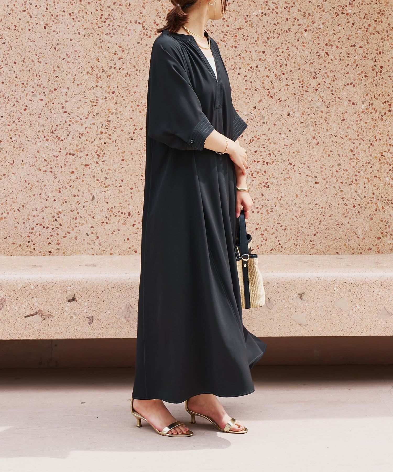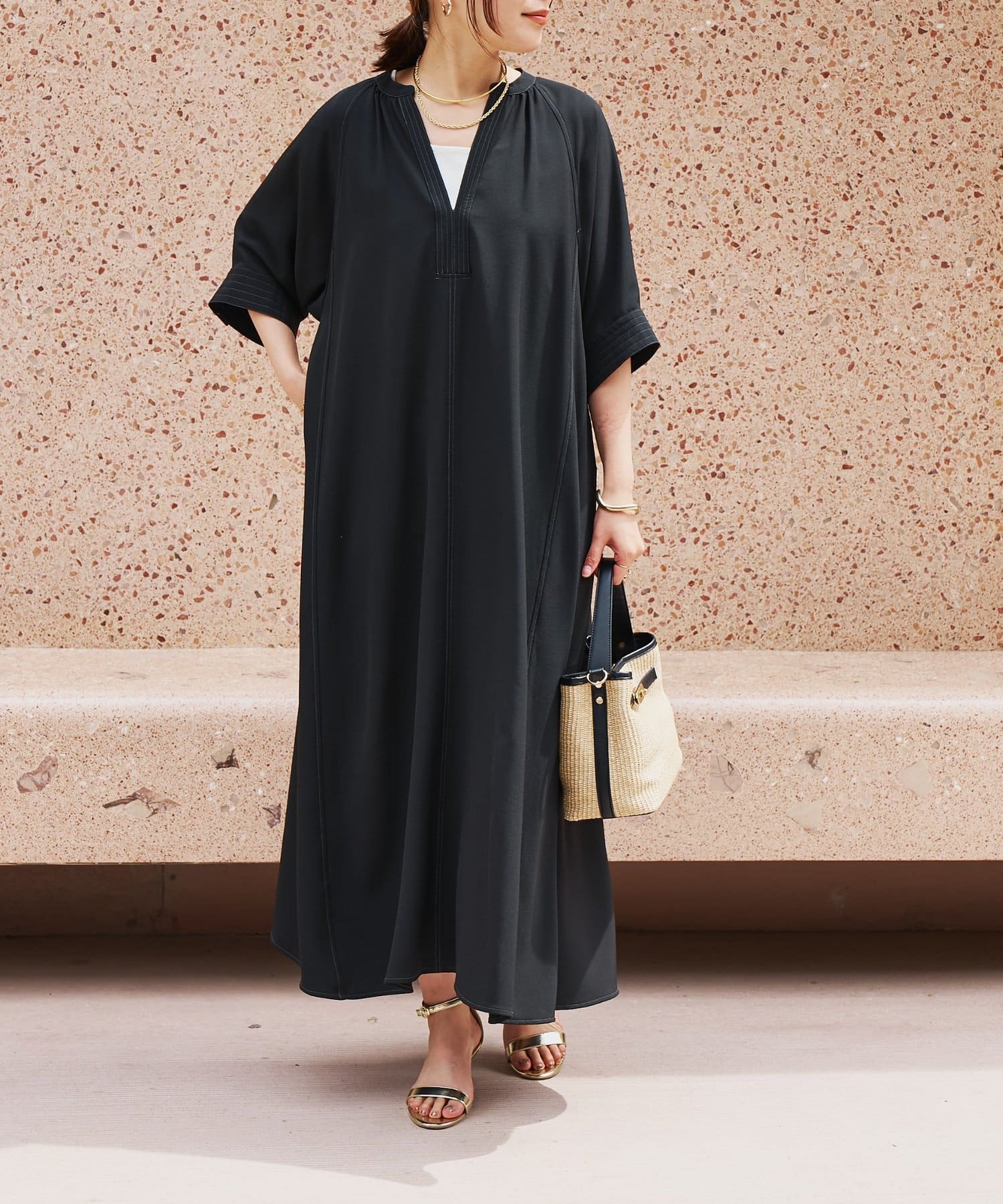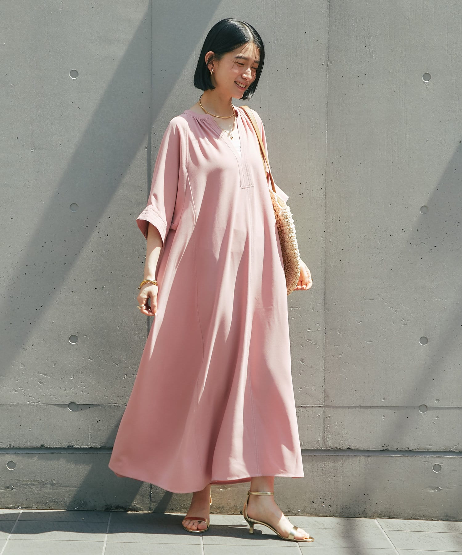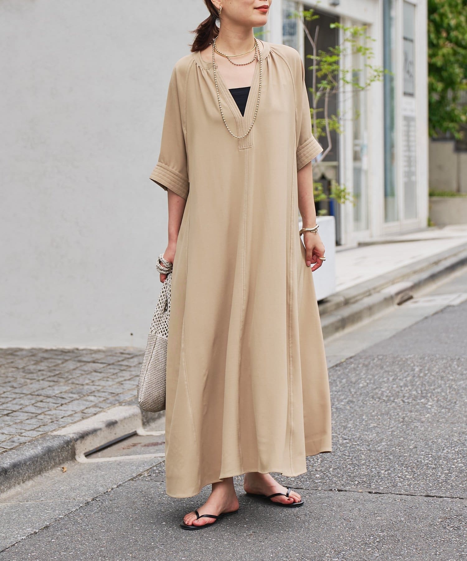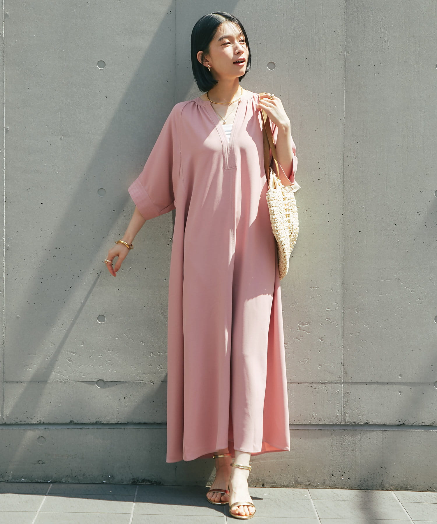 ・接触冷感機能付きでサラリとした生地感ロング丈のワンピース
