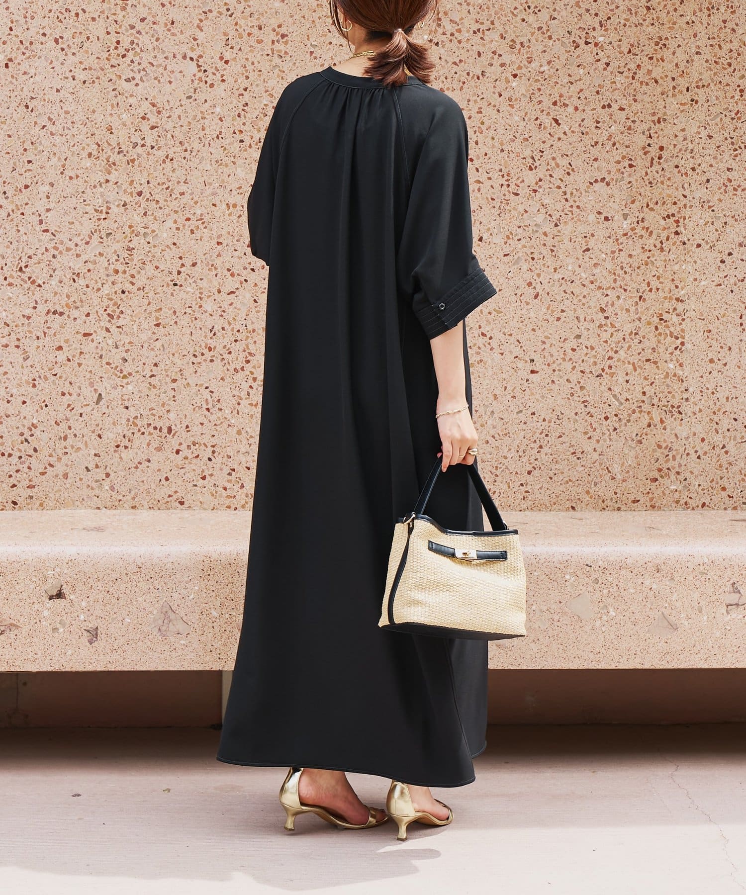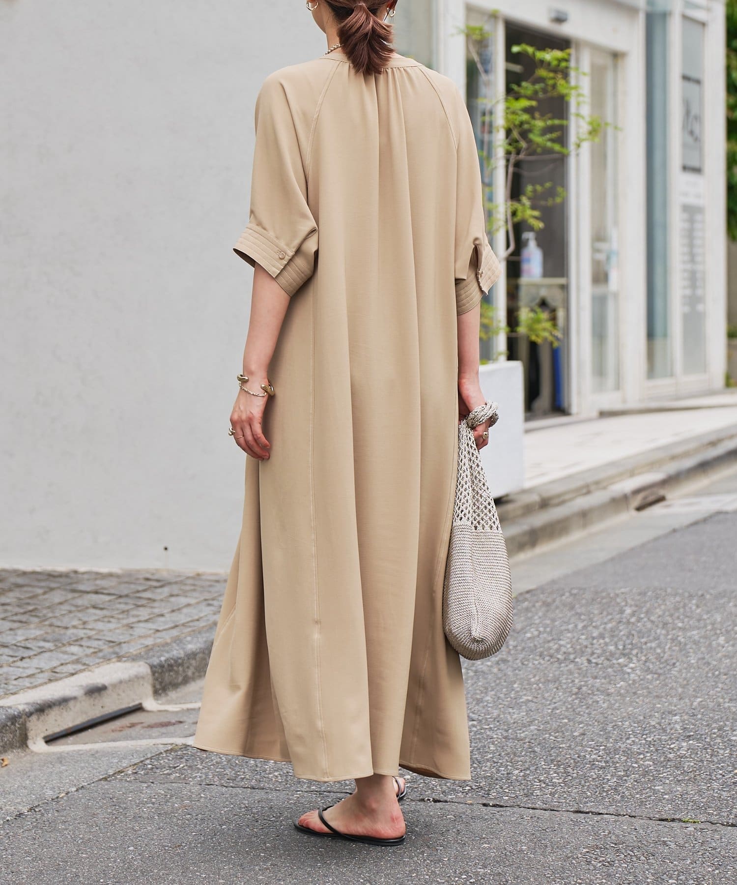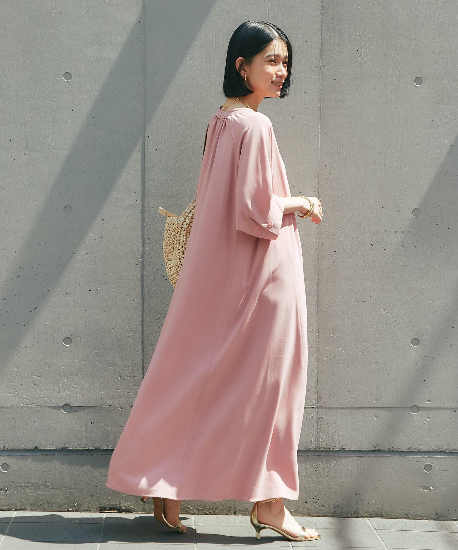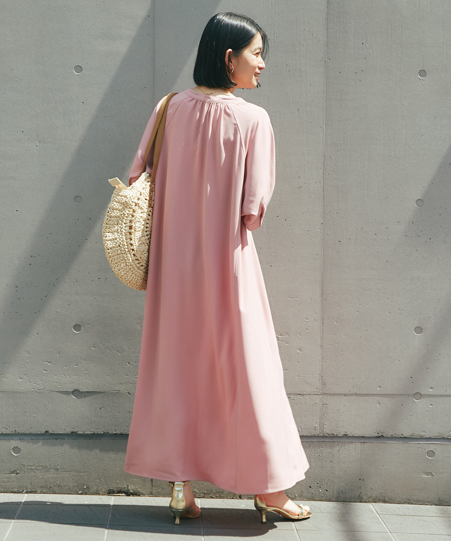 ・接触冷感機能付きでサラリとした生地感ロング丈のワンピース