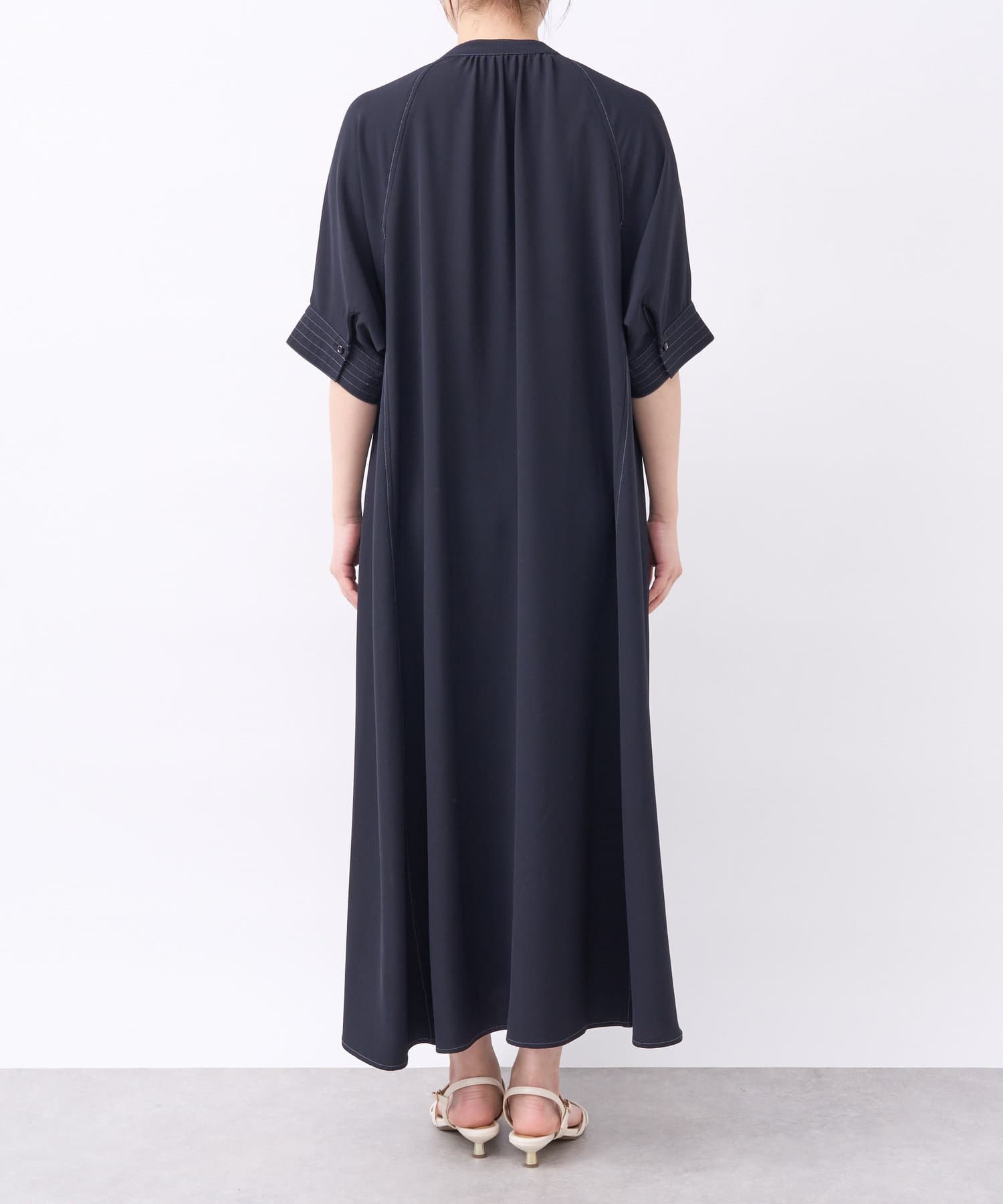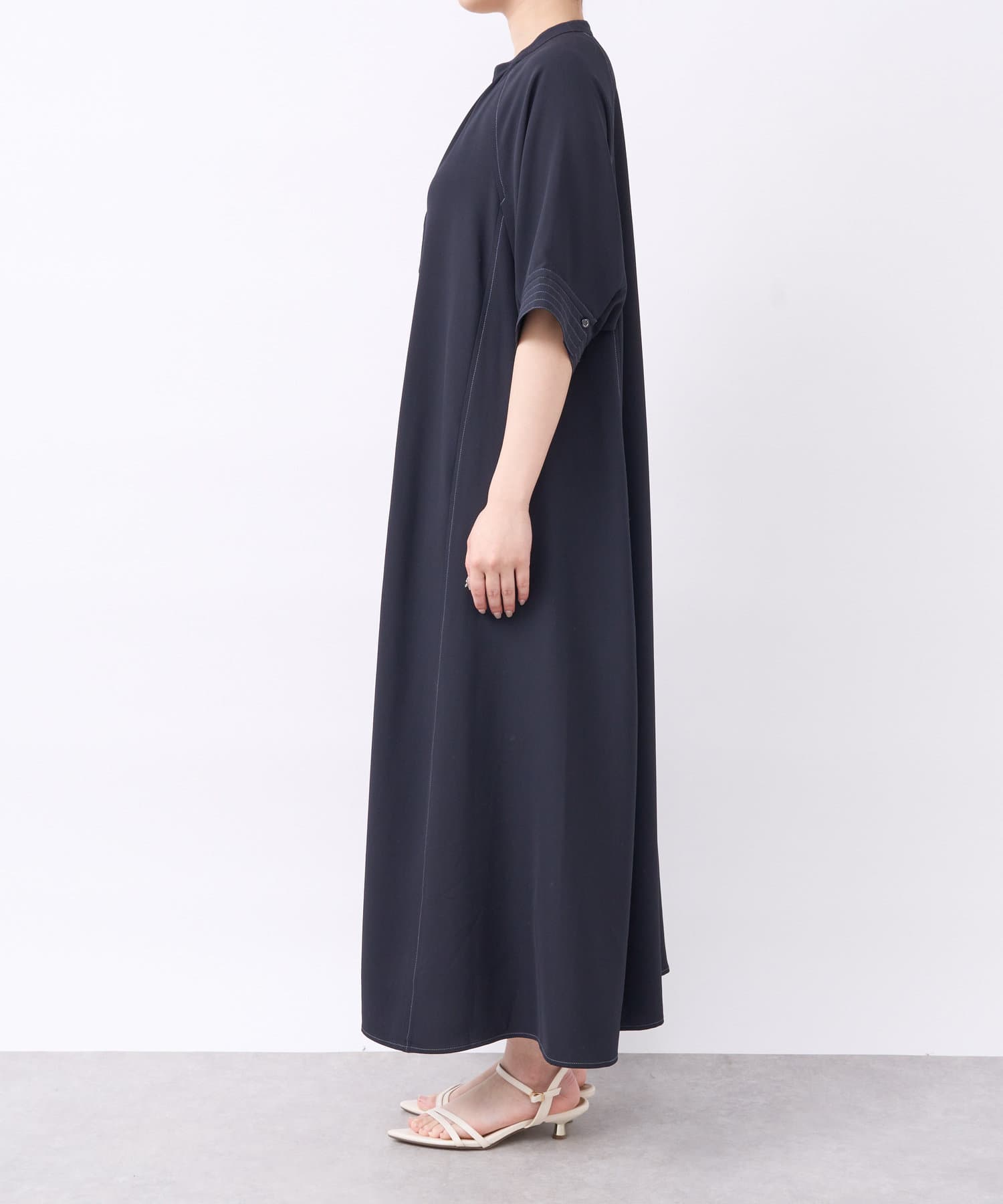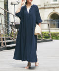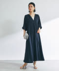 《二の腕カバー◎・2サイズ》接触冷感スキッパーロングワンピース