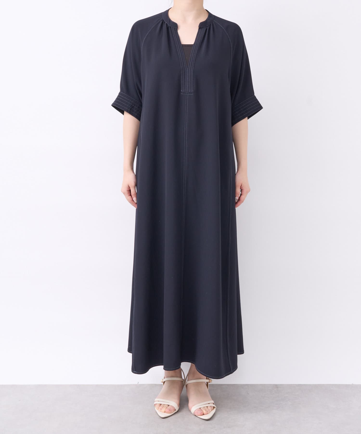 ・接触冷感機能付きでサラリとした生地感ロング丈のワンピース