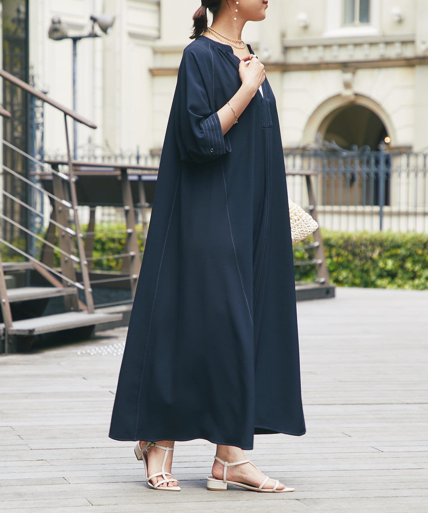 サラッとした生地感が気持ちよく目立ちすぎないステッチが大人の可愛いを演出◎
