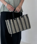 ・チェック柄のような印象になるように、色を混ぜ合わせたかごバッグ
