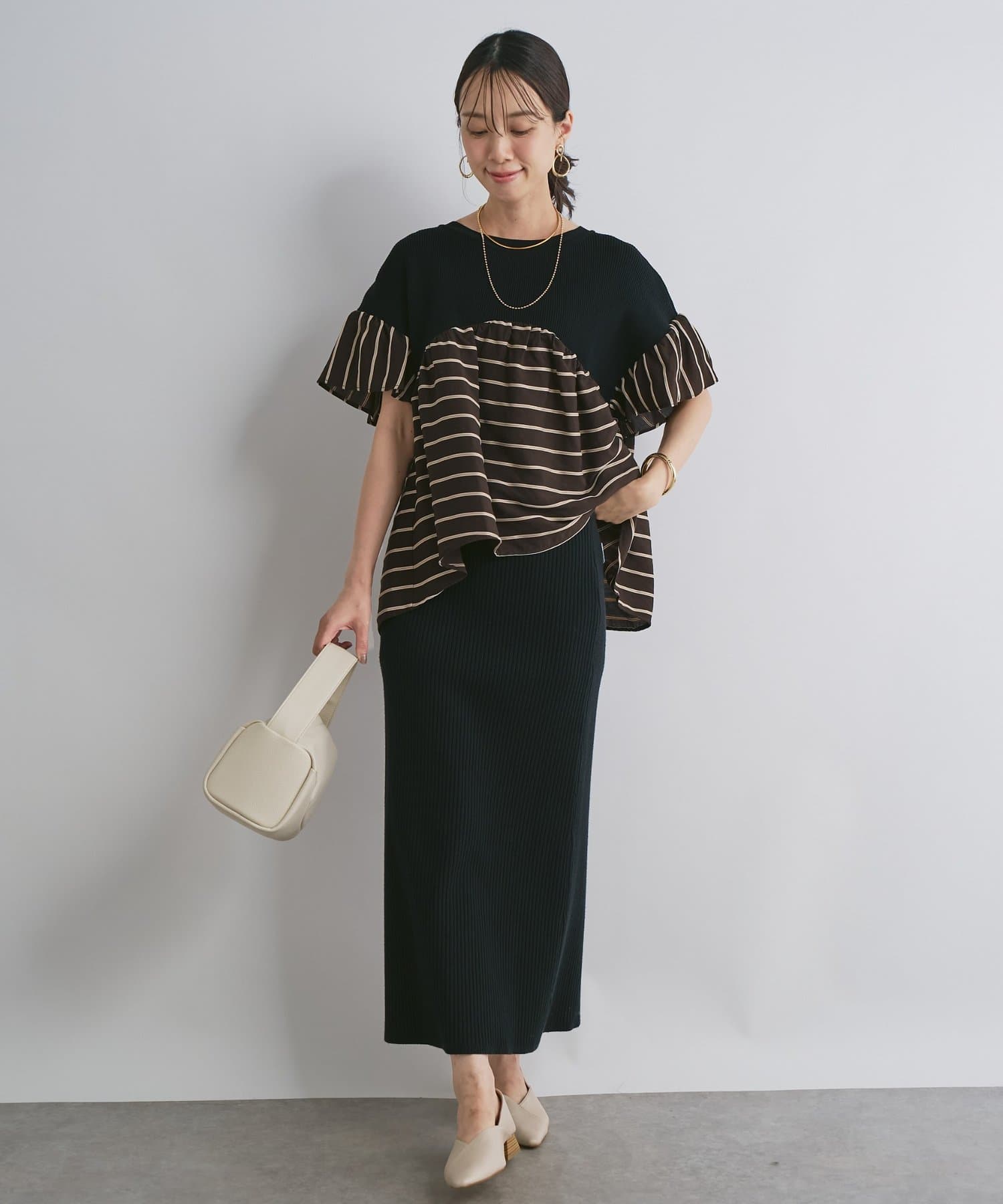 ・着回し力抜群のカットソーのリブタイトスカート