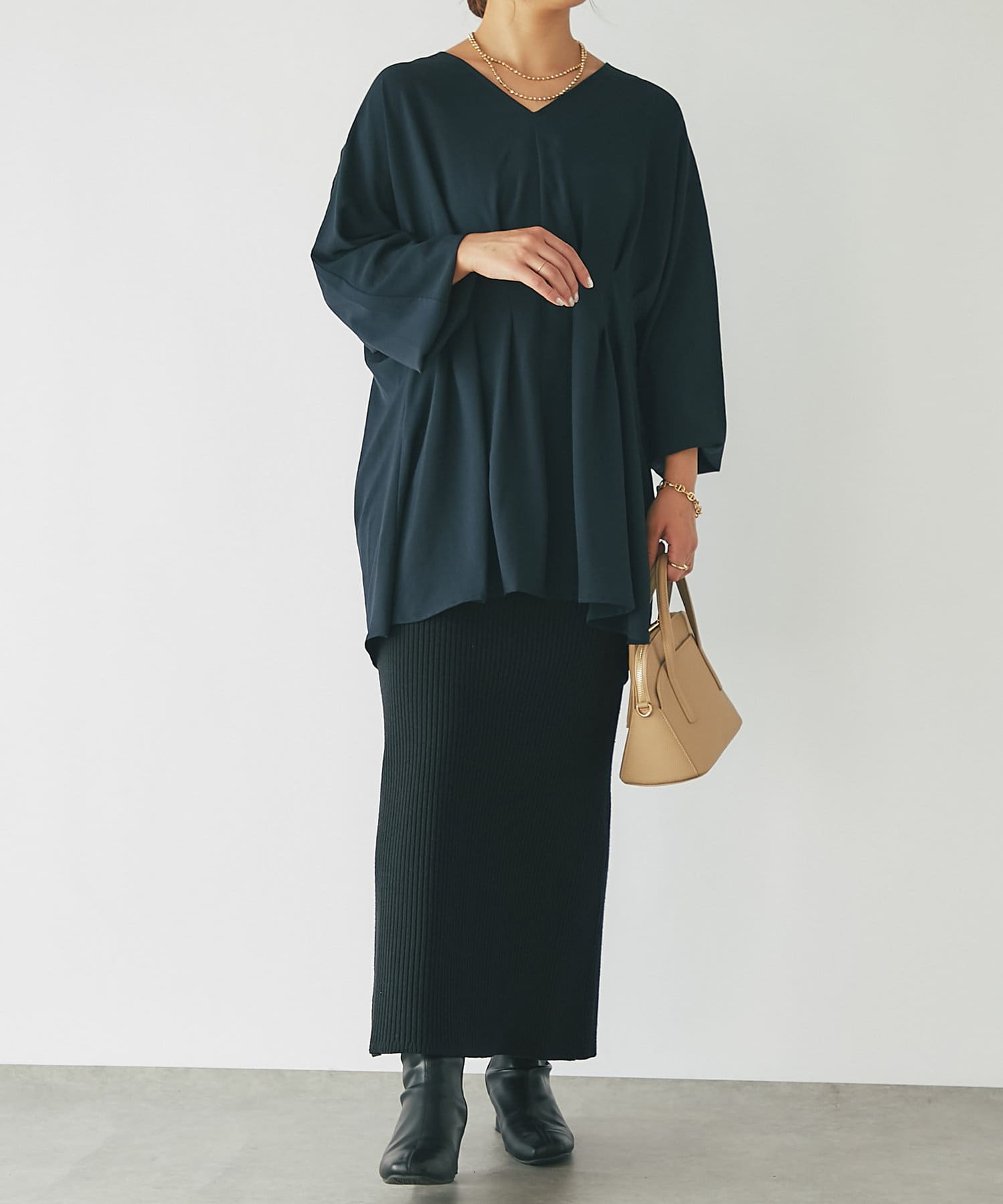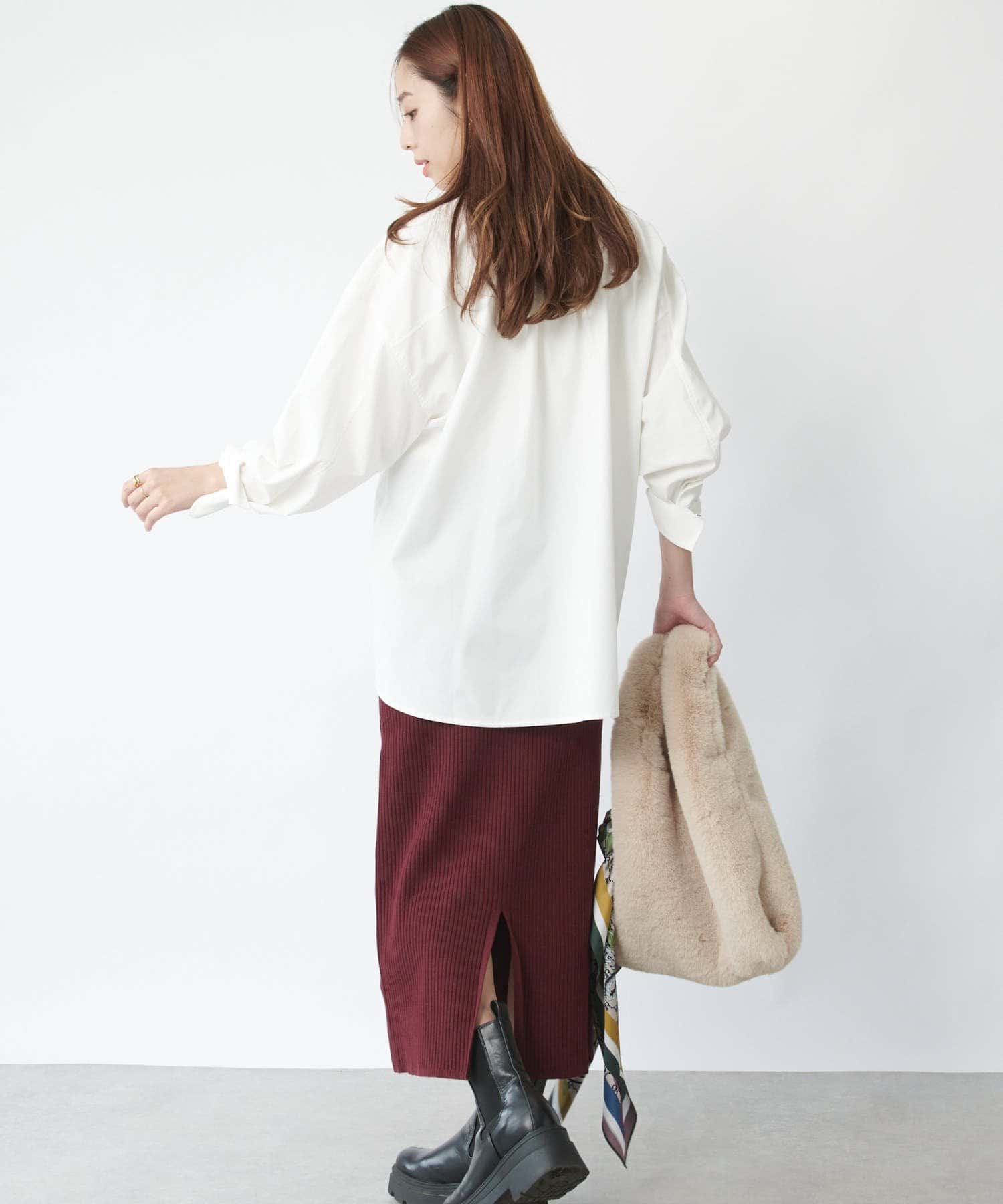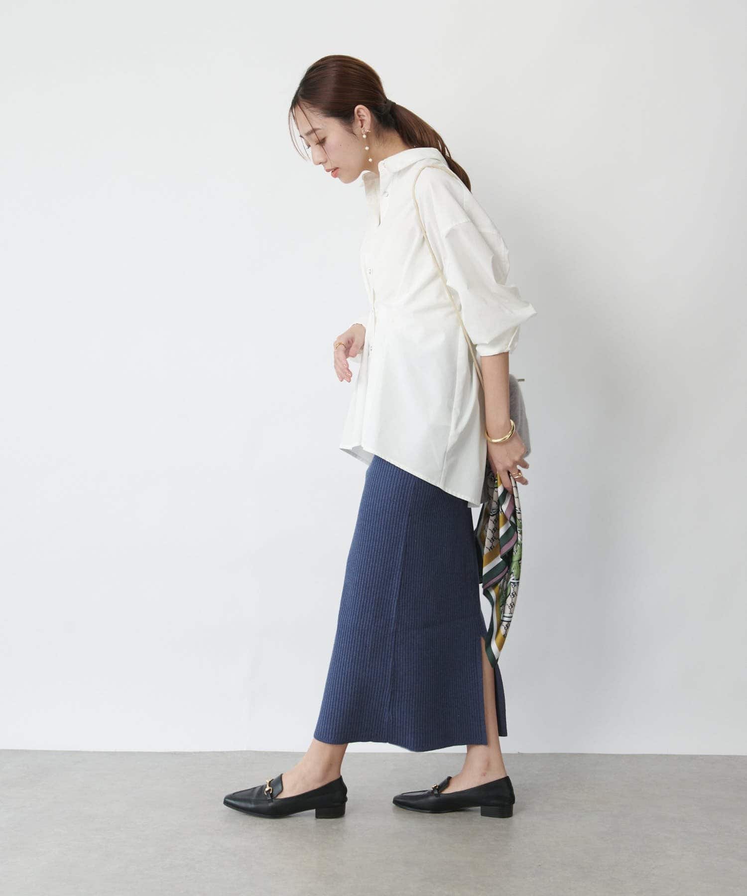 ニット素材なので程よく肉厚な生地感で、ラインが出にくくメリハリがつき体系カバーが叶います。