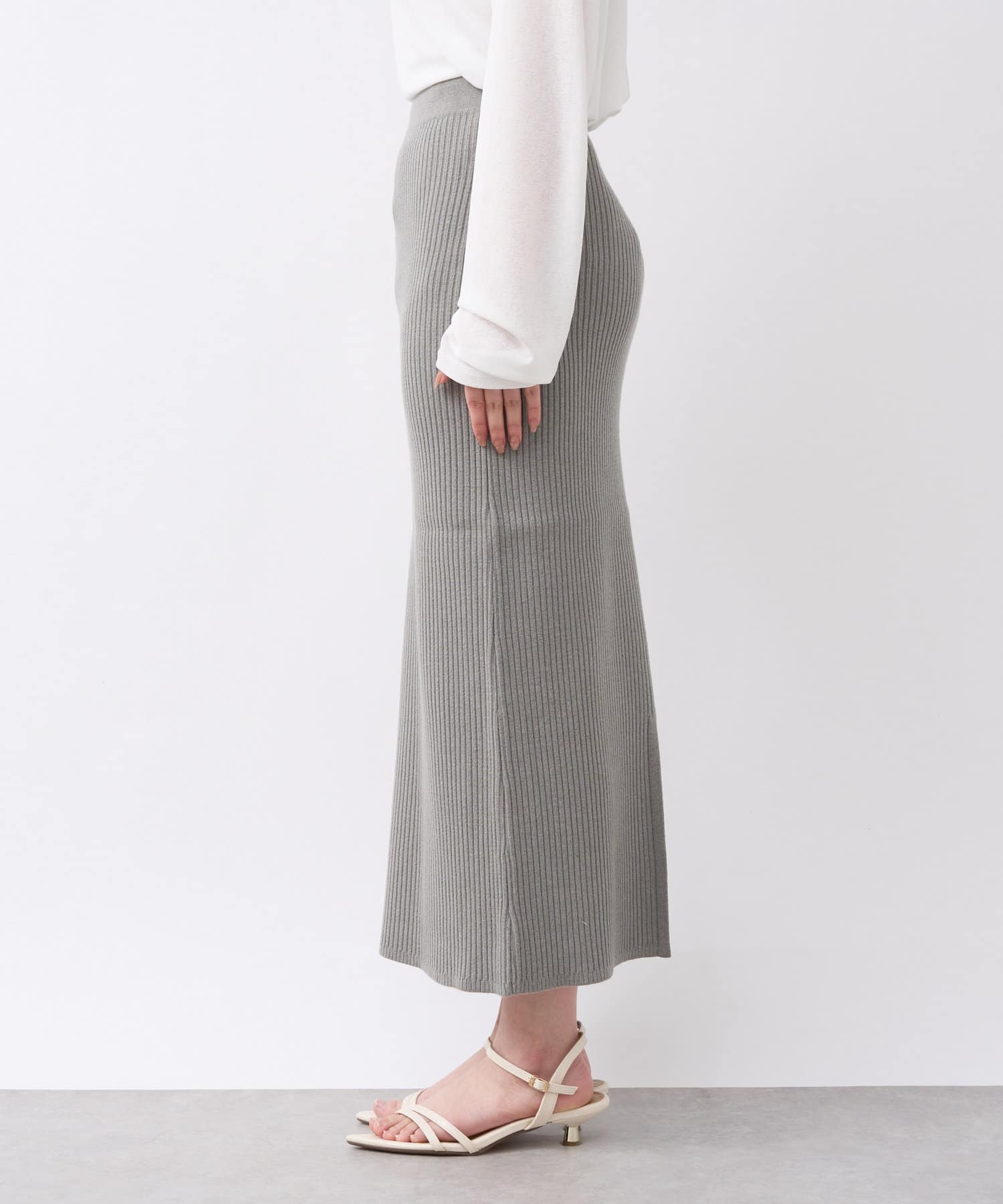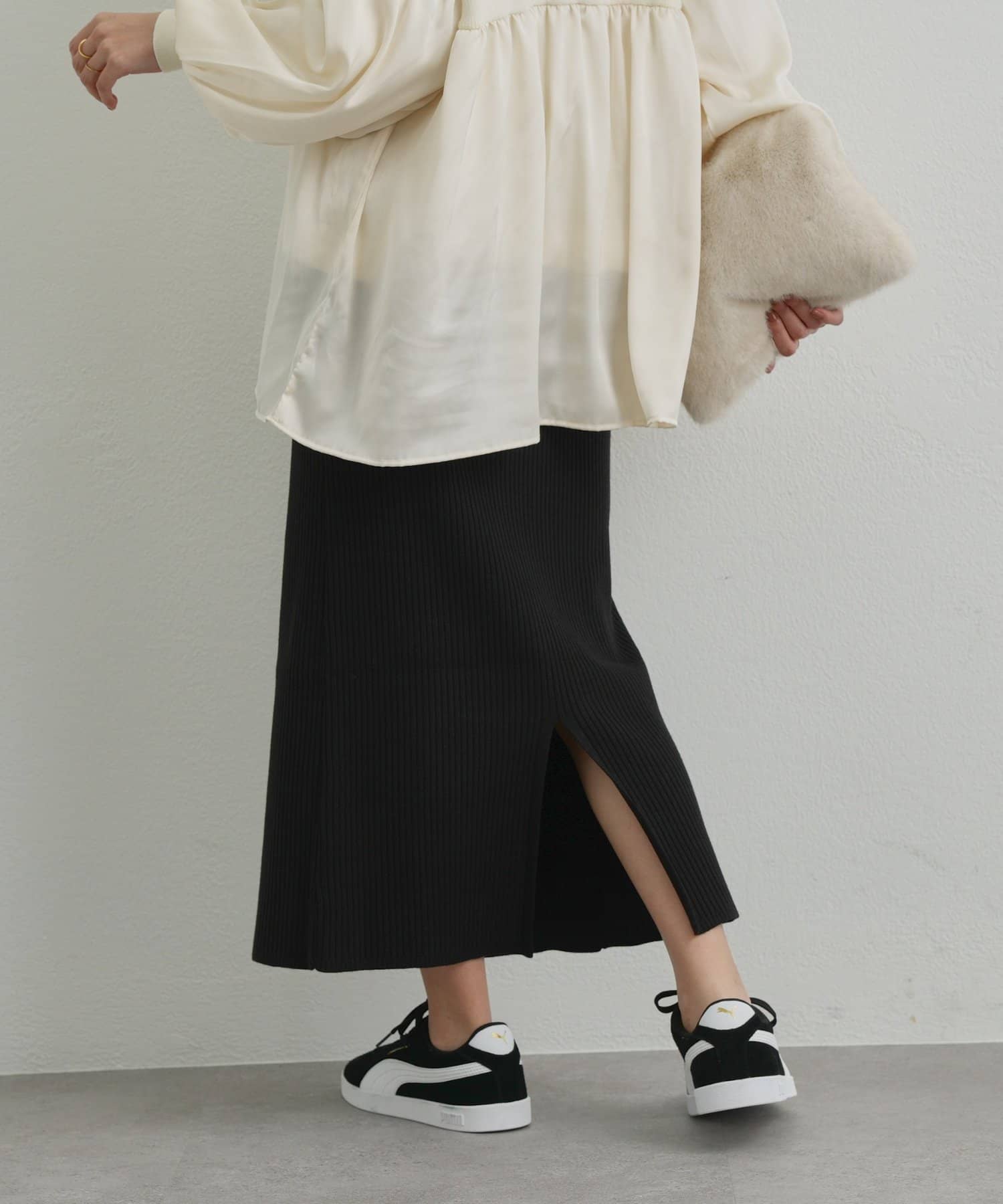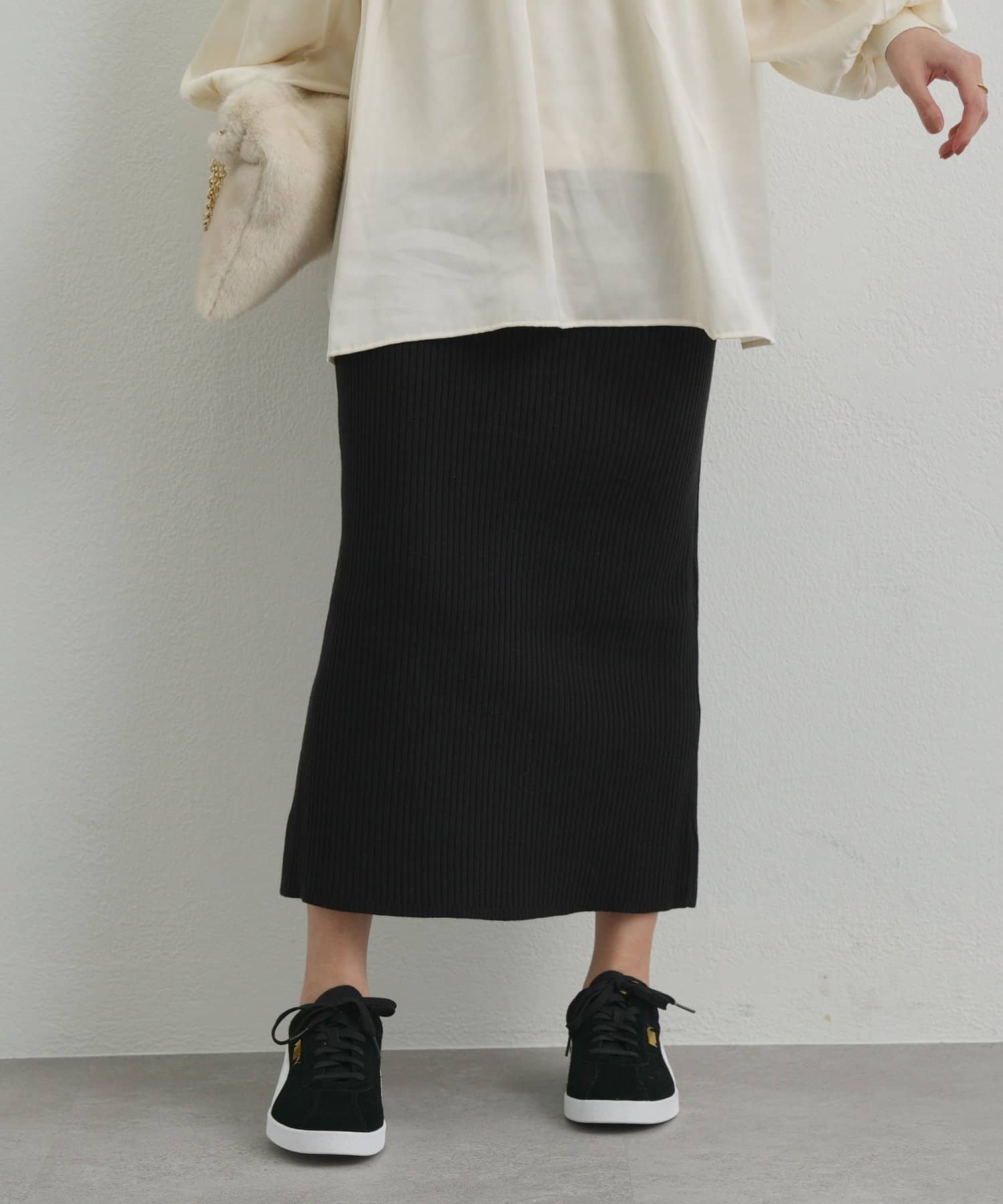 ニット生地なのでストレッチが効いていて履きやすいスカートです。