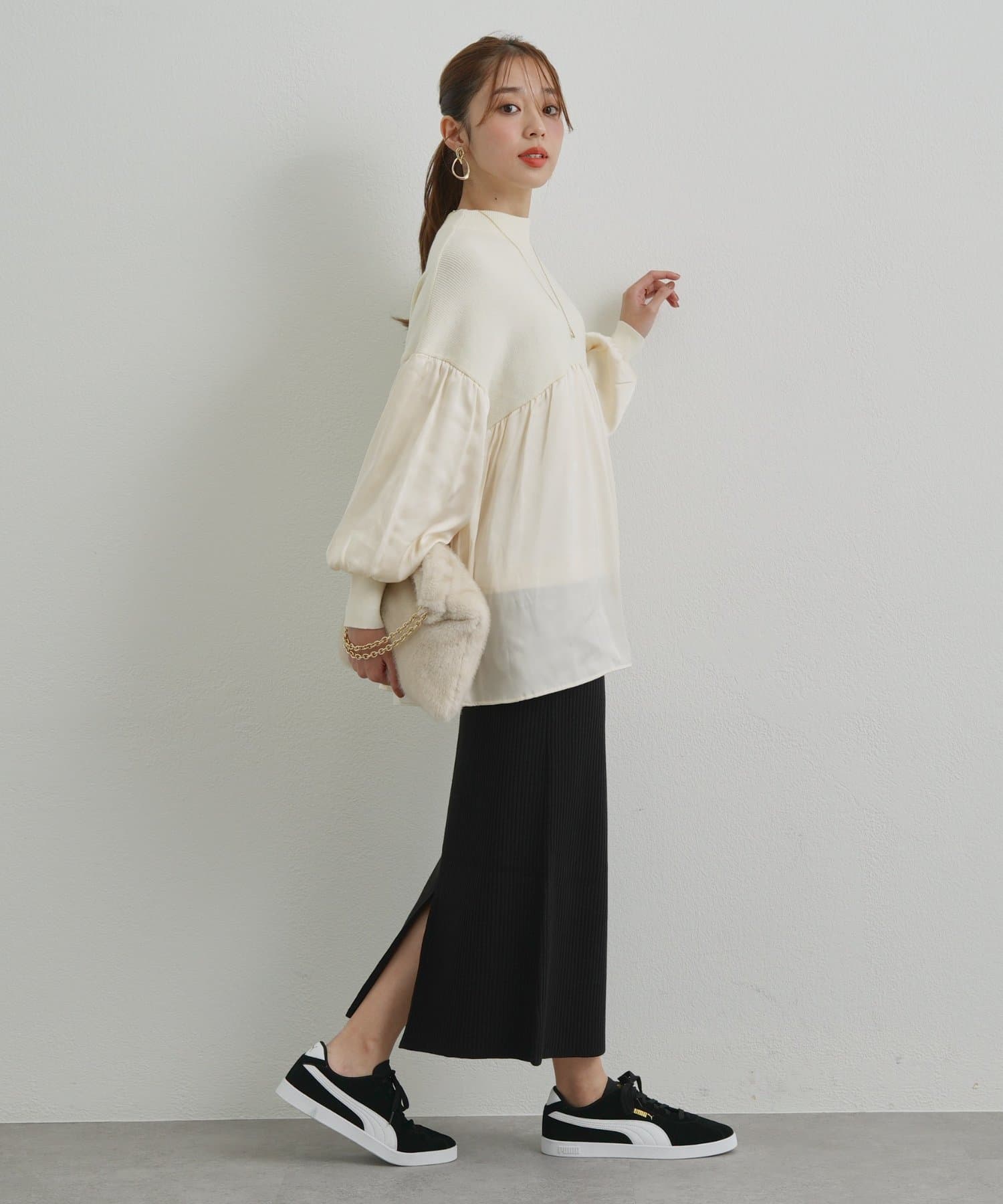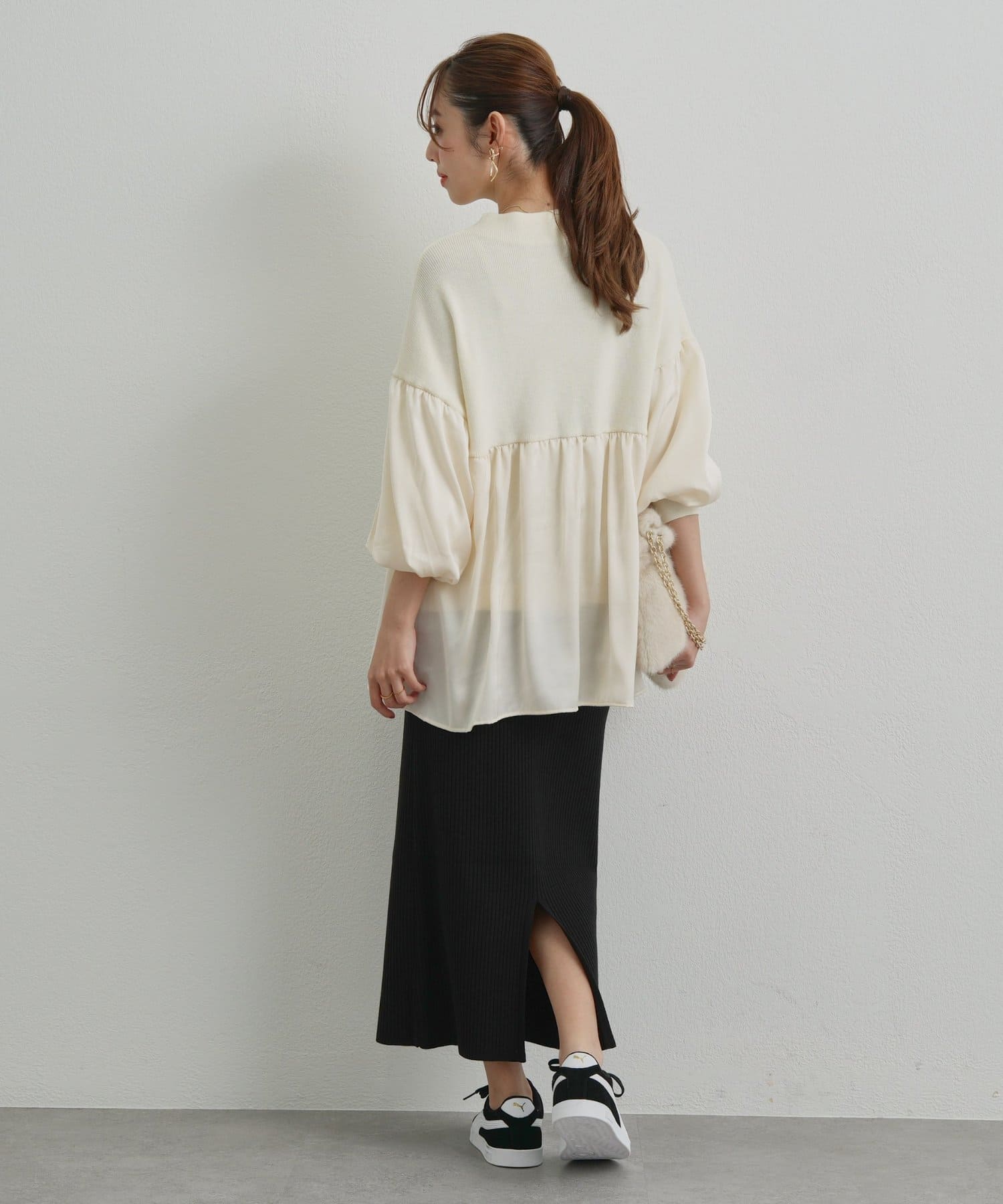 ニット生地でタイトめなラインなのでスタイルアップ効果あり♡