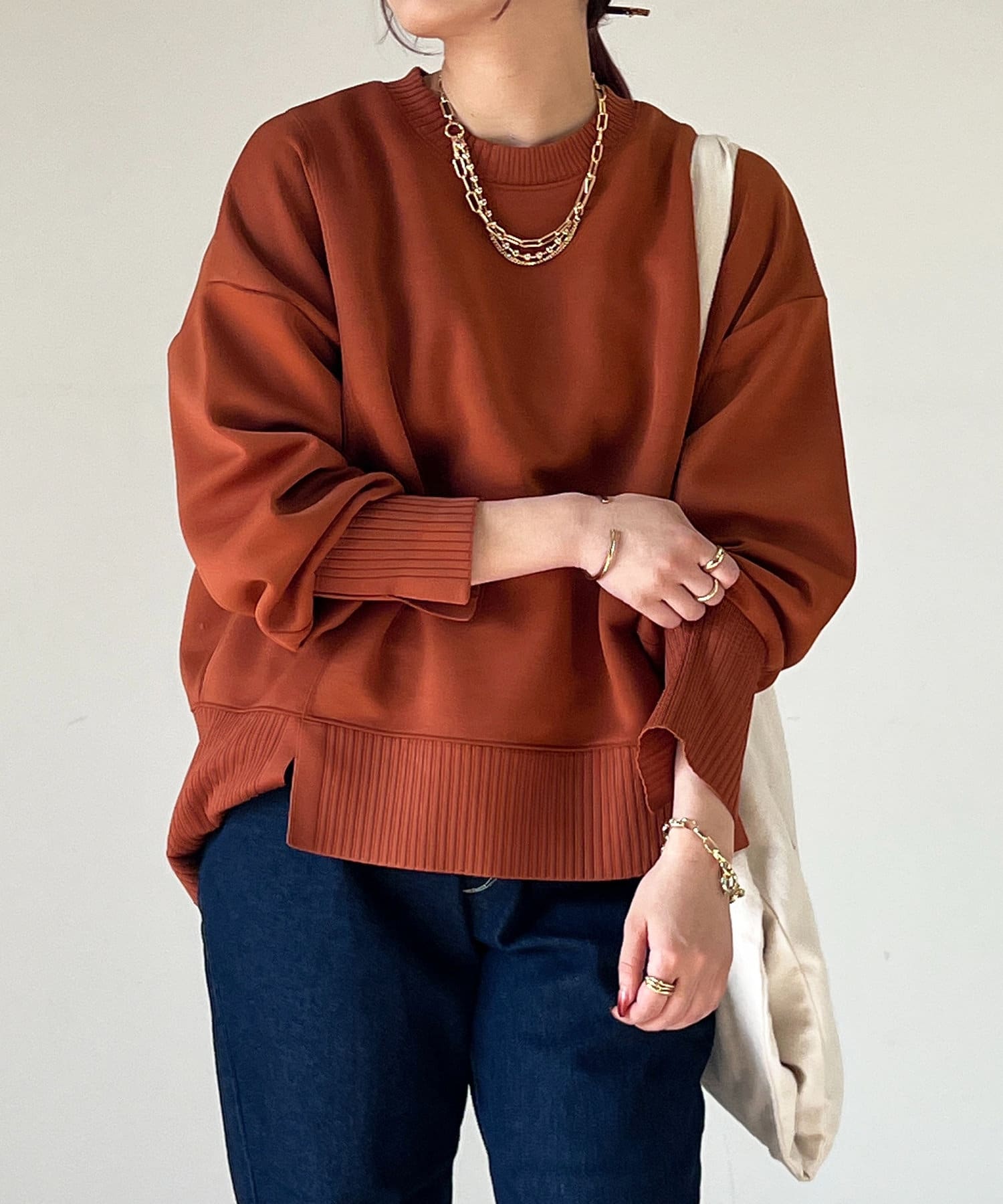 シンプルなスウェット感覚で着れるトップスです。ニット苦手な方でも着やすいです。