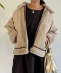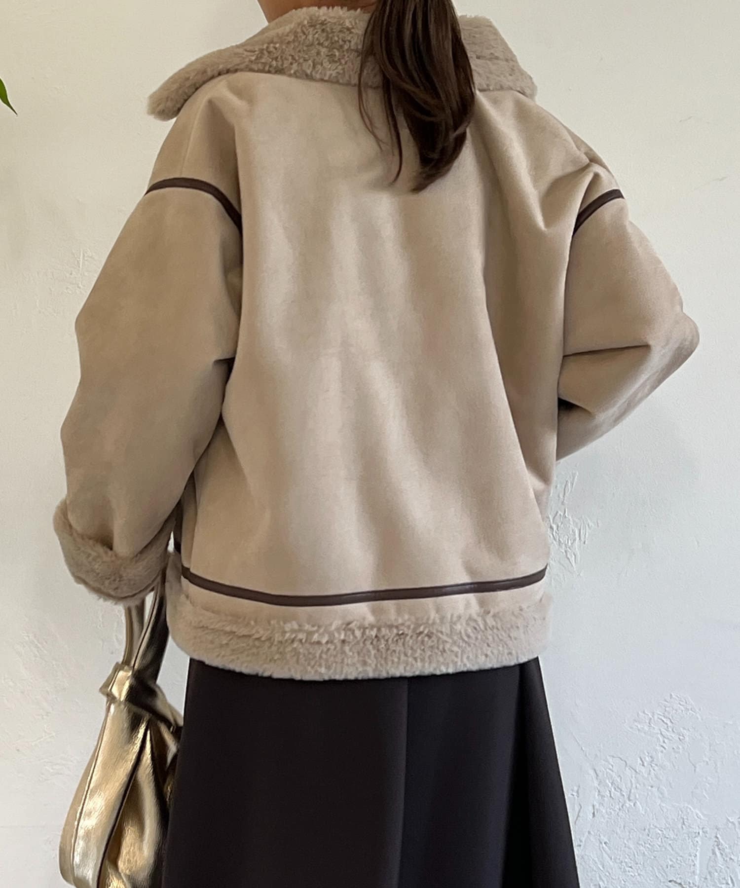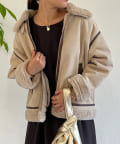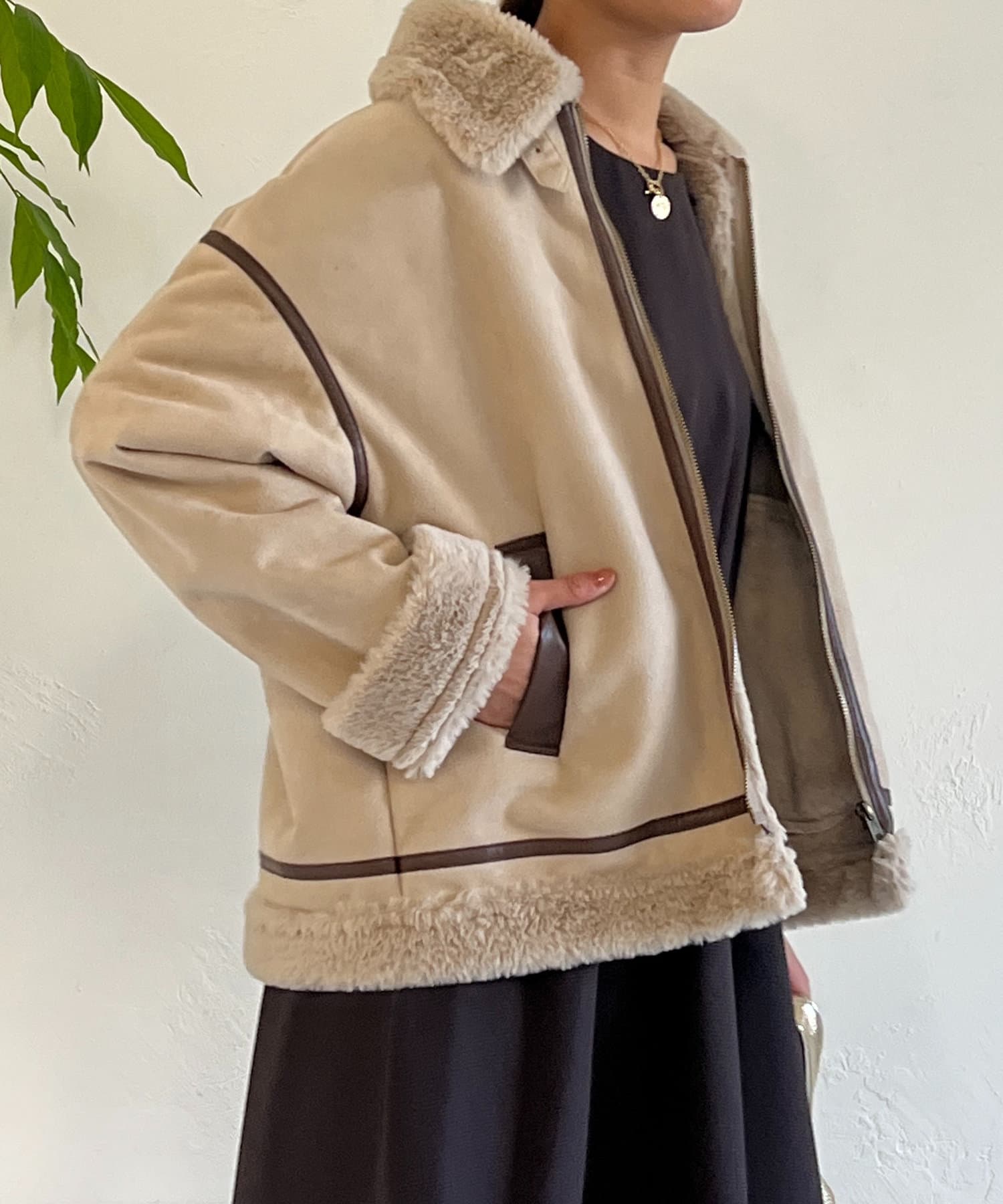 ・ふわふわのボアと柔らかいカラーがフェミニンなムードで着こなせる