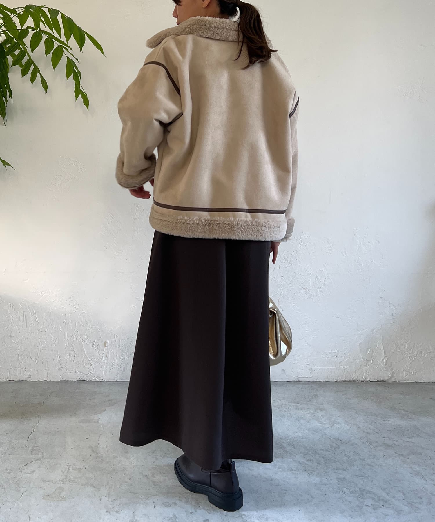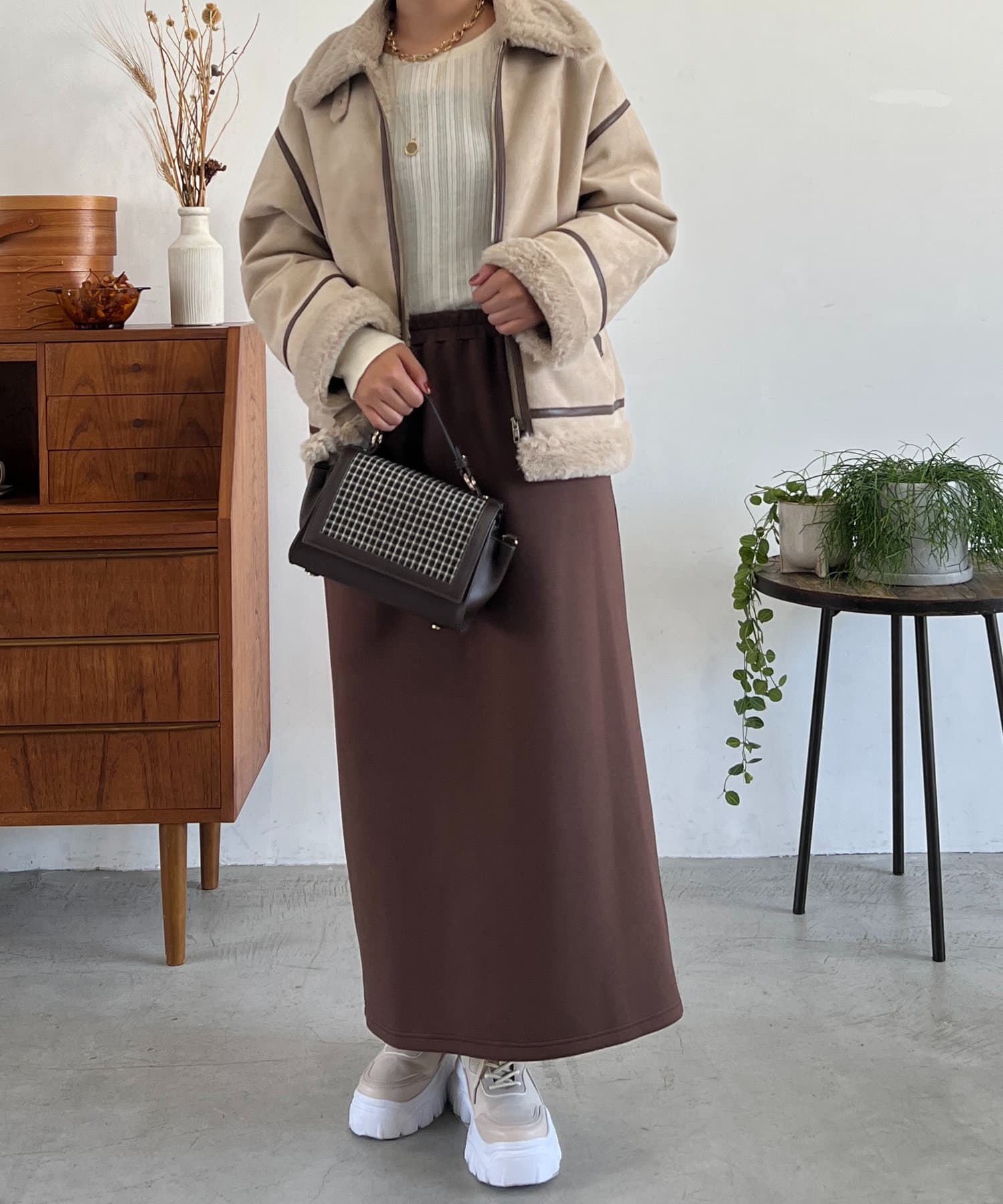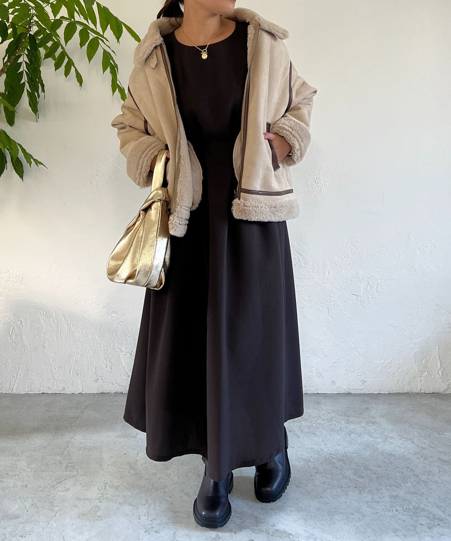 ・ヒップが隠れるミドル丈なので、ワンピースやスカートなど様々なコーディネートに合わせやすく寒い時期のワードローブに活躍◎