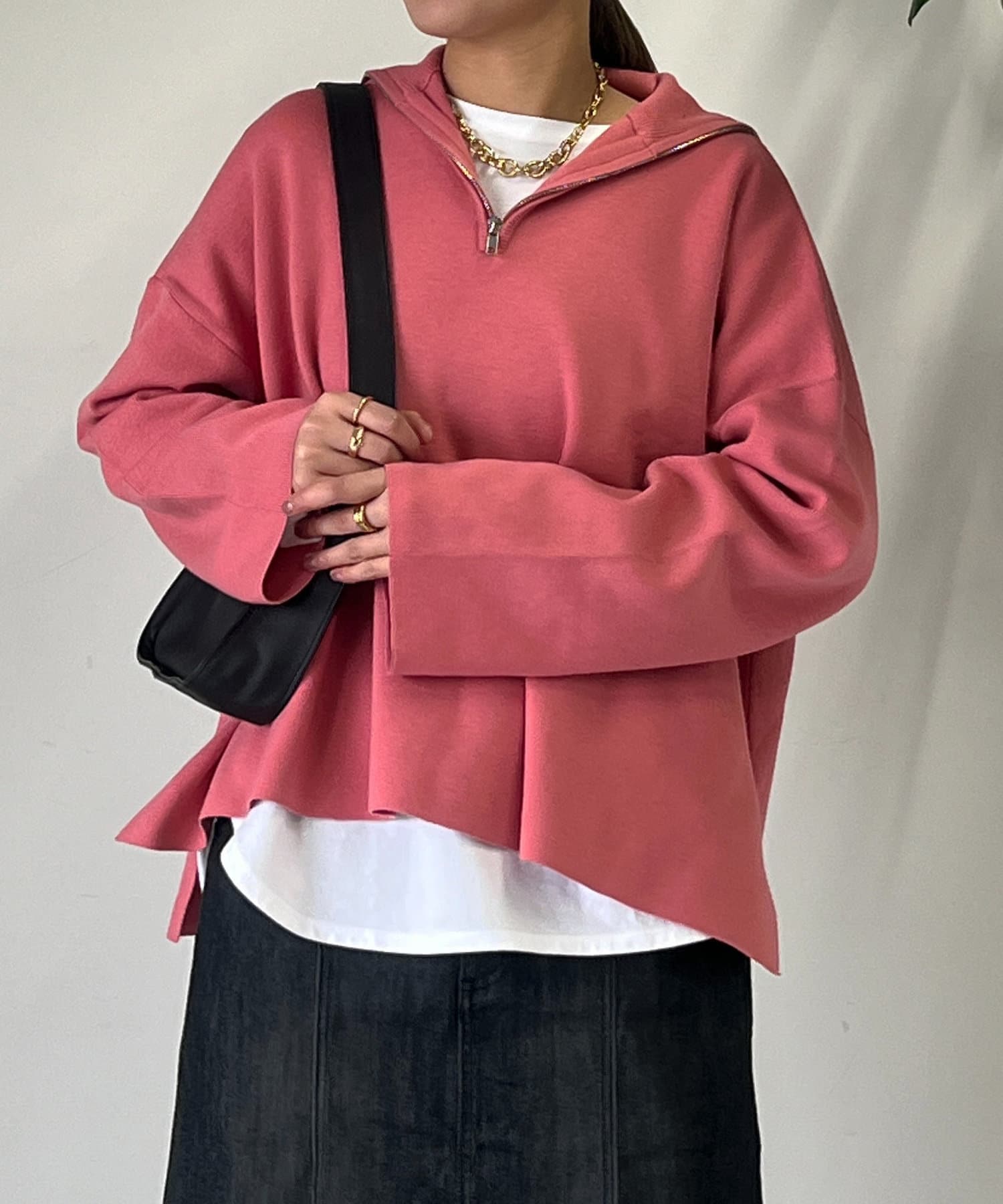 《華奢見え・肌触り◎》スタンドZIPゆるニット