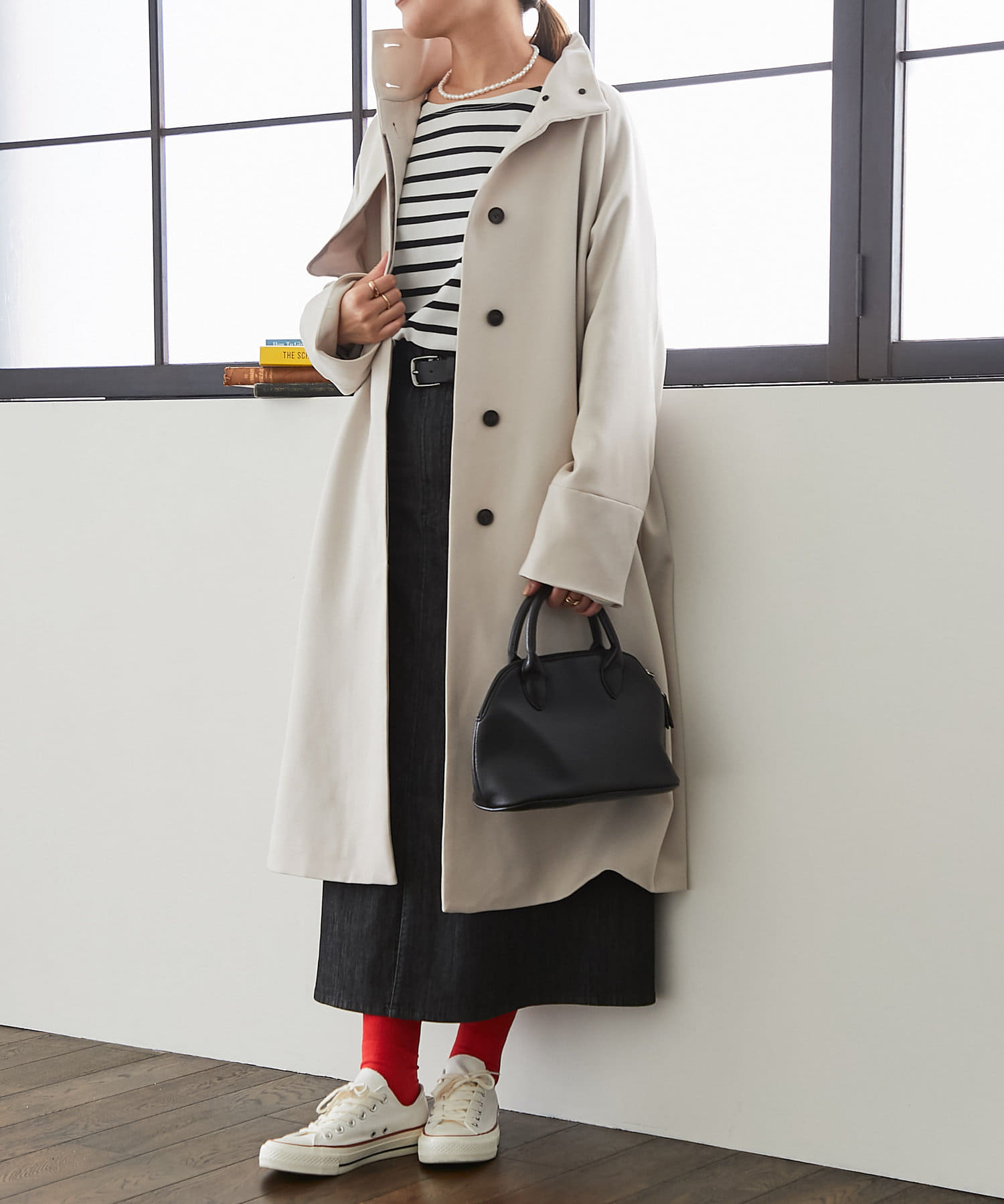 大人上品なシルエットがオンオフどちらでも活躍するコート