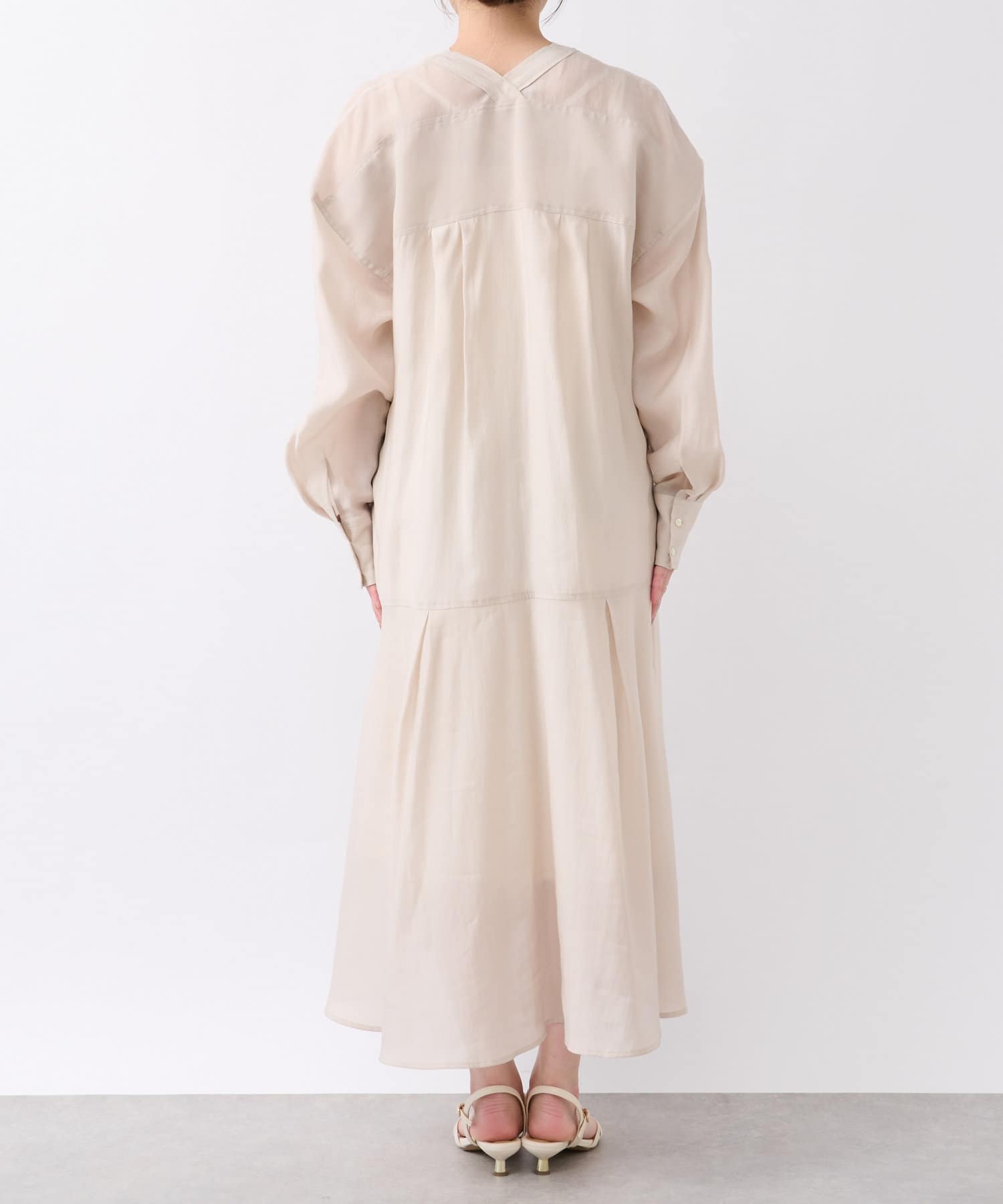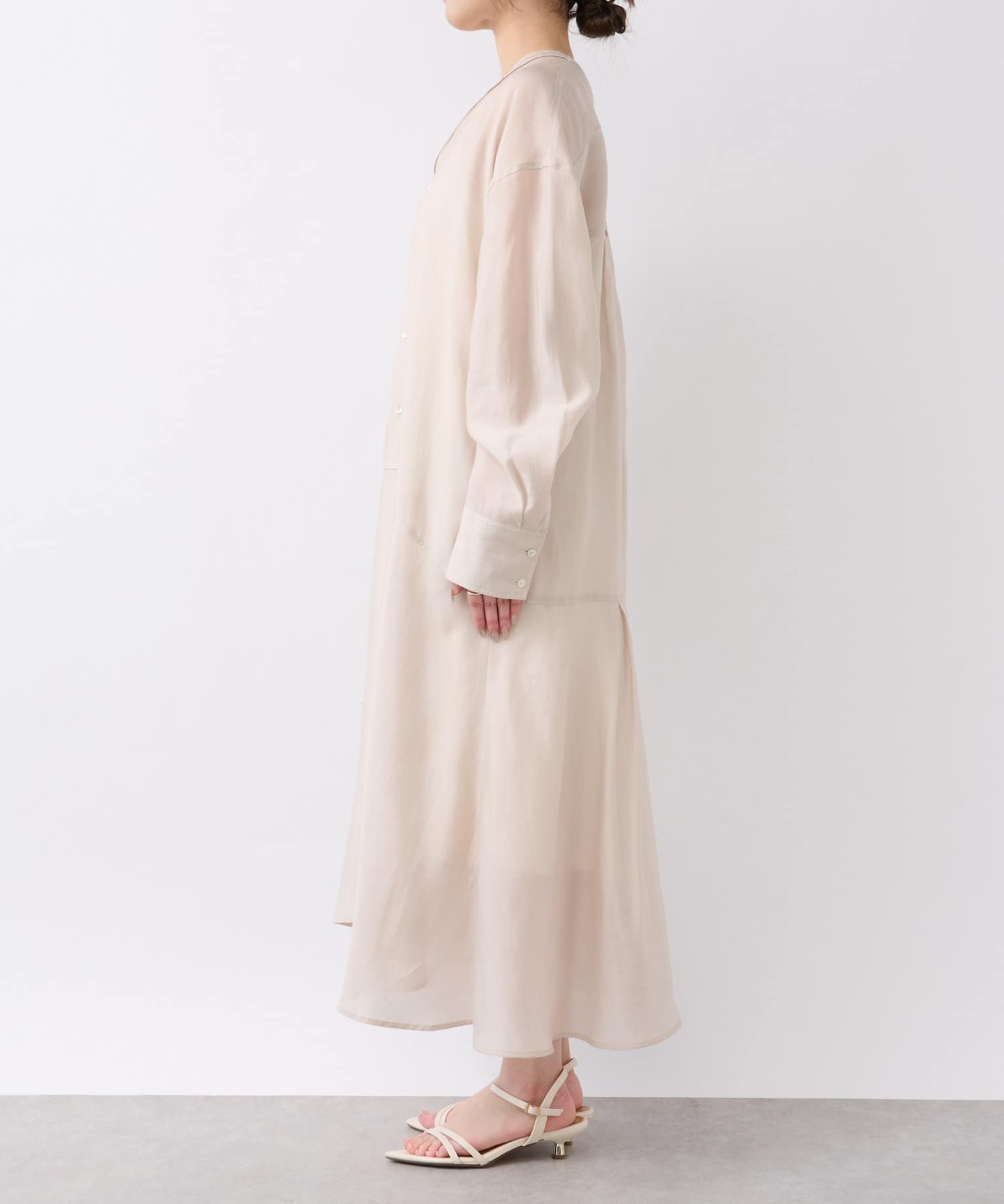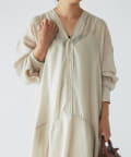 身長150cmのスタッフで足首ほどの着丈です。小柄な方にもバランス良く合わせていただけます。
