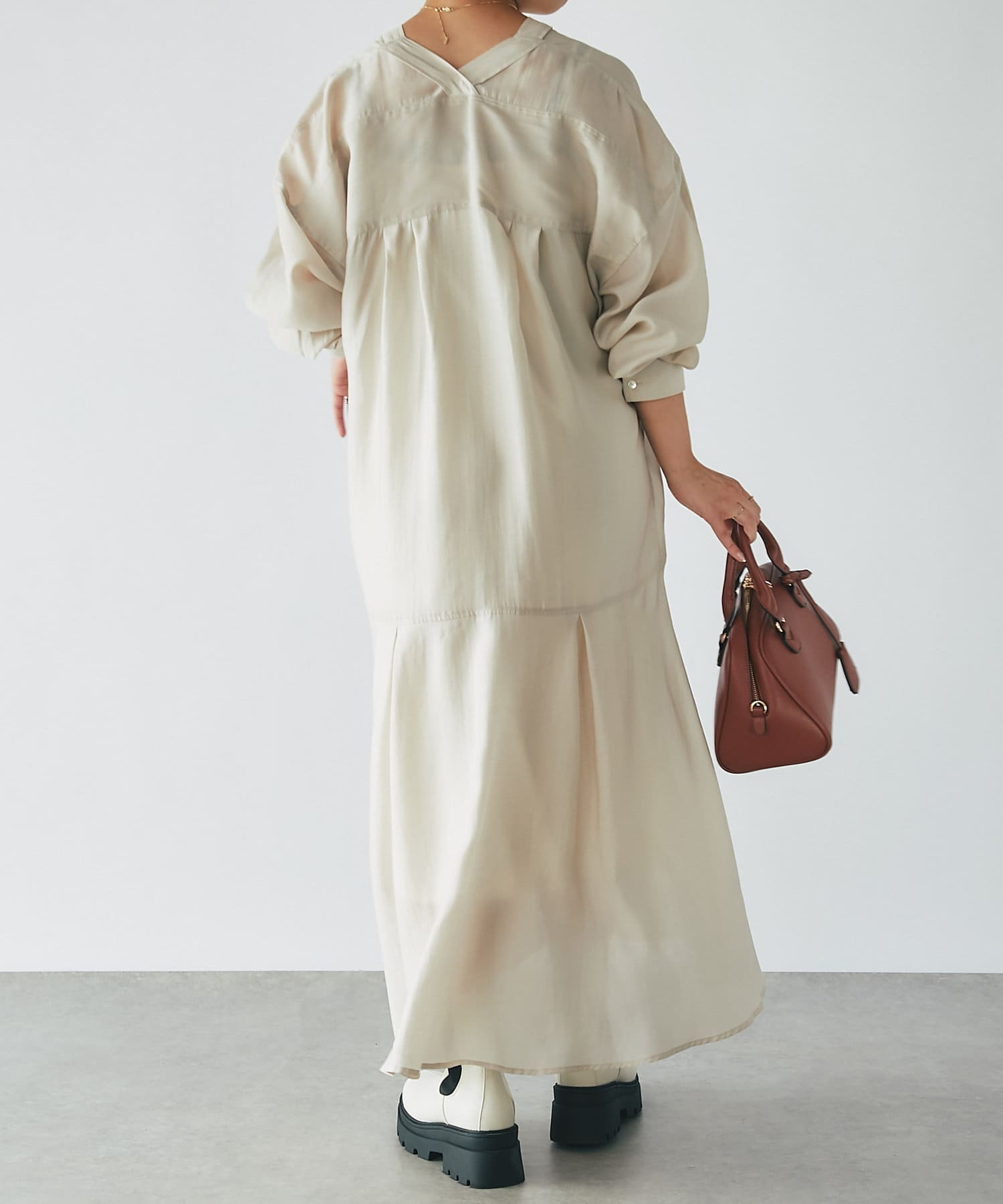 ・リラックス感たっぷりなシルエットと少し長めのゆったりした袖が落ち着いた印象