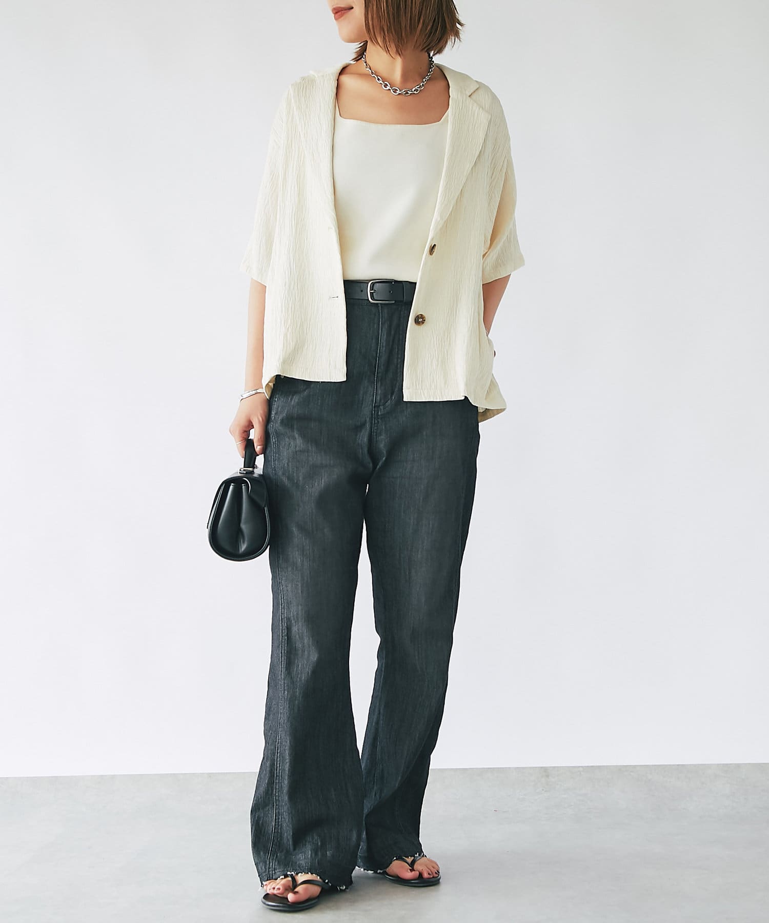 ・ドライタッチでシワになりづらく、マシンウォッシュ可能な素材なので、夏でも快適に着用OKです◎