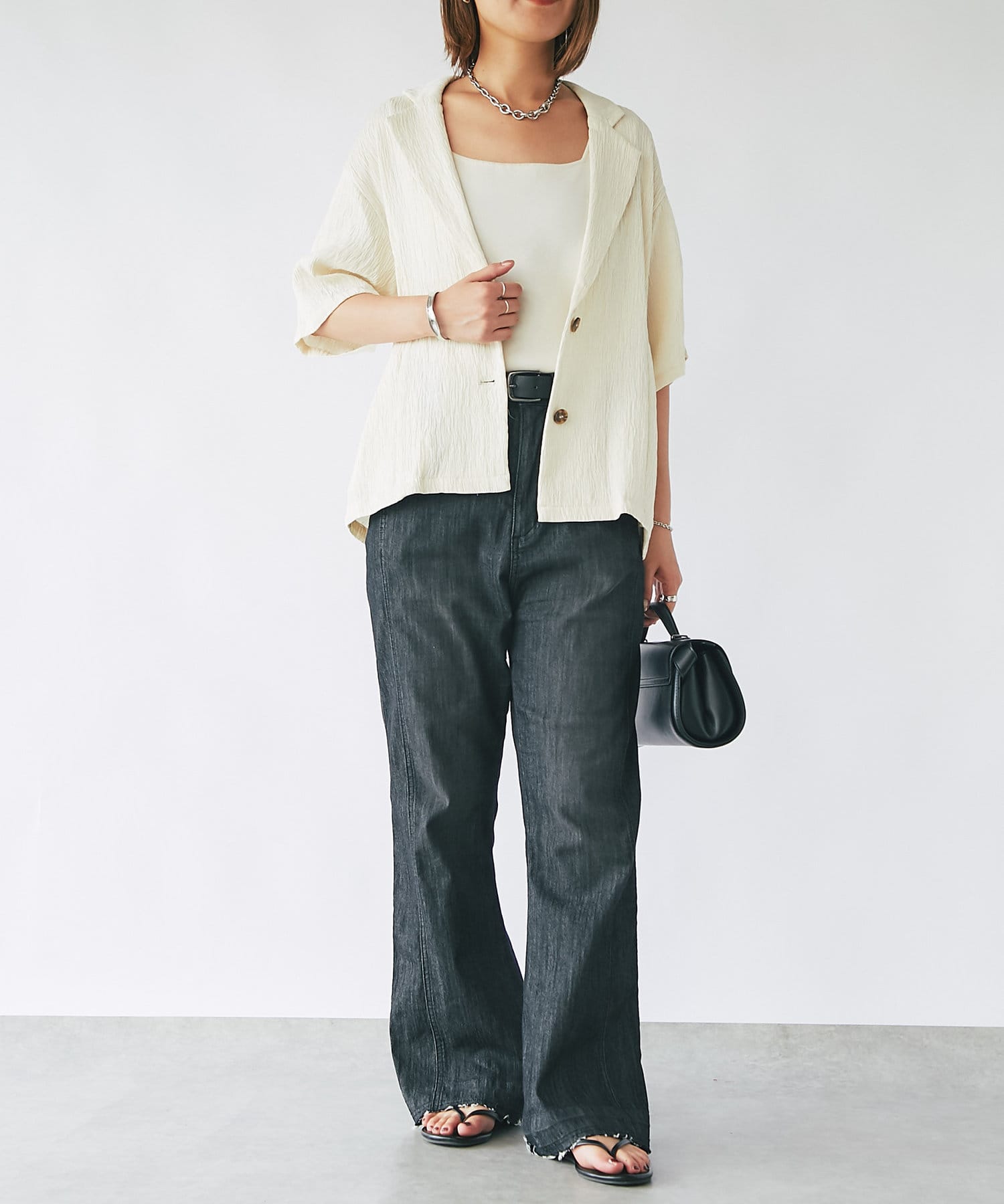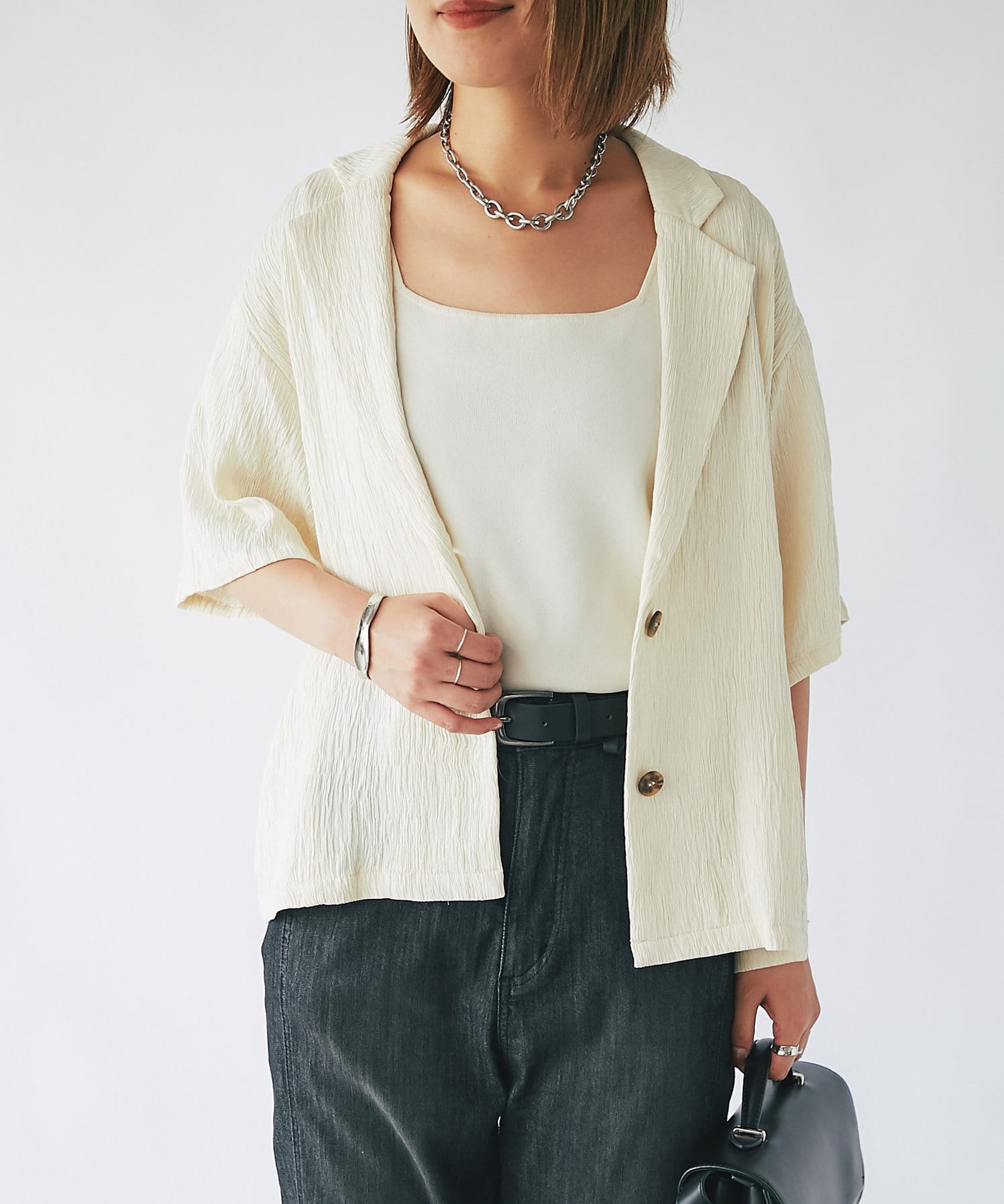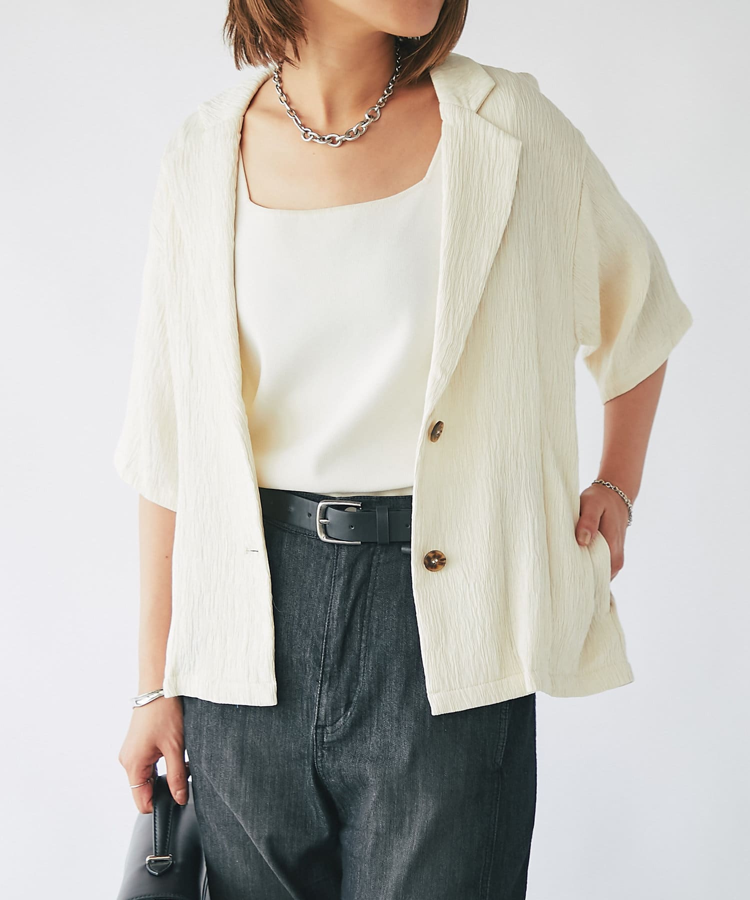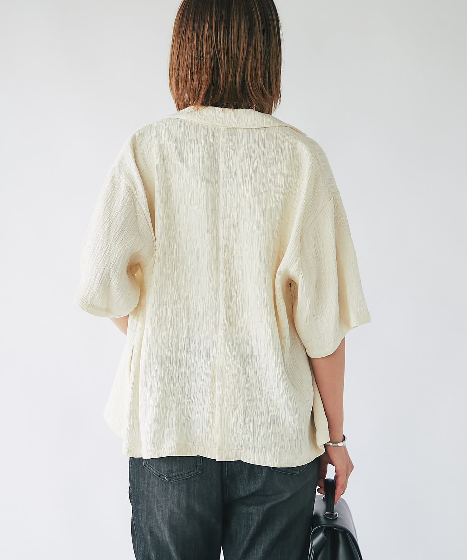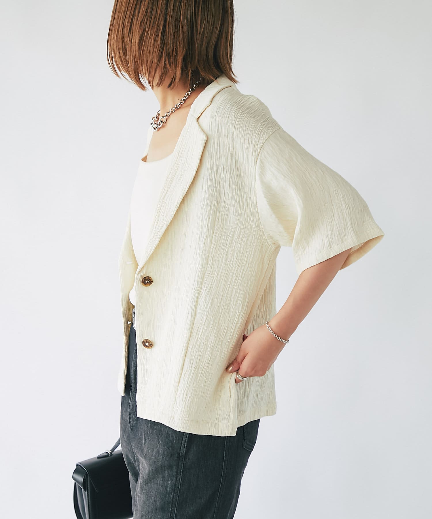 《柔らかい肌触り・セットアップ対応可》シボ半袖ジャケット