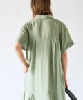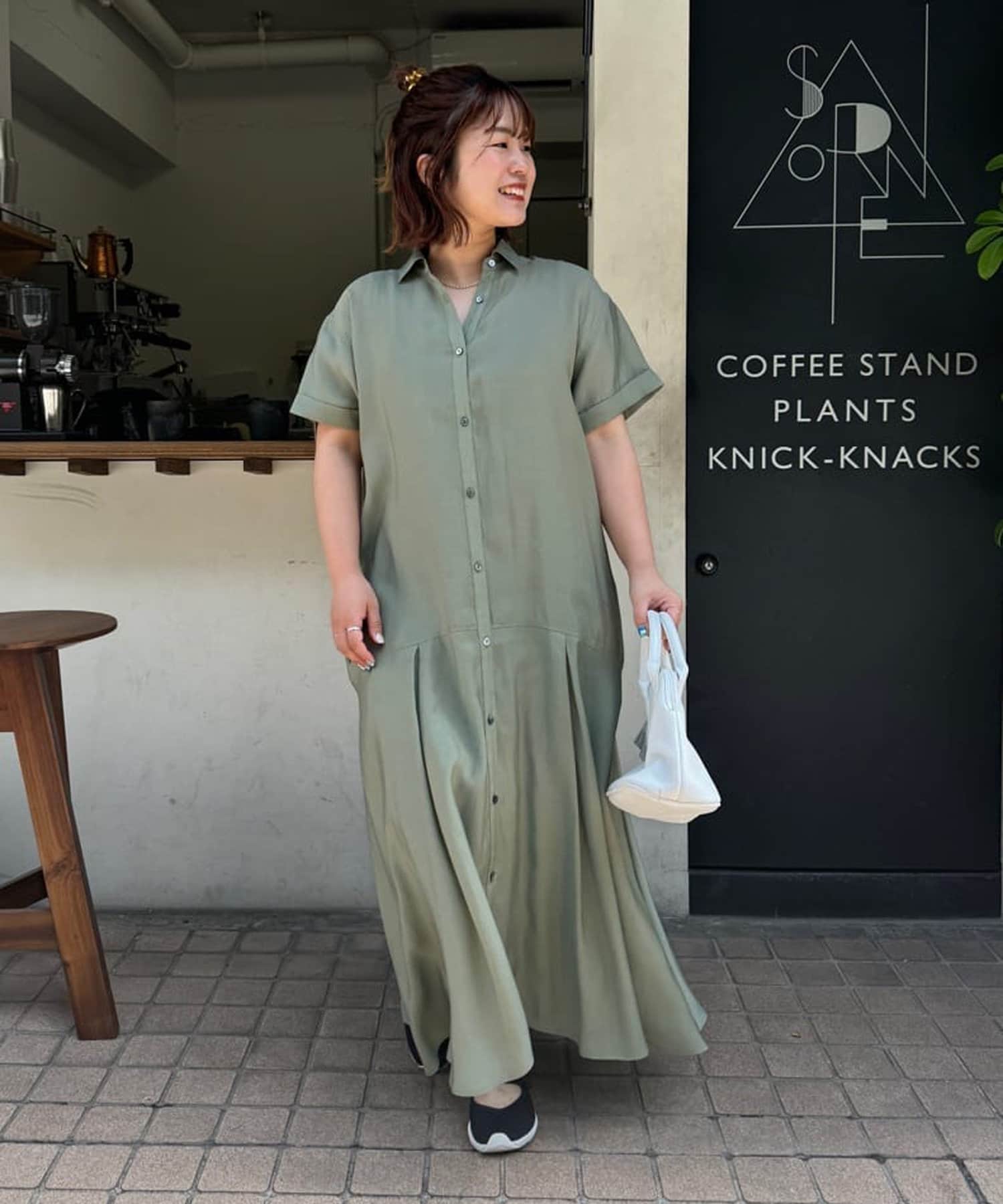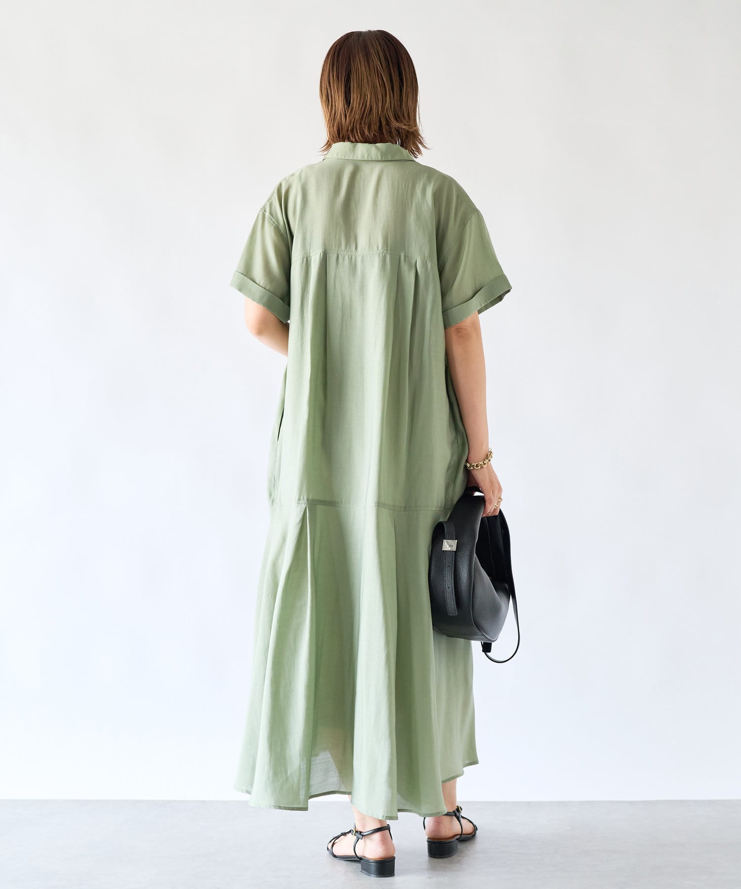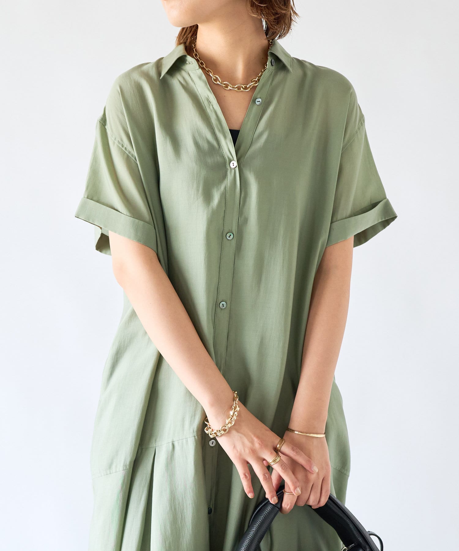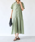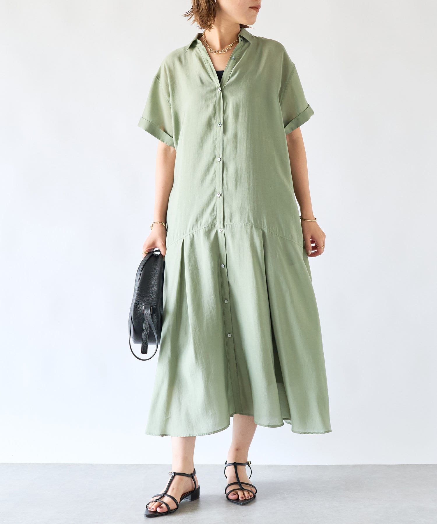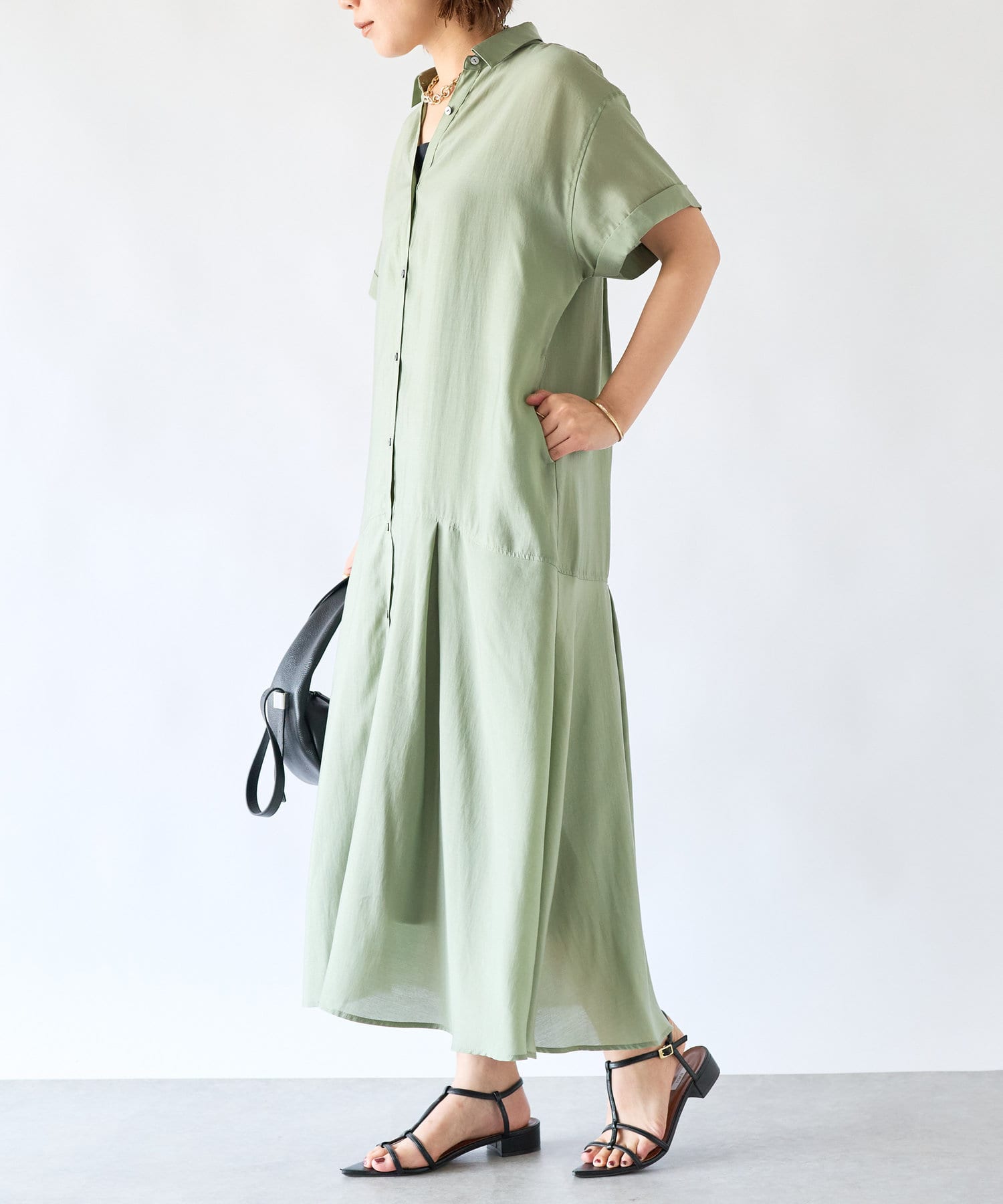 ドレープがエレガントなアクセントになるシャツカラーワンピース