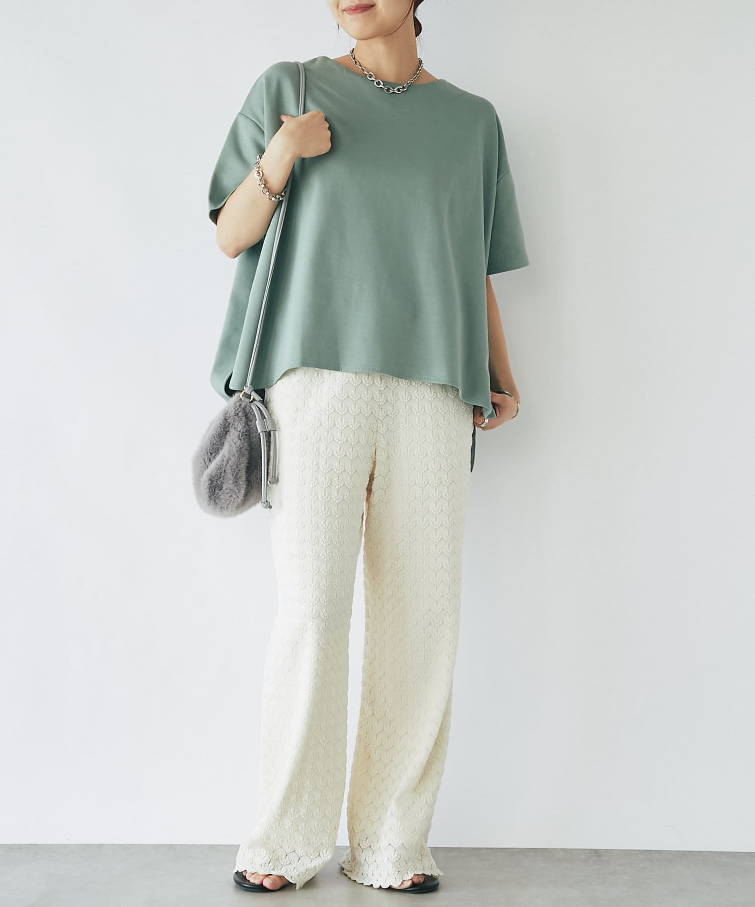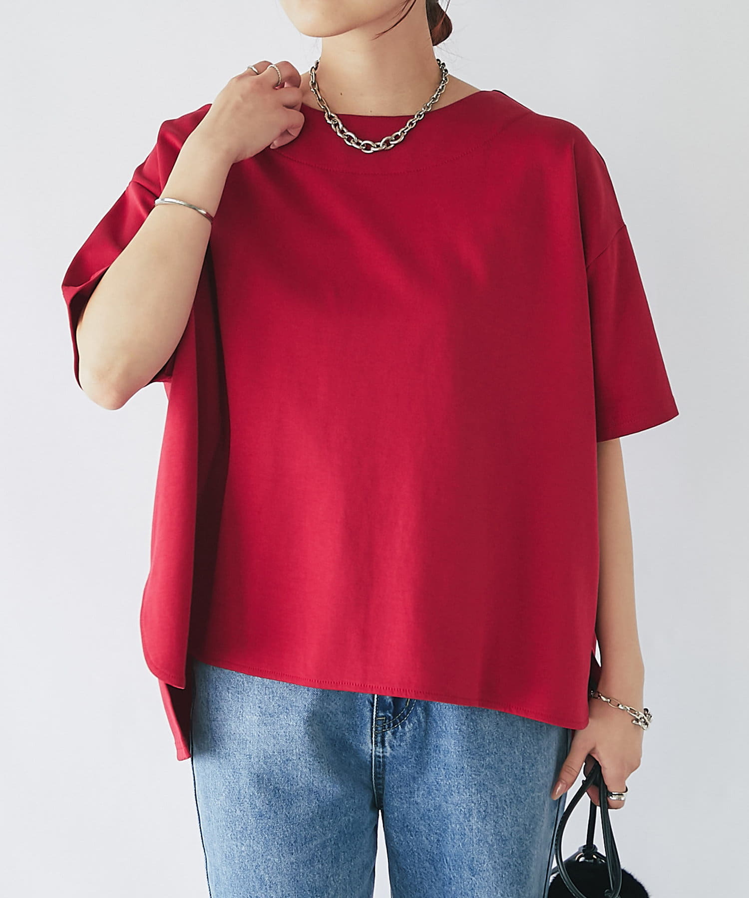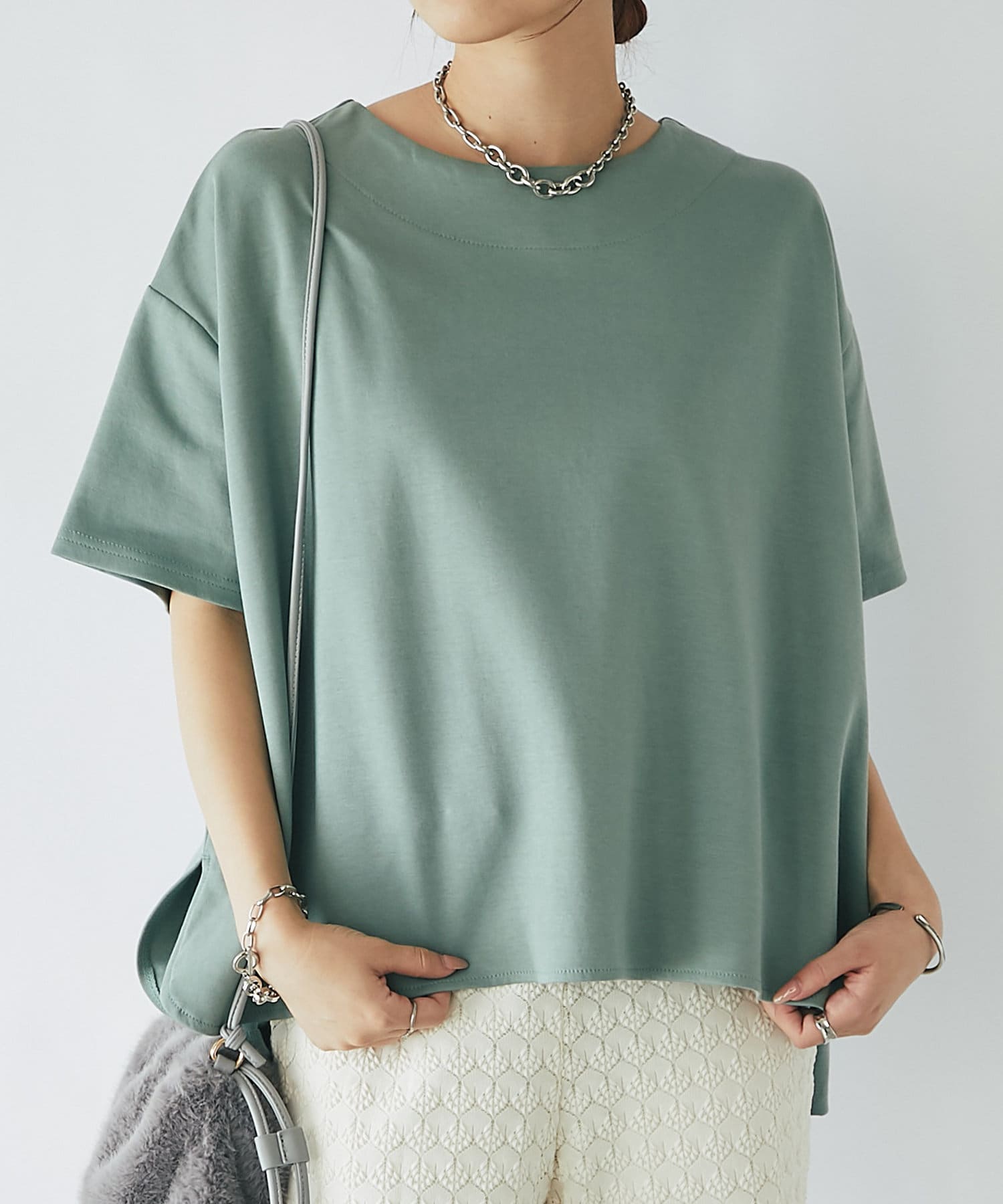 ・肌離れするサイジングと二の腕が隠れるシルエットで、体型カバーが叶う