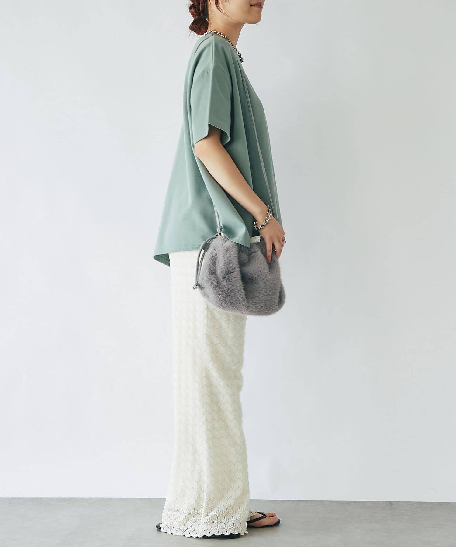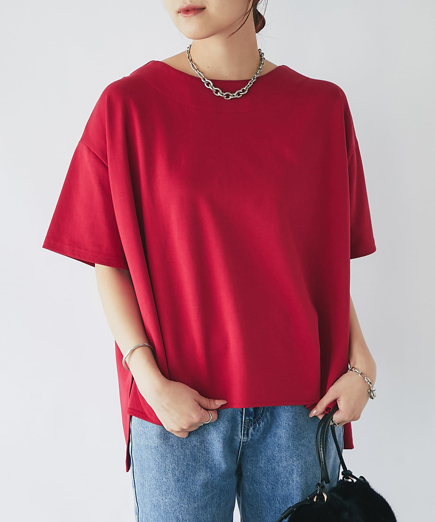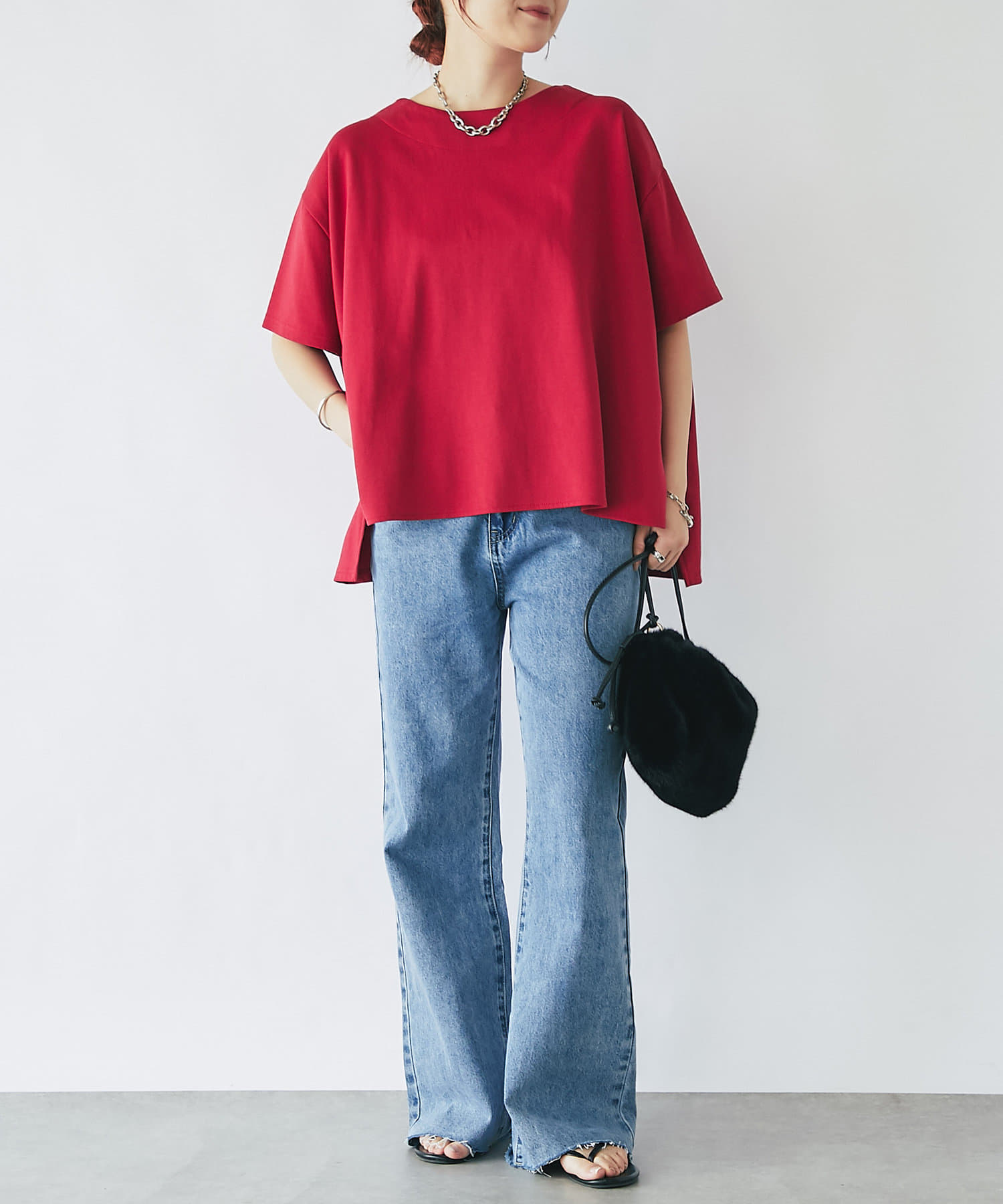 ・肌離れするサイジングと二の腕が隠れるシルエットで、体型カバーが叶う