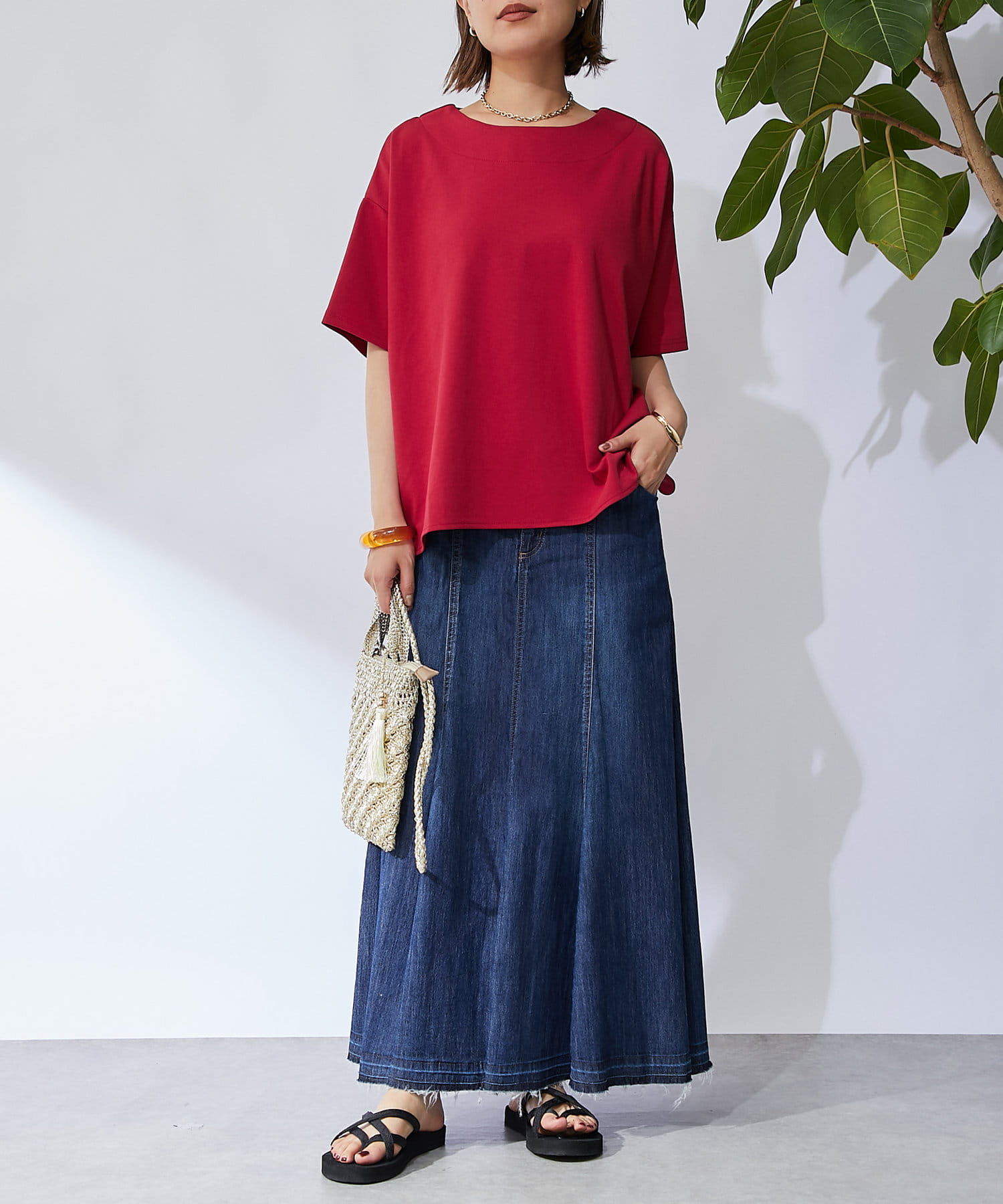 気になるお腹もお尻もしっかりカバーできるカットソー。