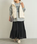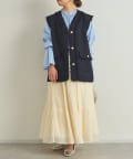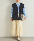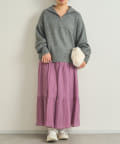 フェミニンなアイテムなのでゆったりめのニットやカットソーで
