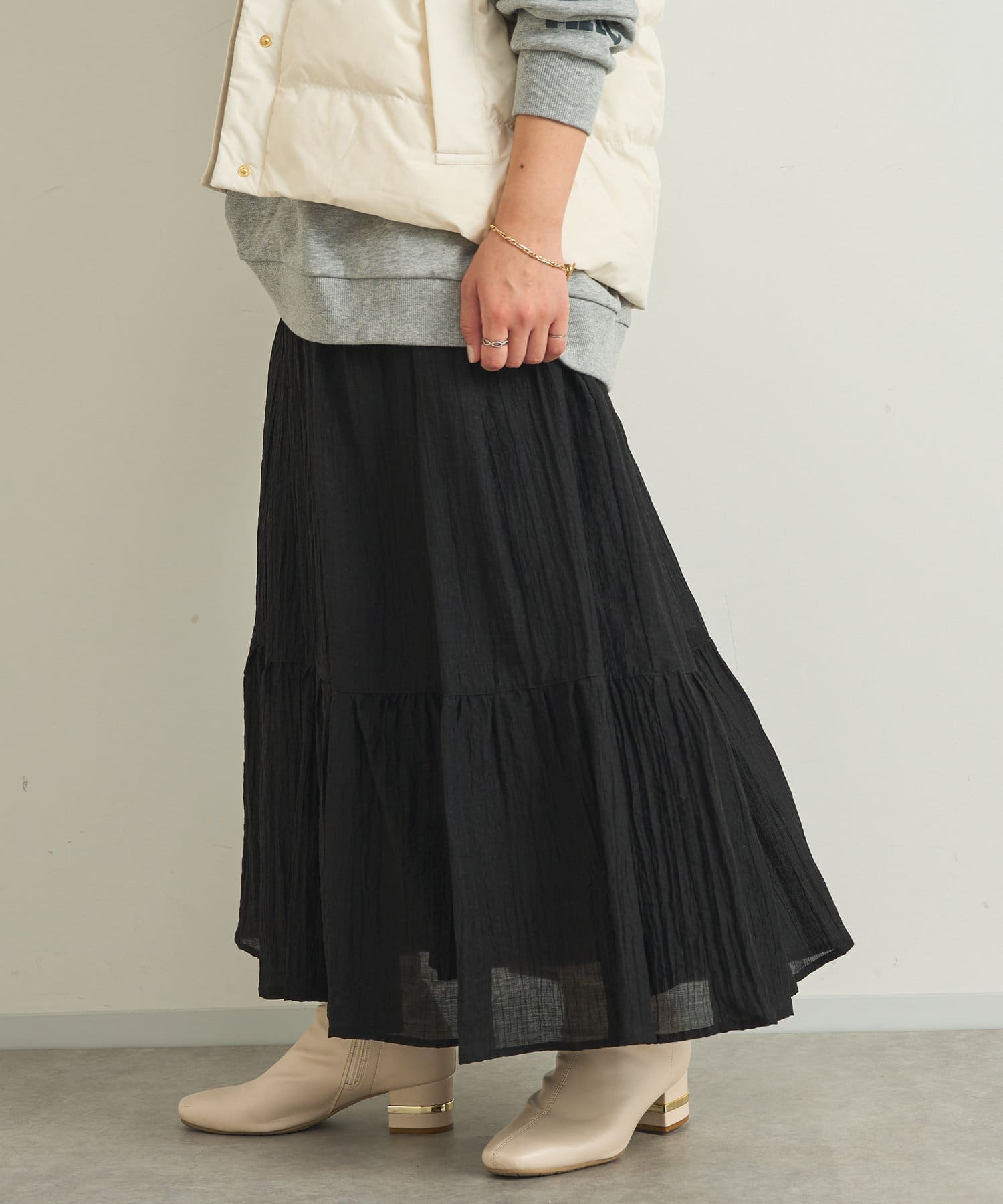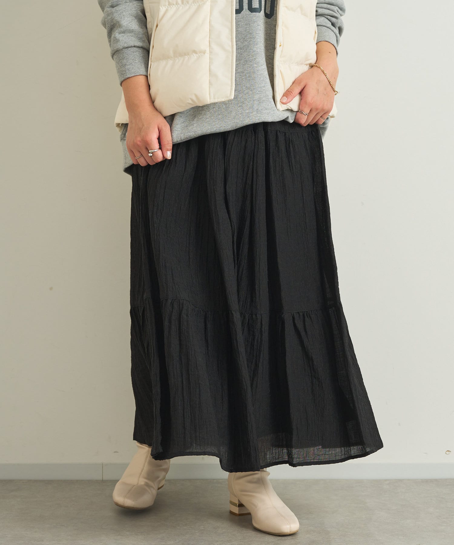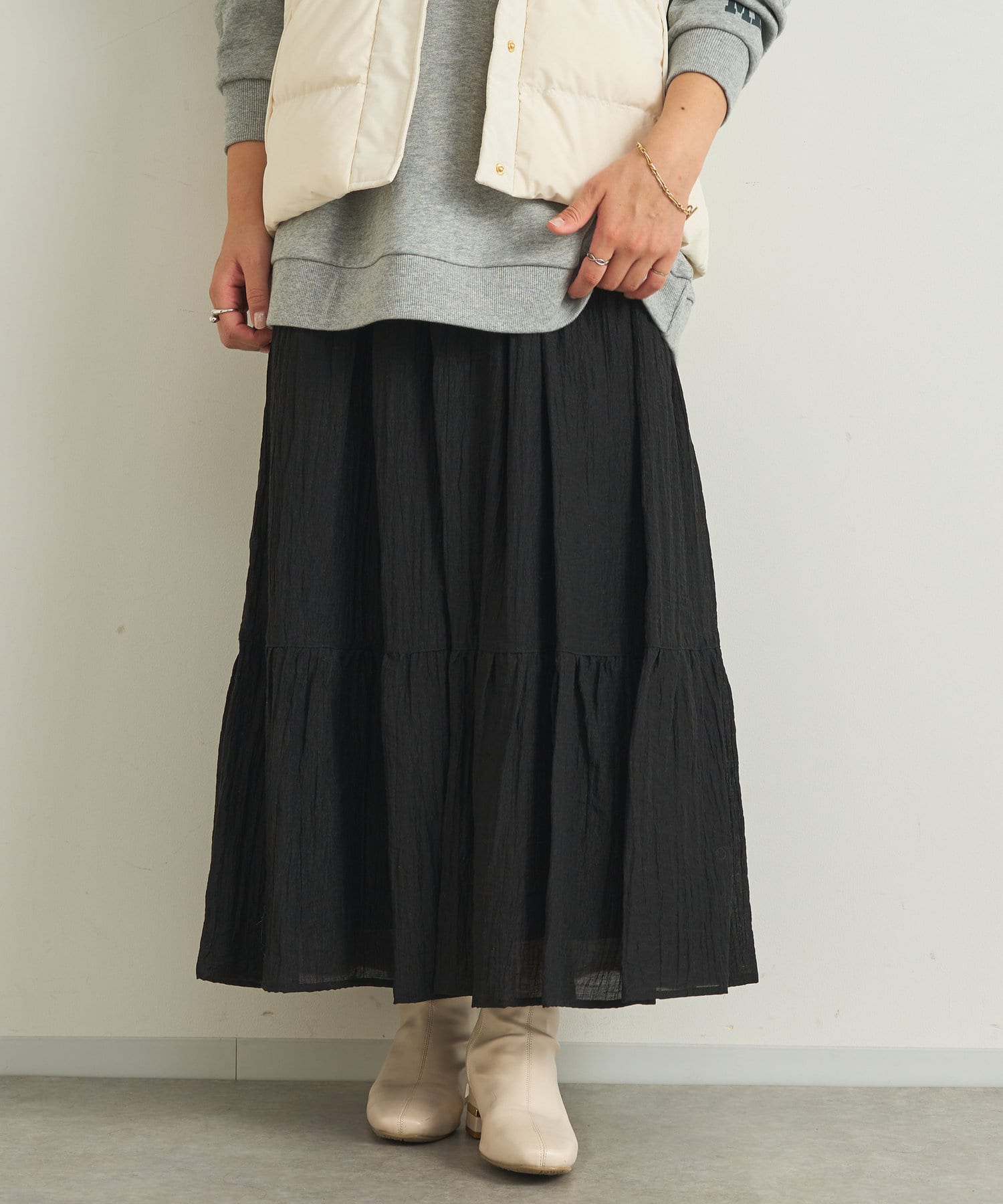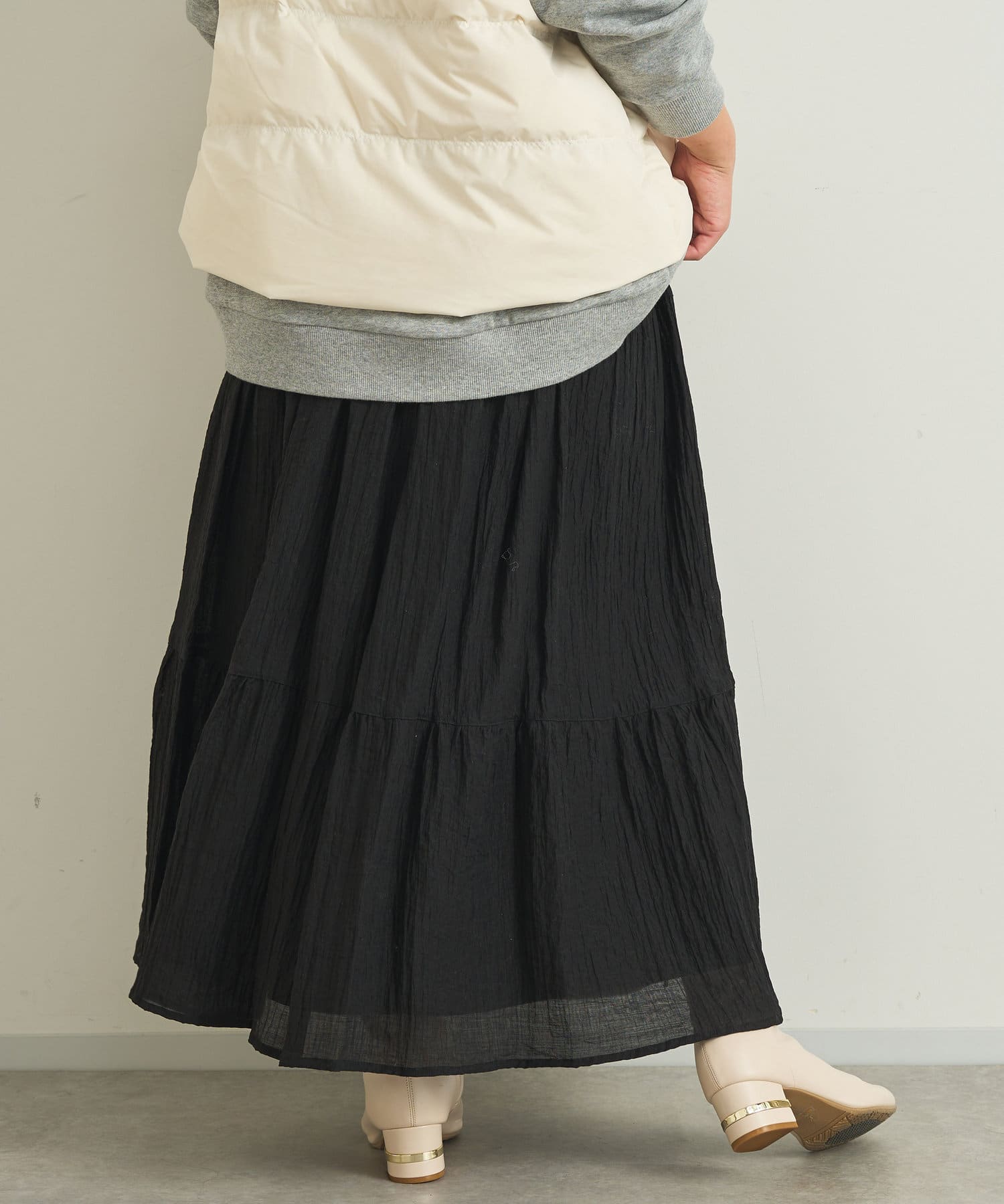 《清涼感アリ・ドラマチックなシルエット》ワッシャーティアードスカート
