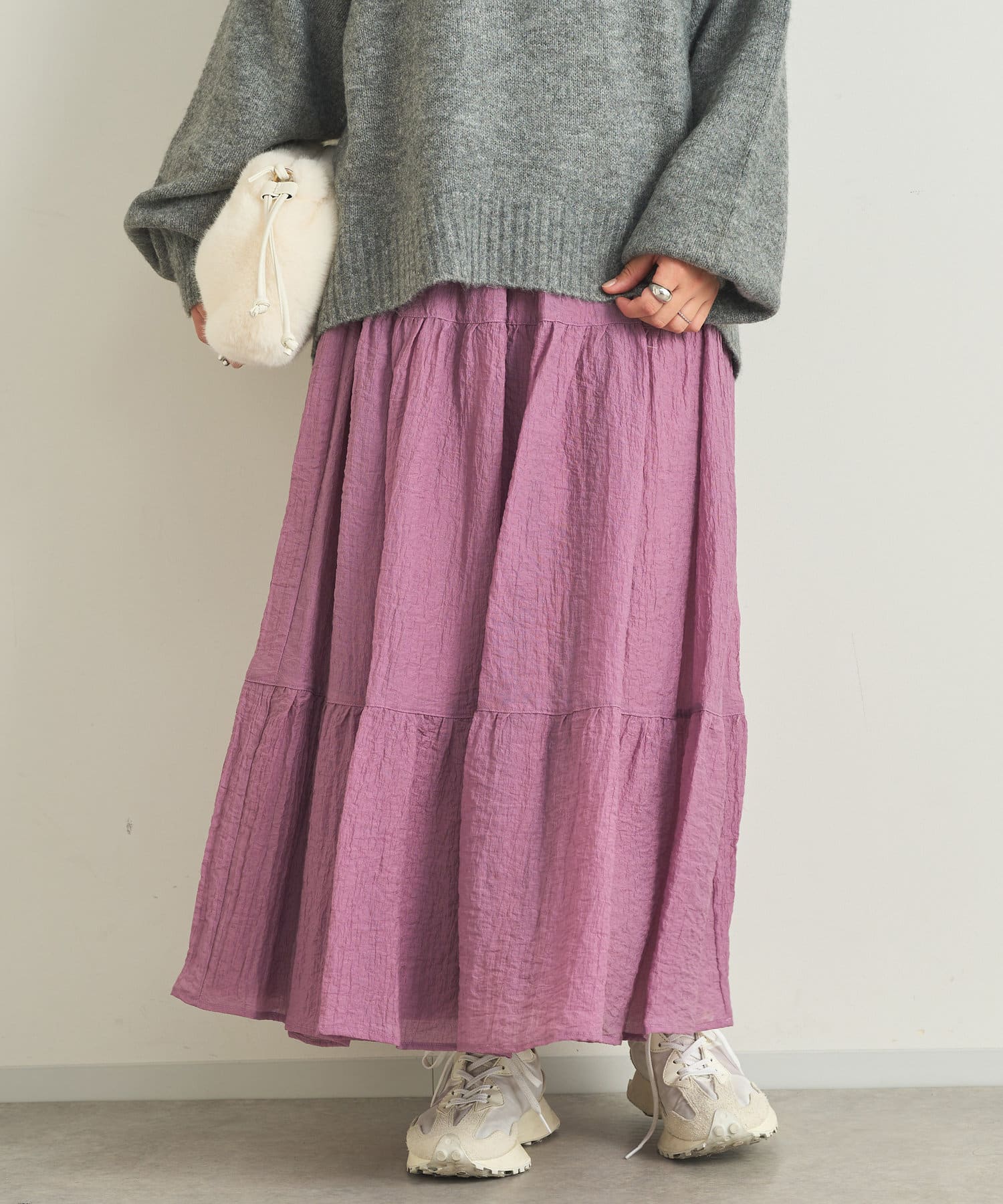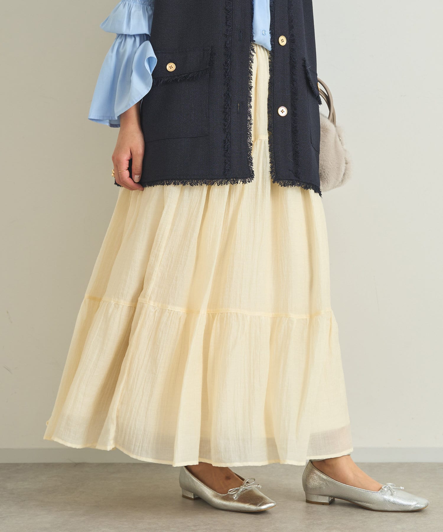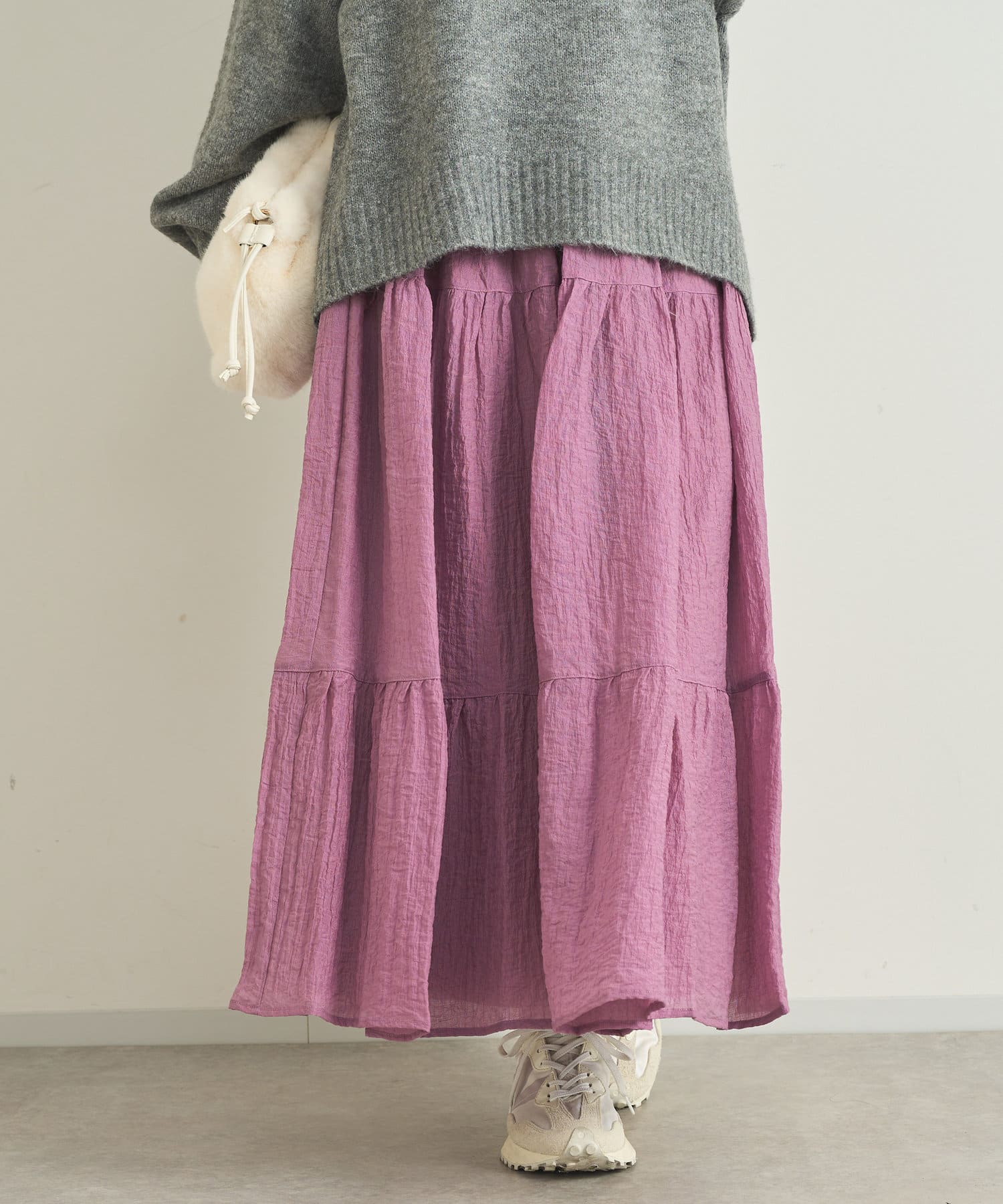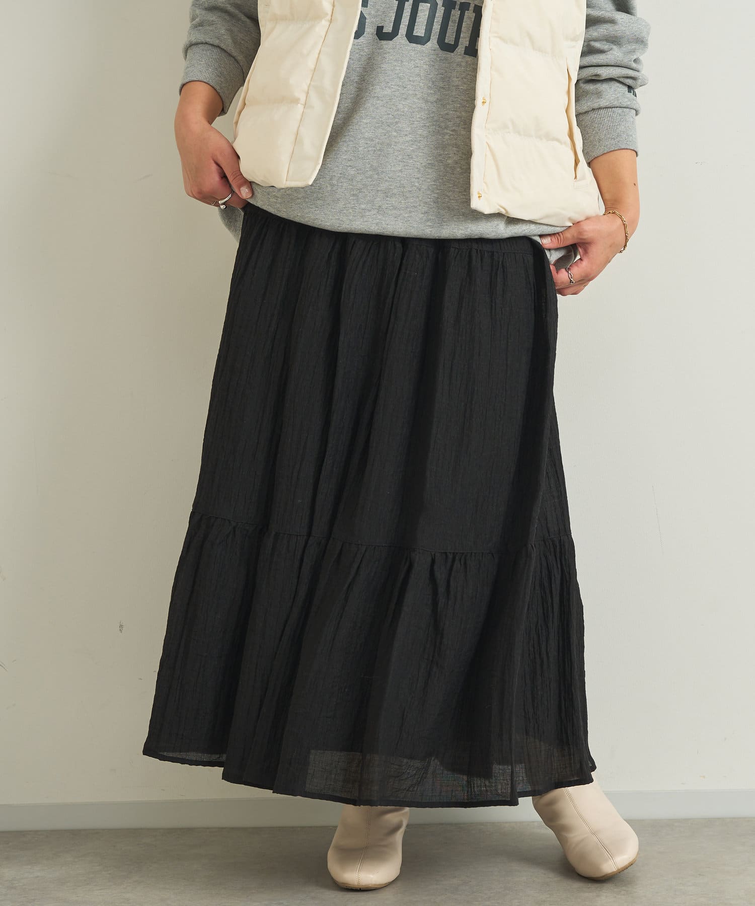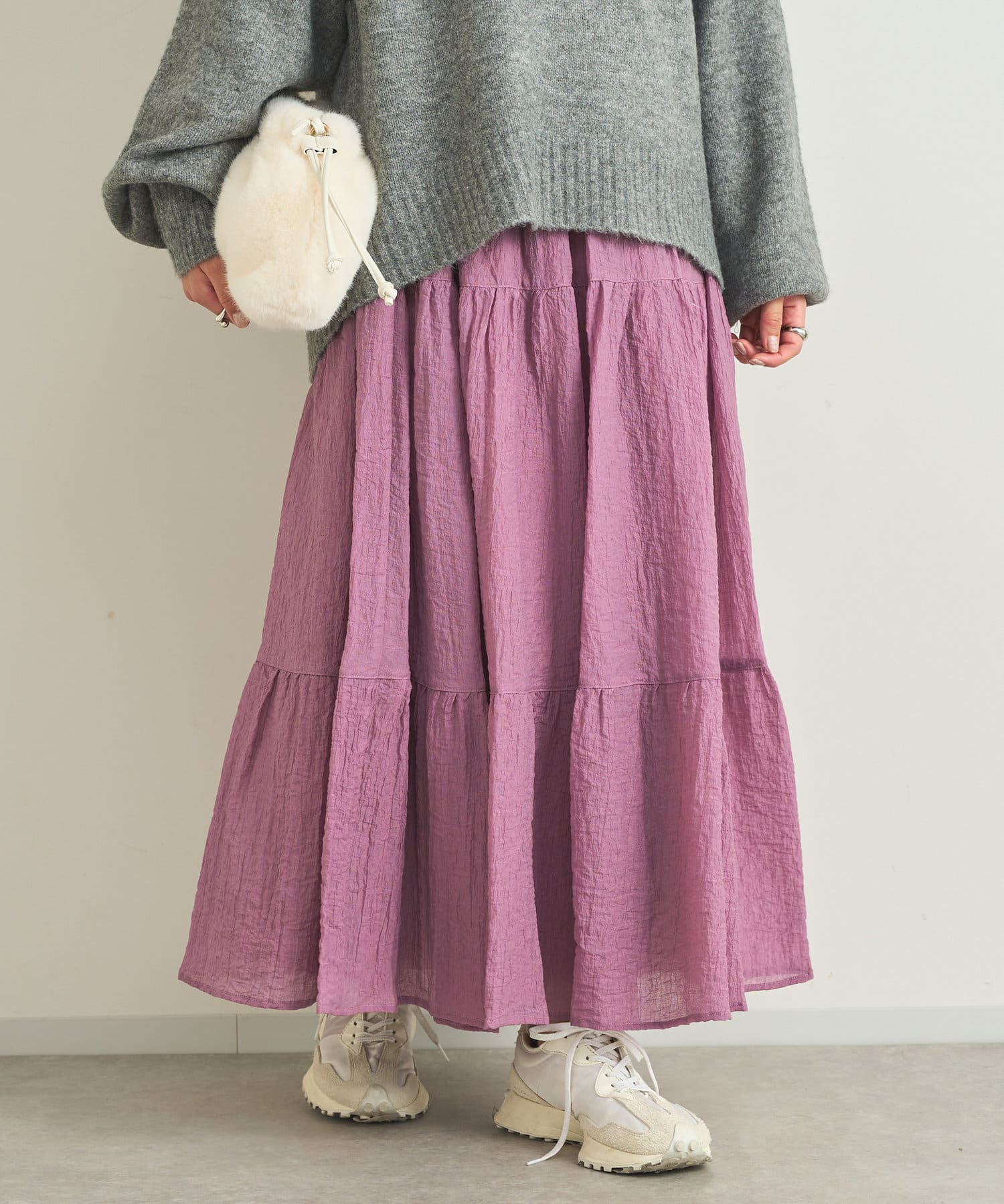 《清涼感アリ・ドラマチックなシルエット》ワッシャーティアードスカート