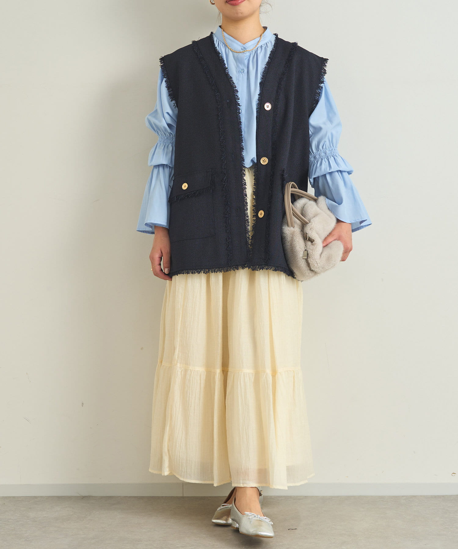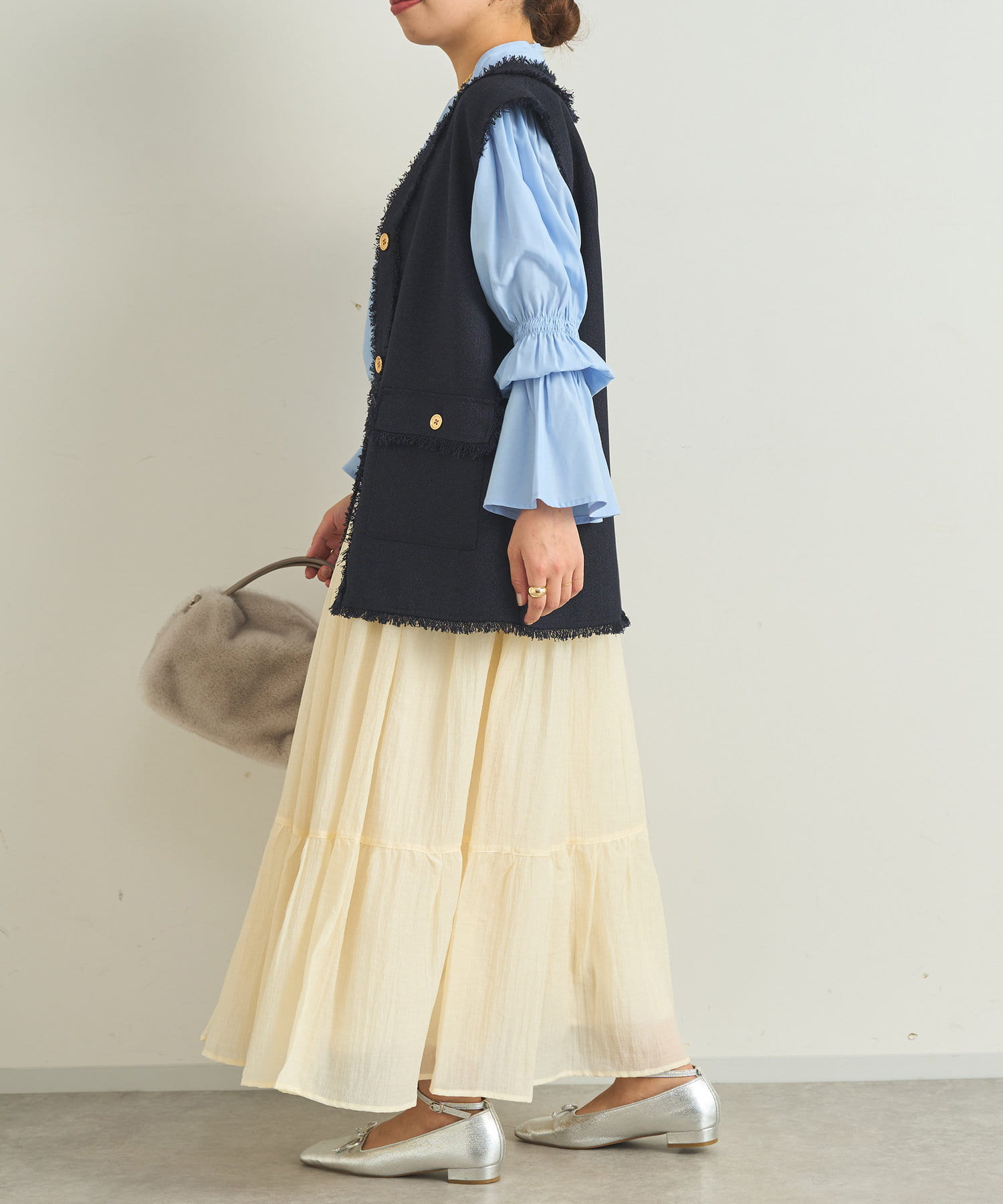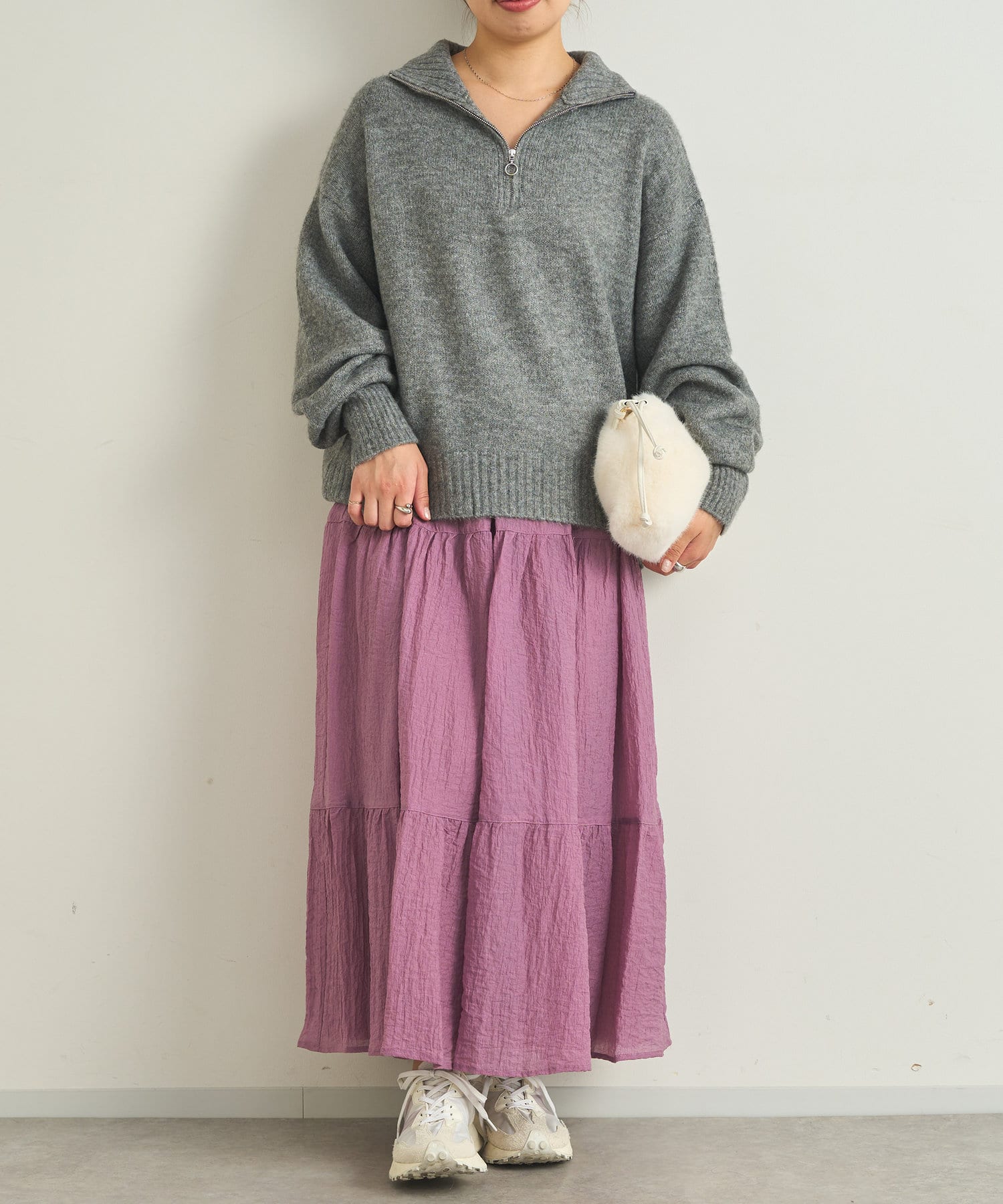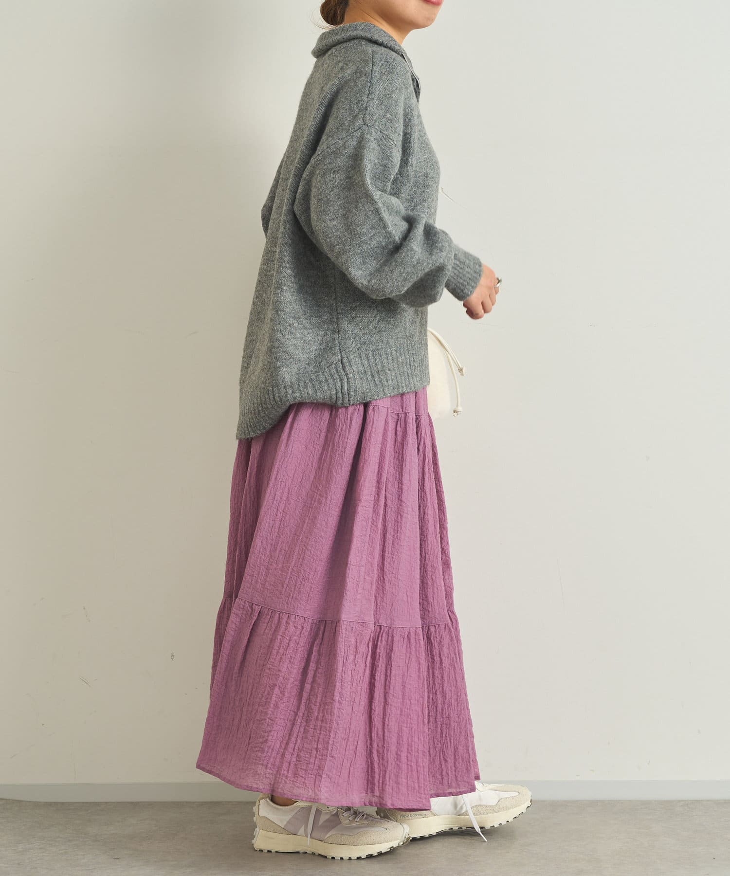 《清涼感アリ・ドラマチックなシルエット》ワッシャーティアードスカート