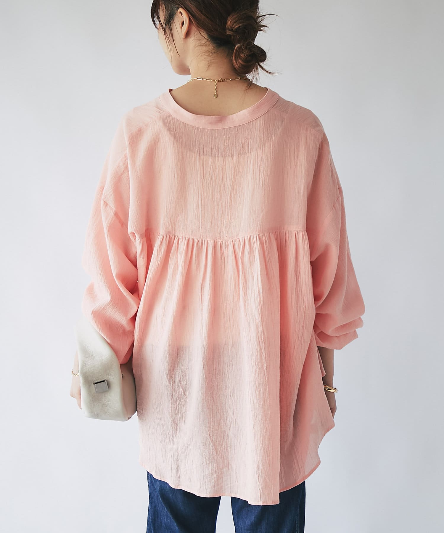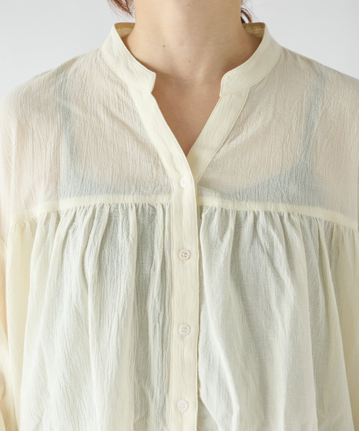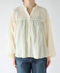 《オンオフ兼用》コットンガーゼギャザーブラウス