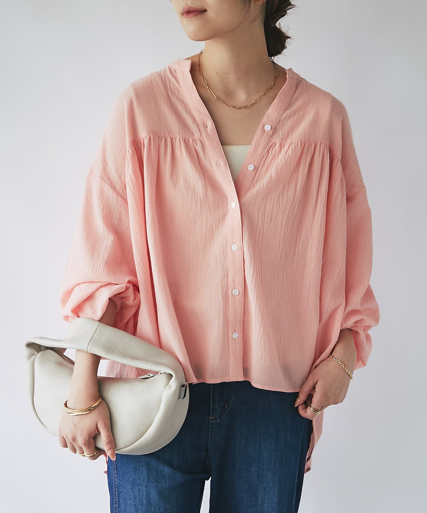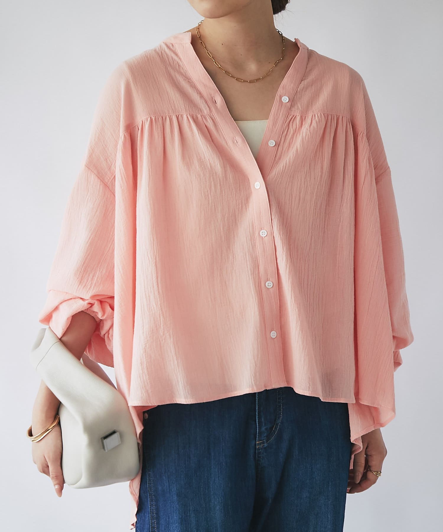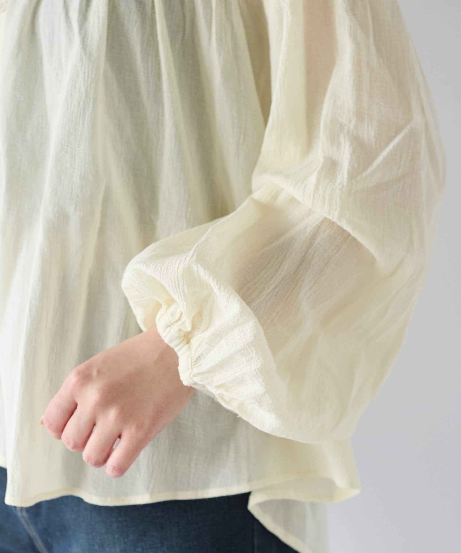 ・ふんわりギャザーの入ったボリュームのある袖が女性らしいブラウス