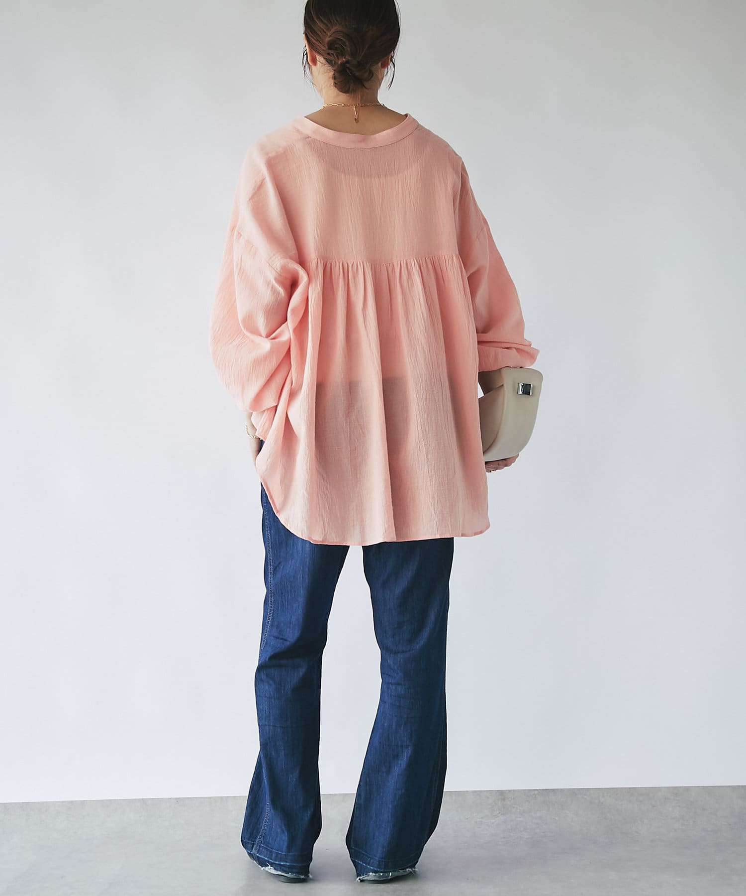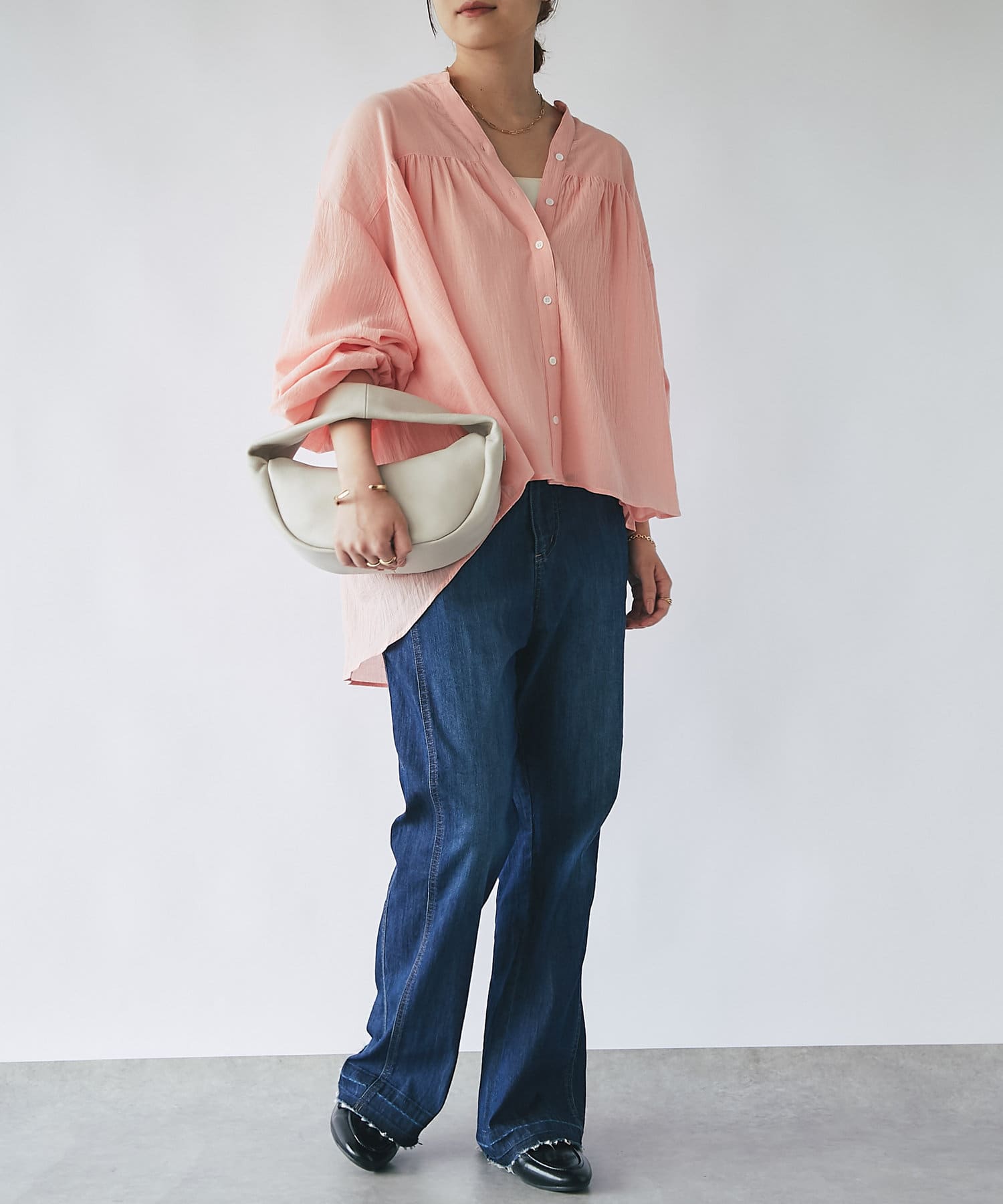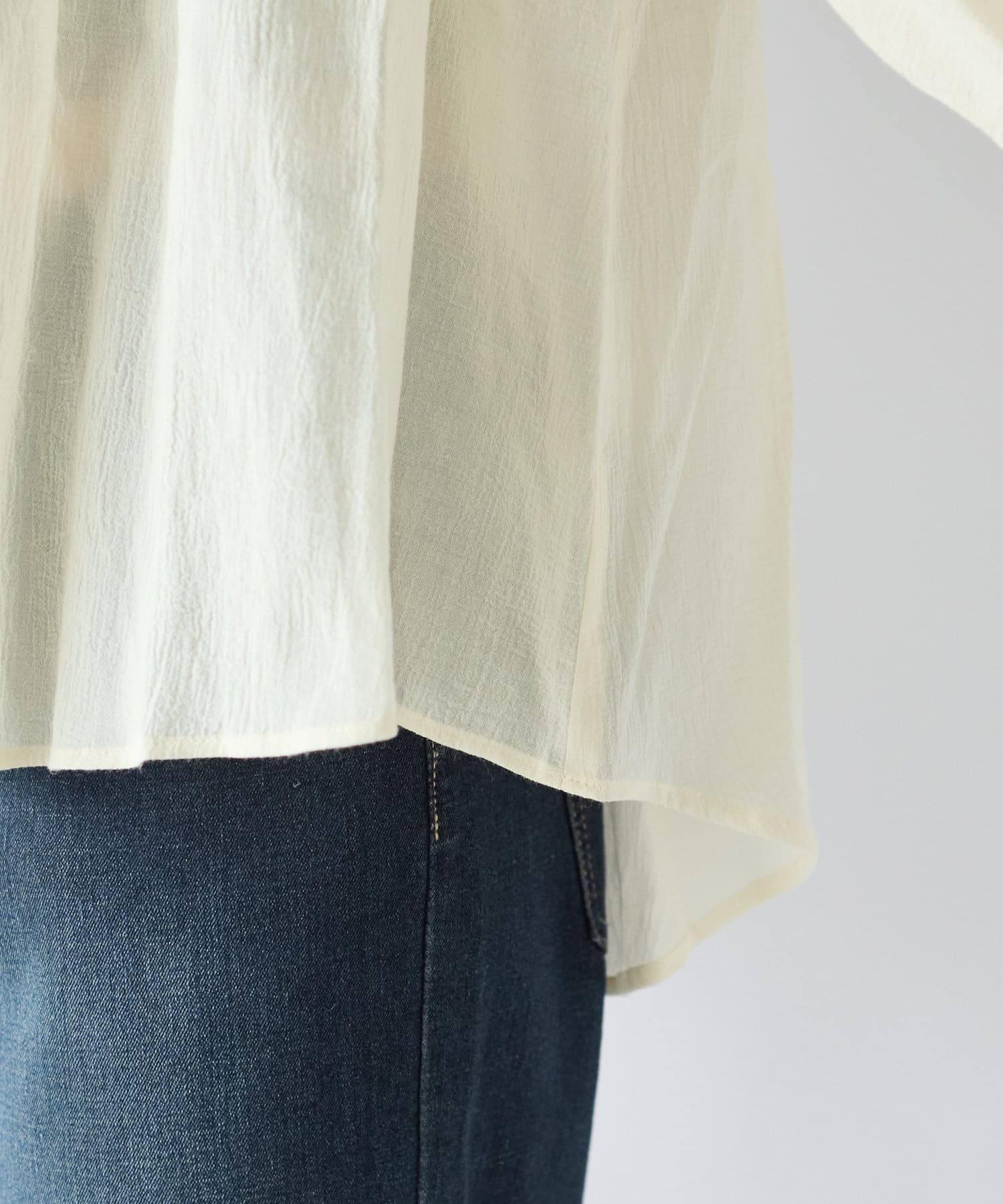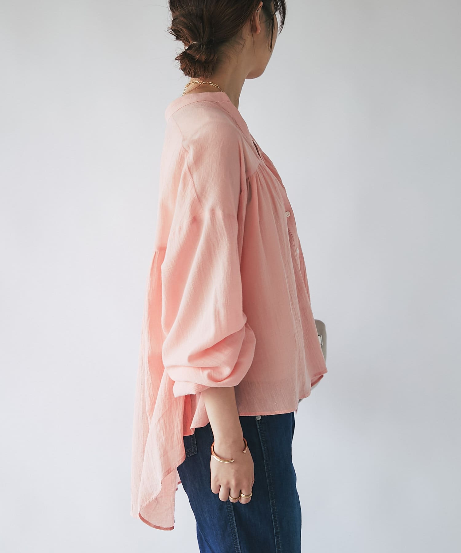・ふんわりギャザーの入ったボリュームのある袖が女性らしいブラウス