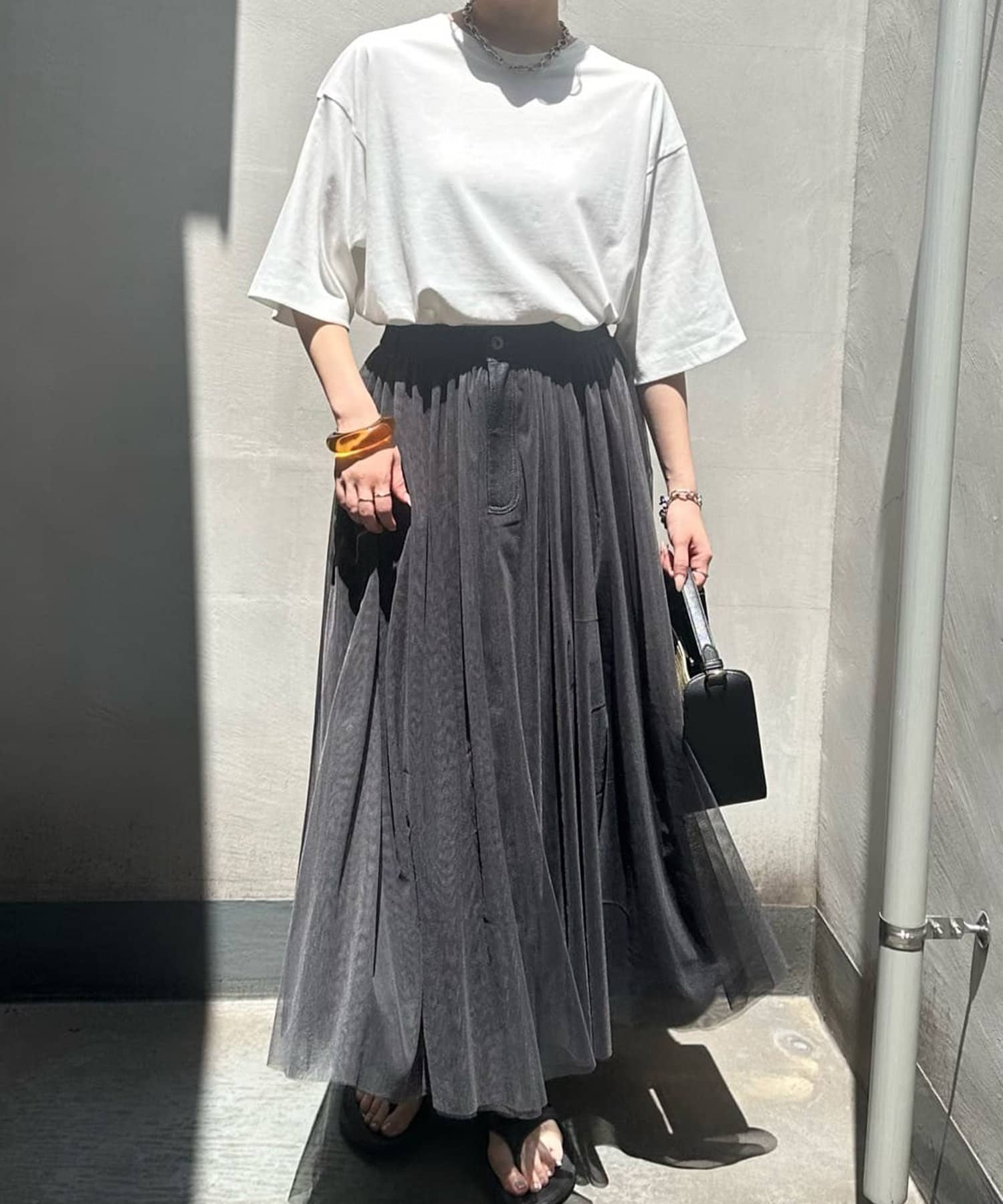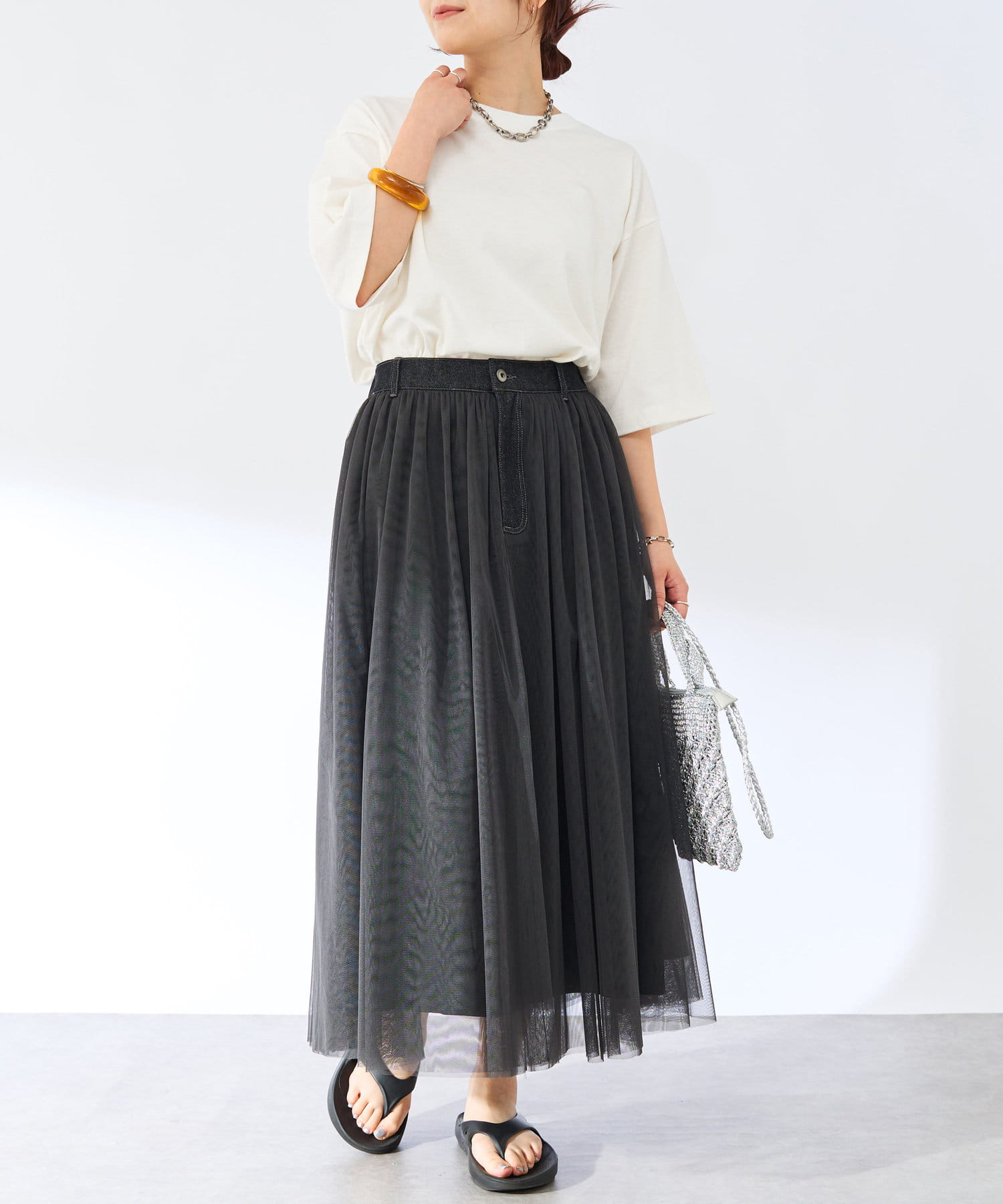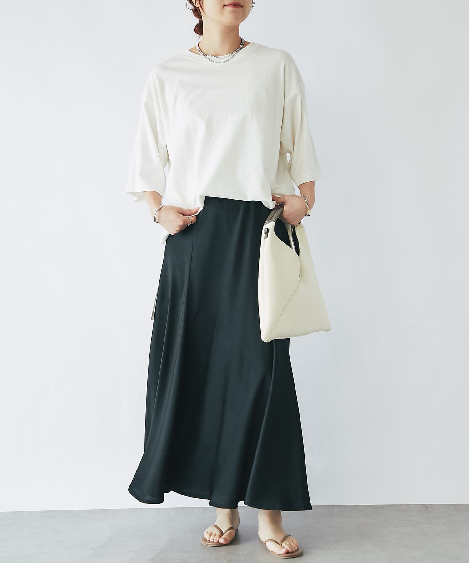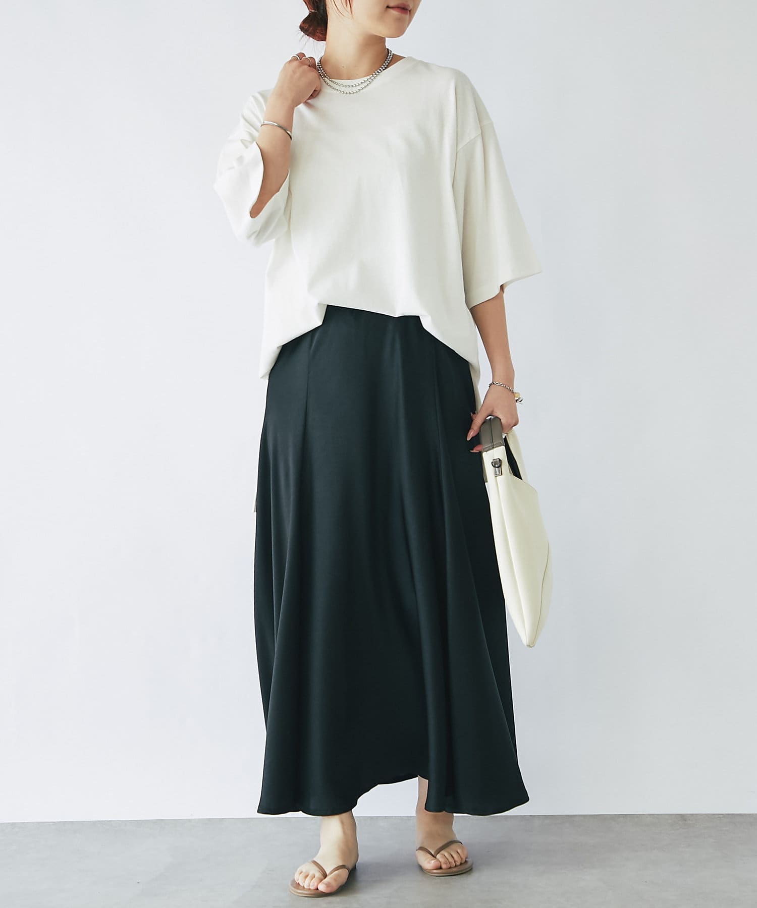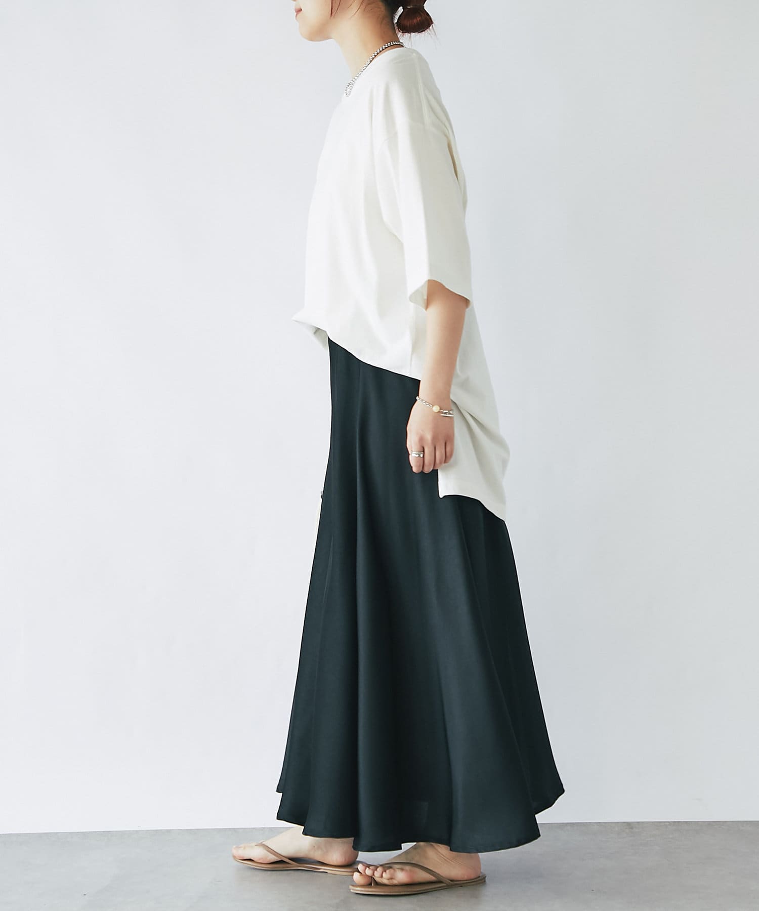 着るとビックサイズだけど、ボトムスにタイトなスカートを合わせてみると60キロオーバーな私でもスラリと見えました!自分目線ですが。