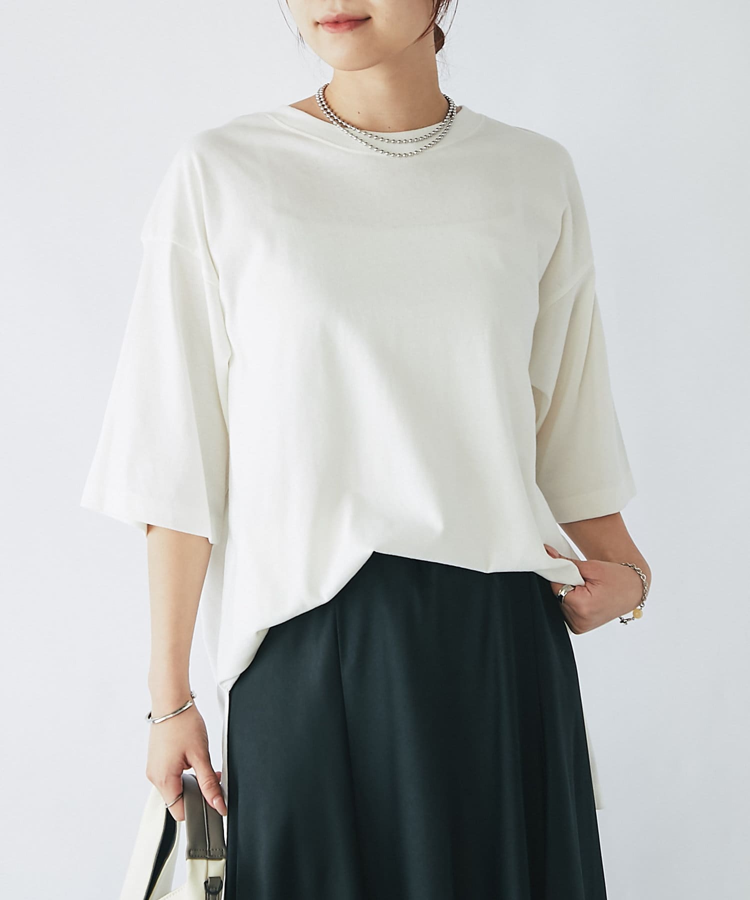 着丈があるので、気になるお腹周りやお尻が隠せてスタイル良く見えます。