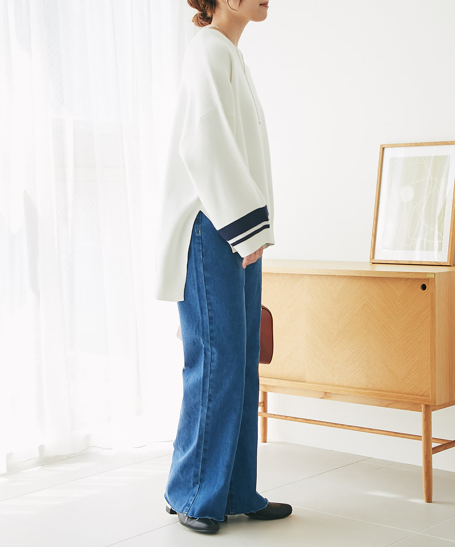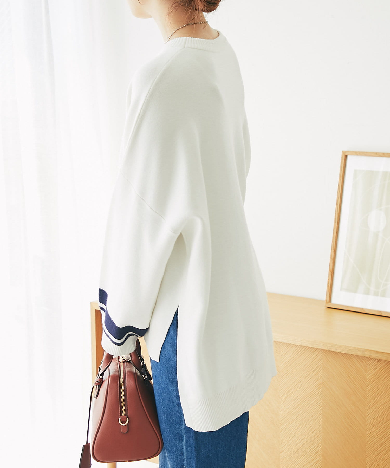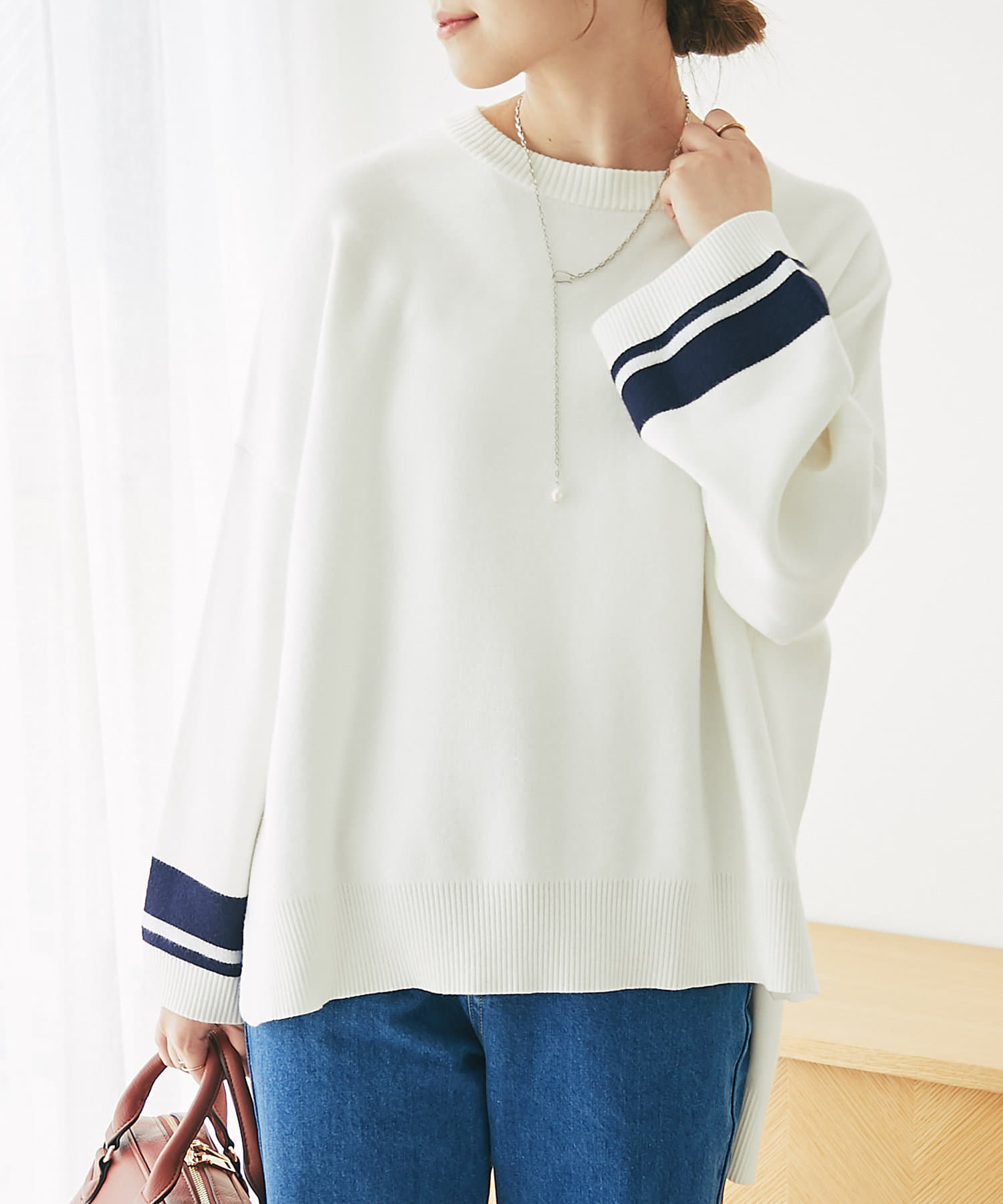 袖のラインが素敵なアクセントになったシンプルニット♪